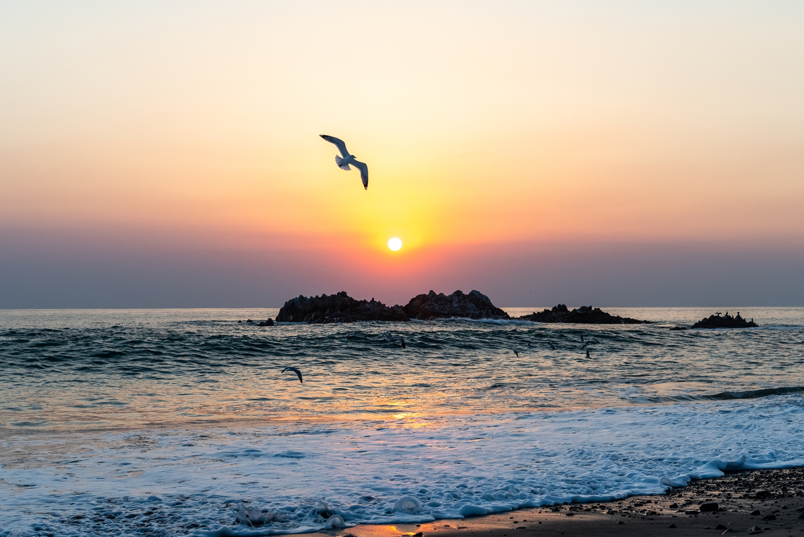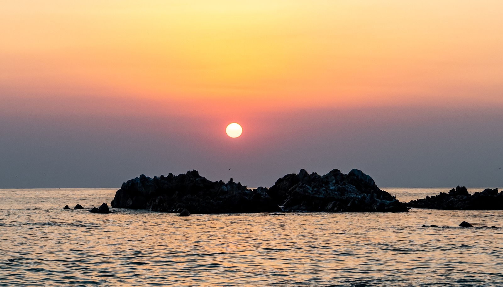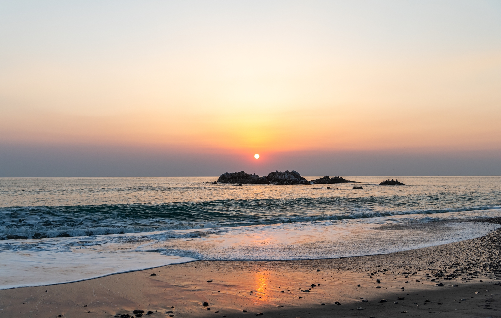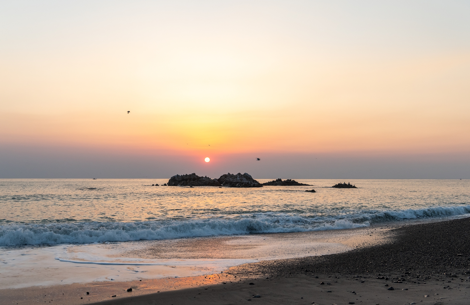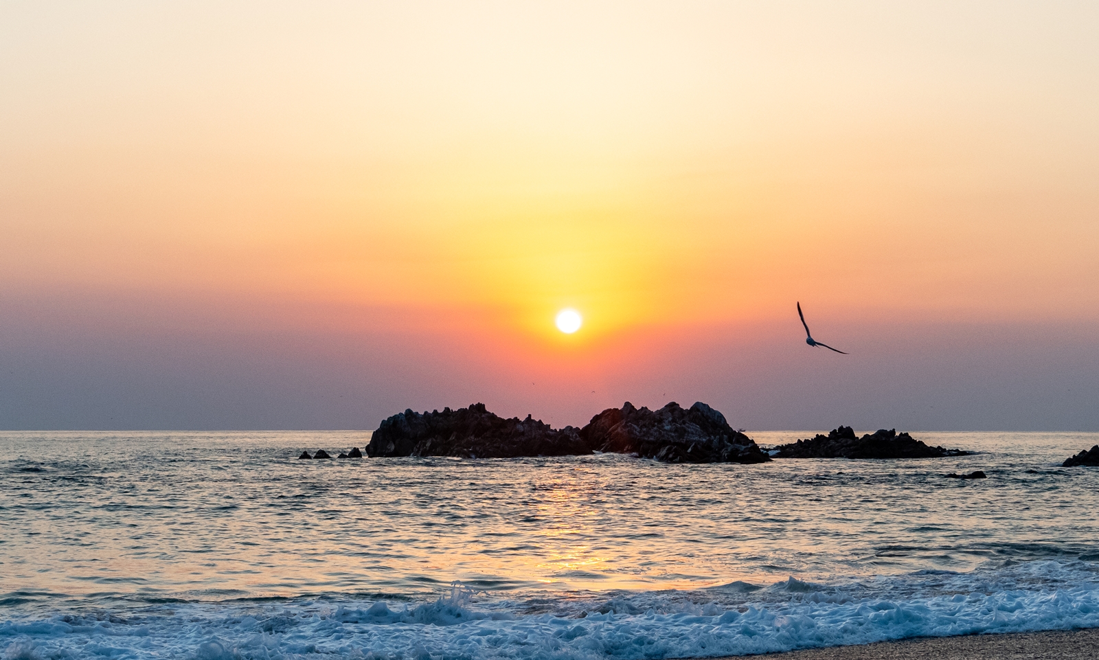 물안개에 갈매기가 나르는 힘찬 일출을 기대하였지만 예상대로 밋밋한 일출을 보고 통도사로 발길을