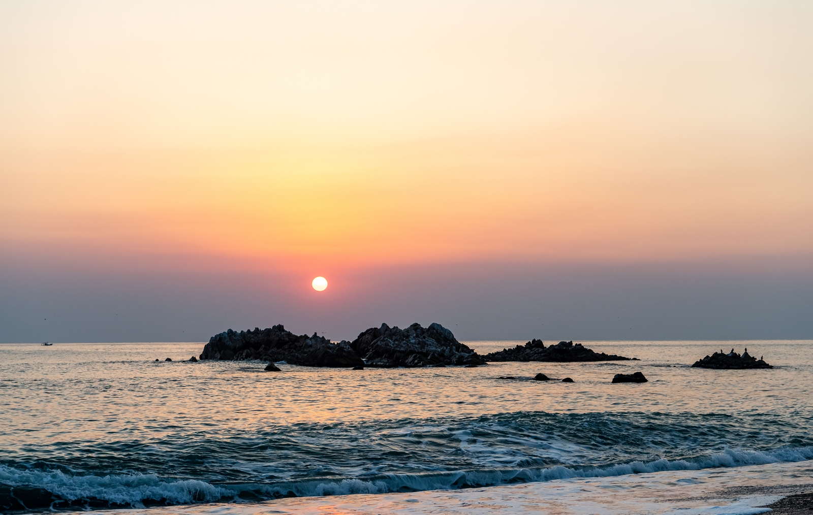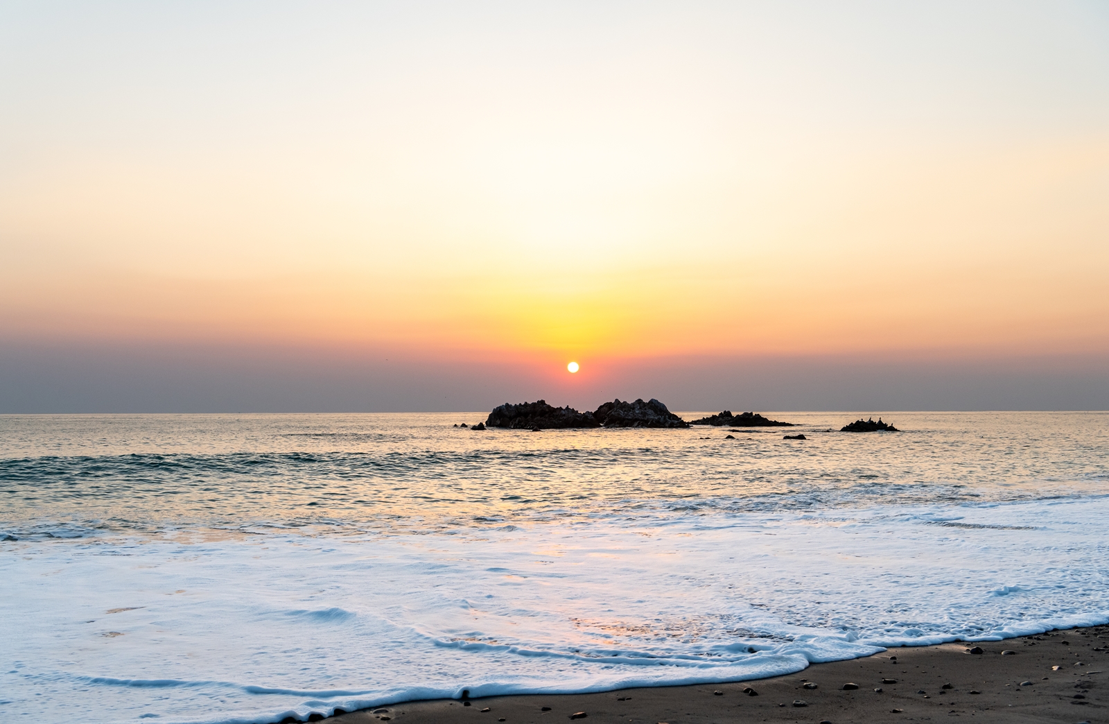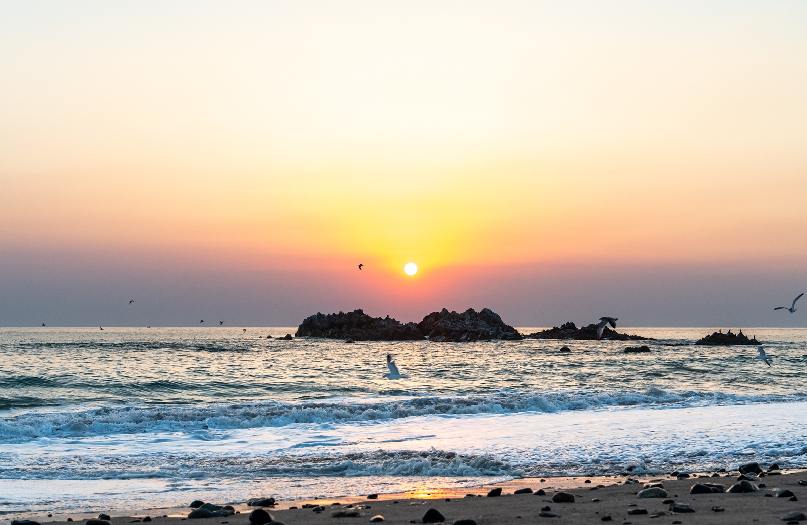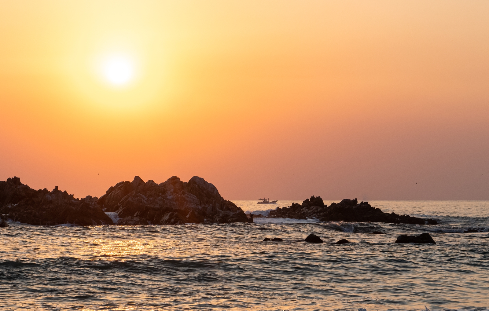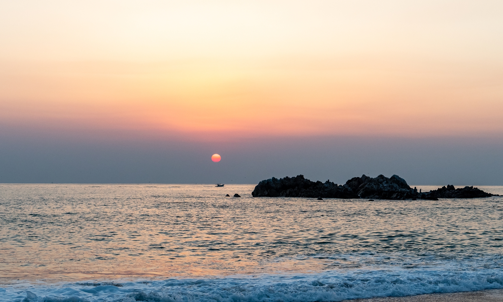 물안개에 갈매기가 나르는 힘찬 일출을 기대하였지만 예상대로 밋밋한 일출을 보고 통도사로 발길을