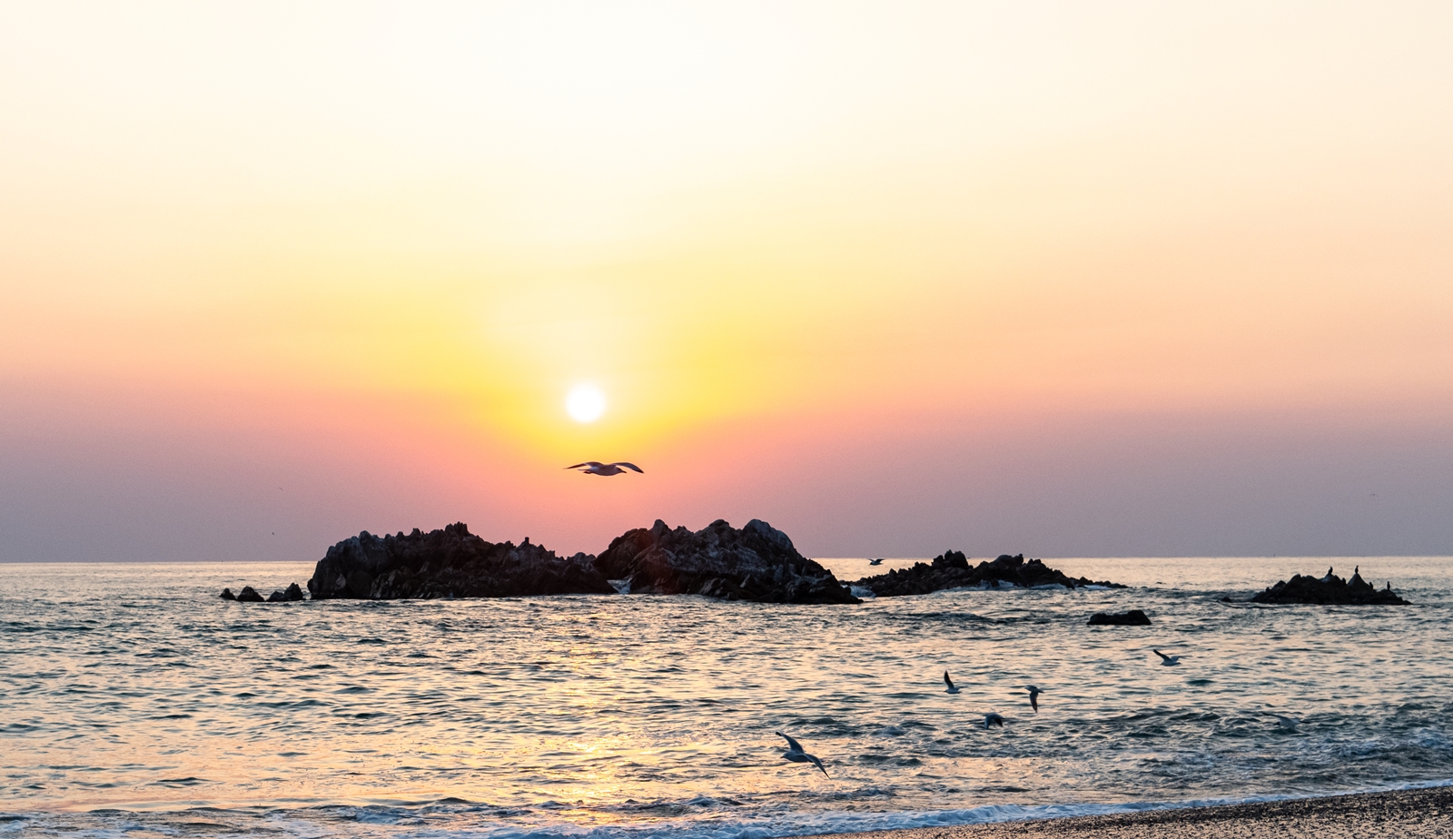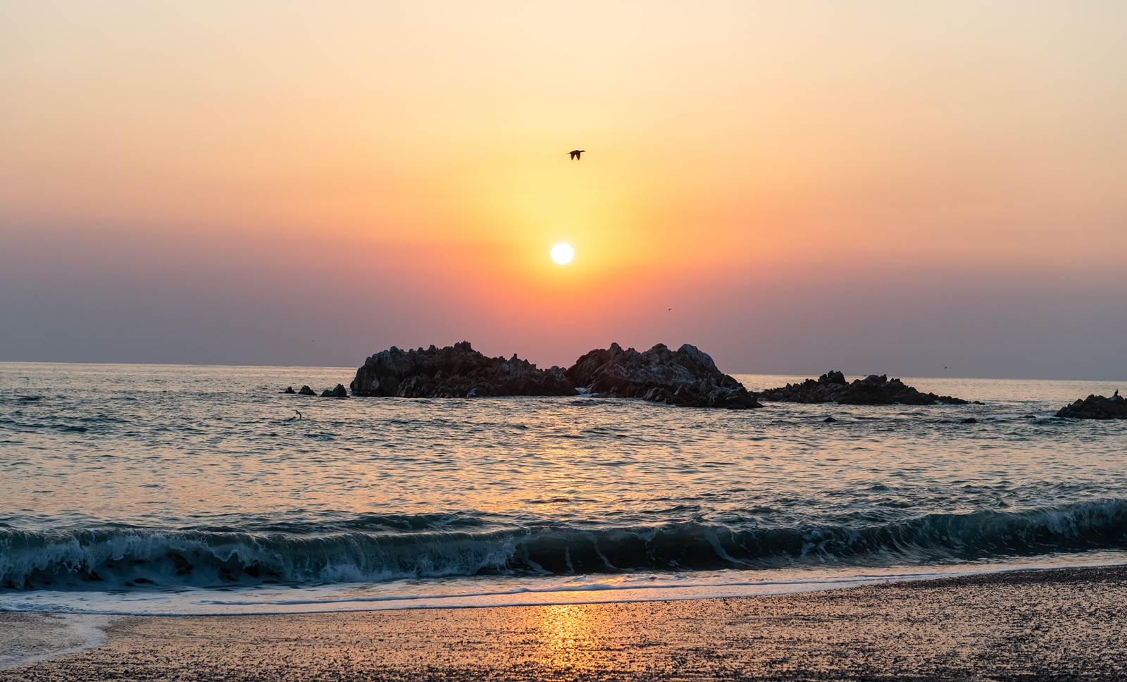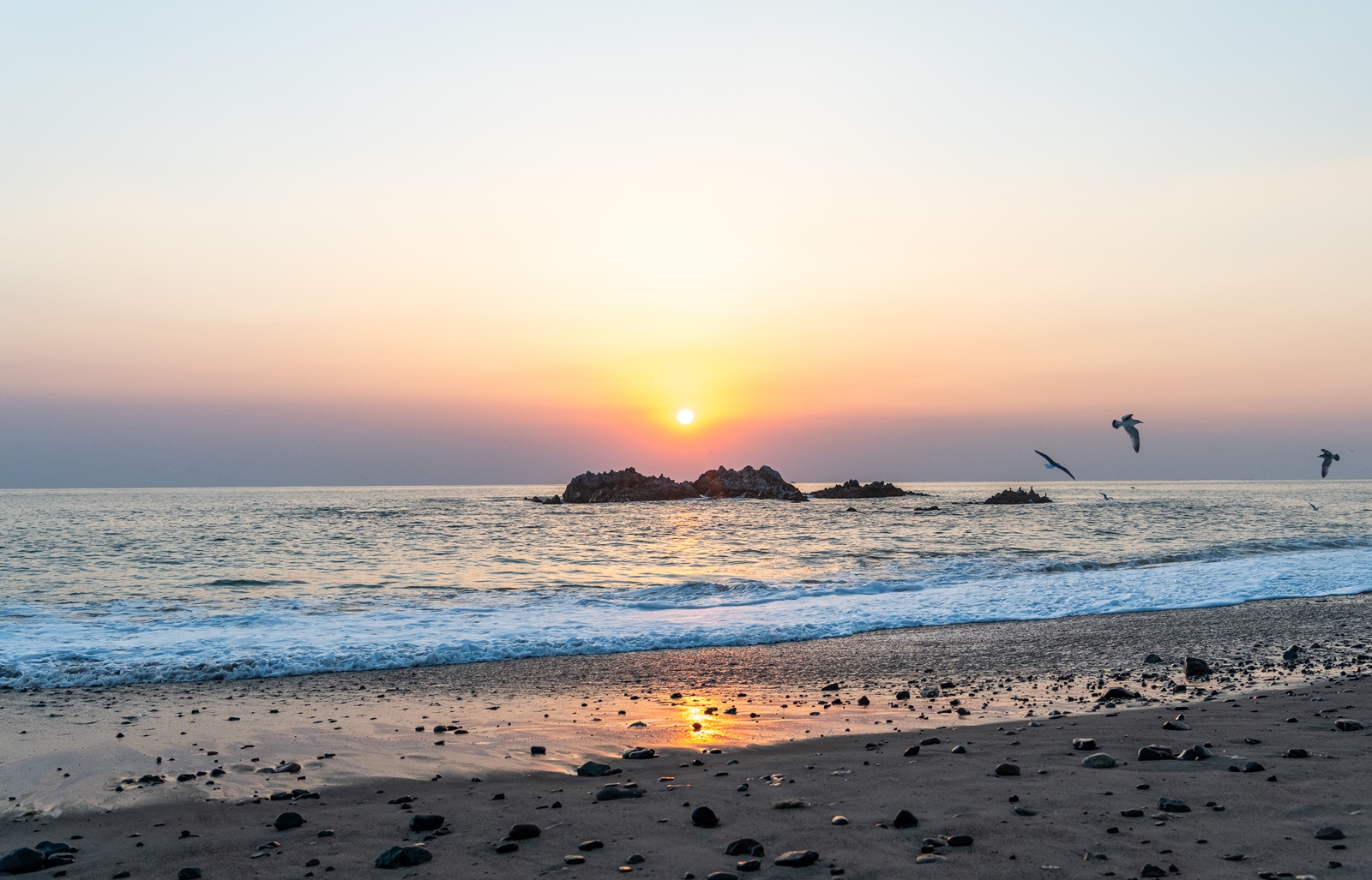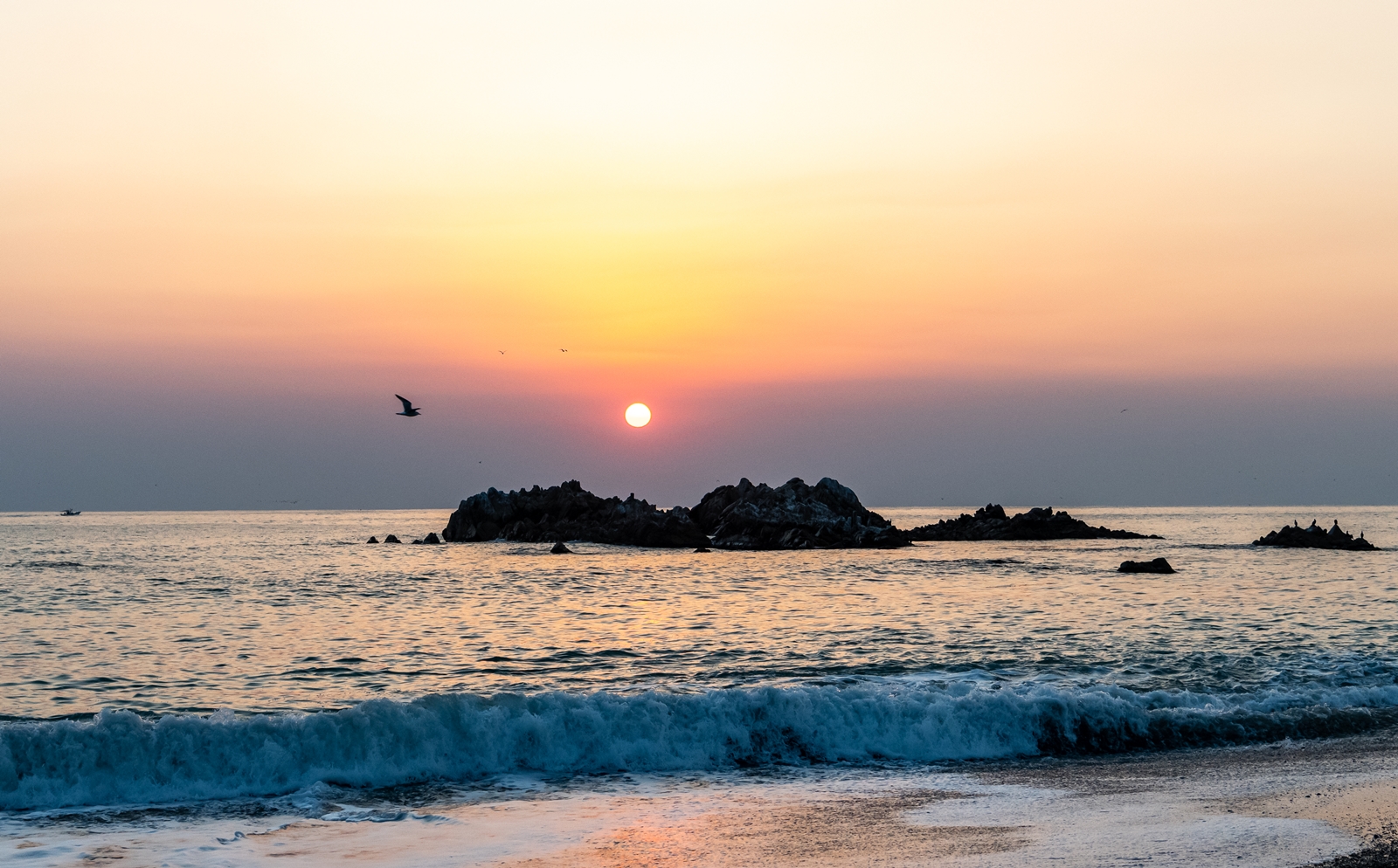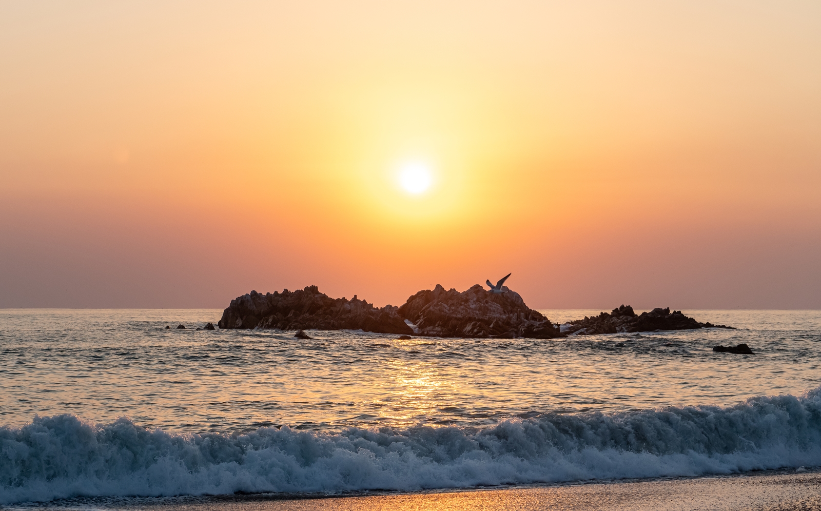 물안개에 갈매기가 나르는 힘찬 일출을 기대하였지만 예상대로 밋밋한 일출을 보고 통도사로 발길을