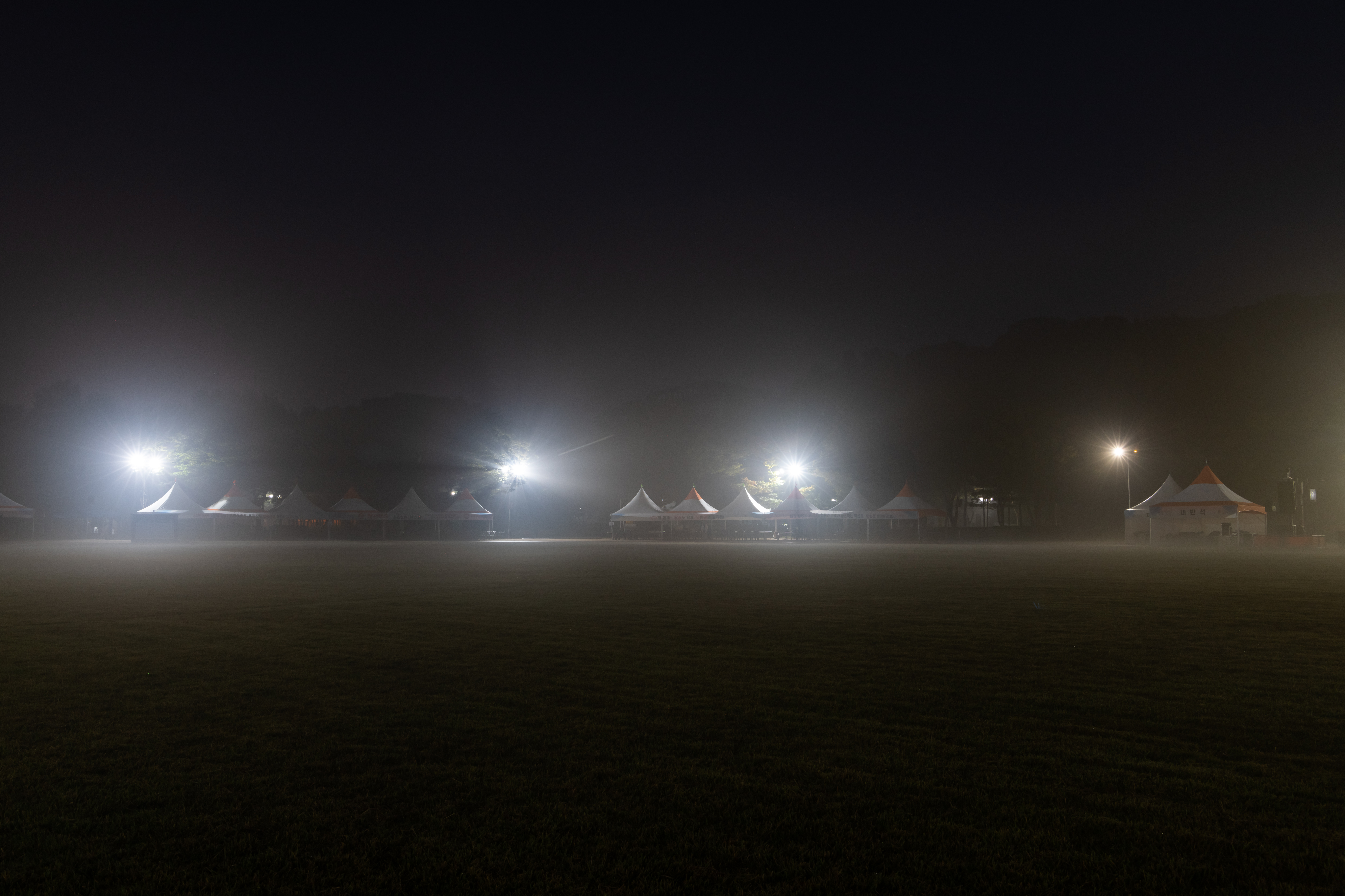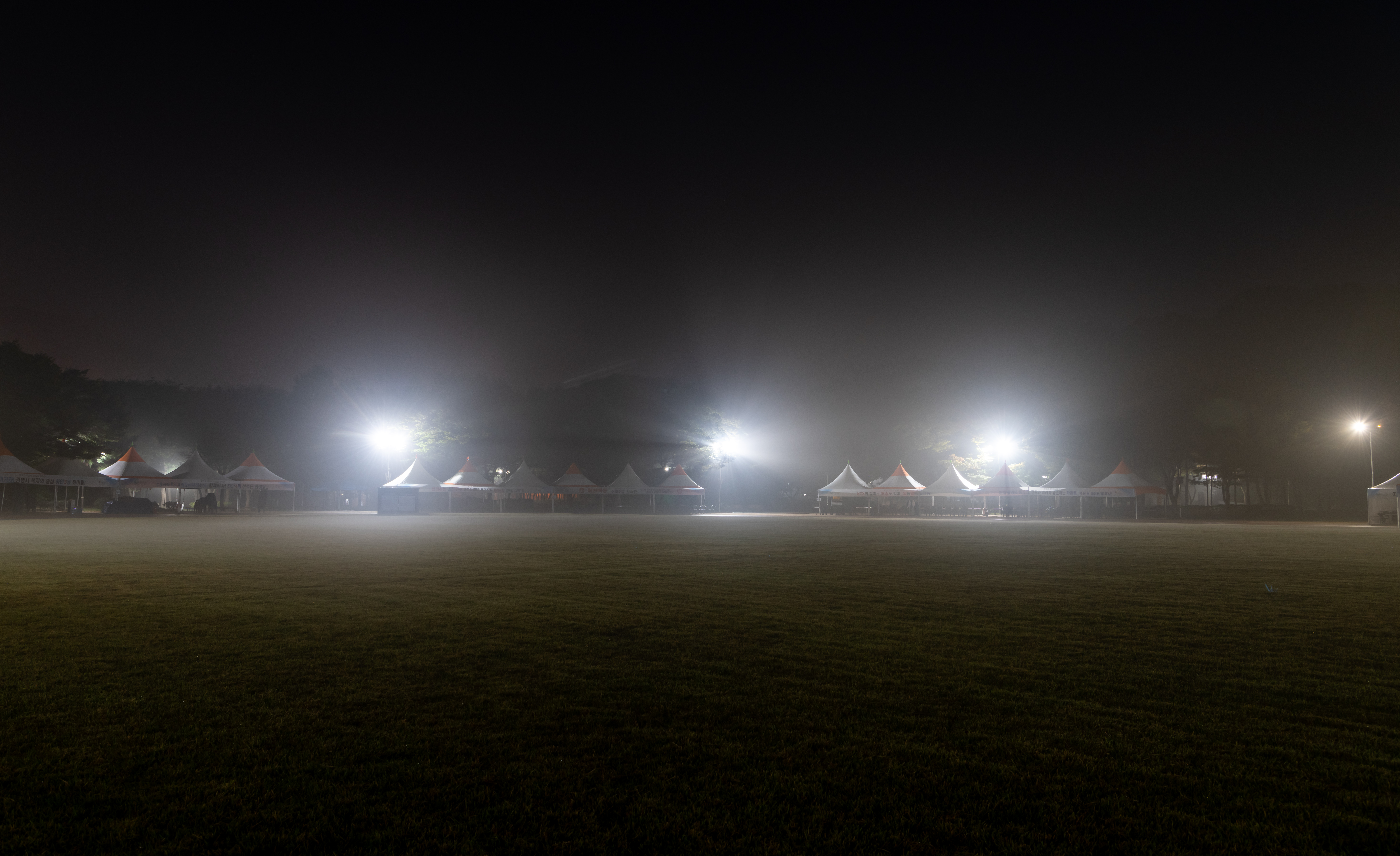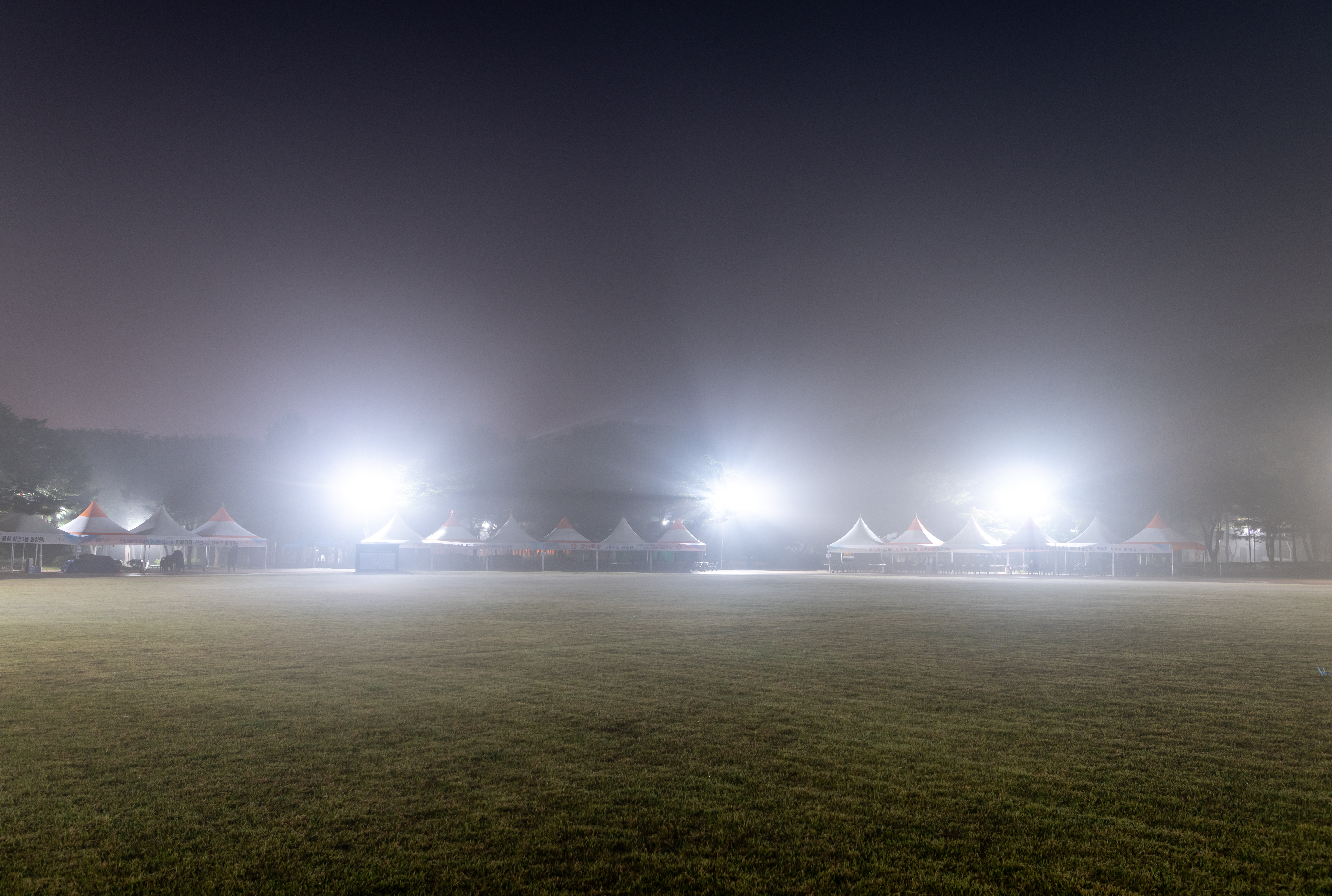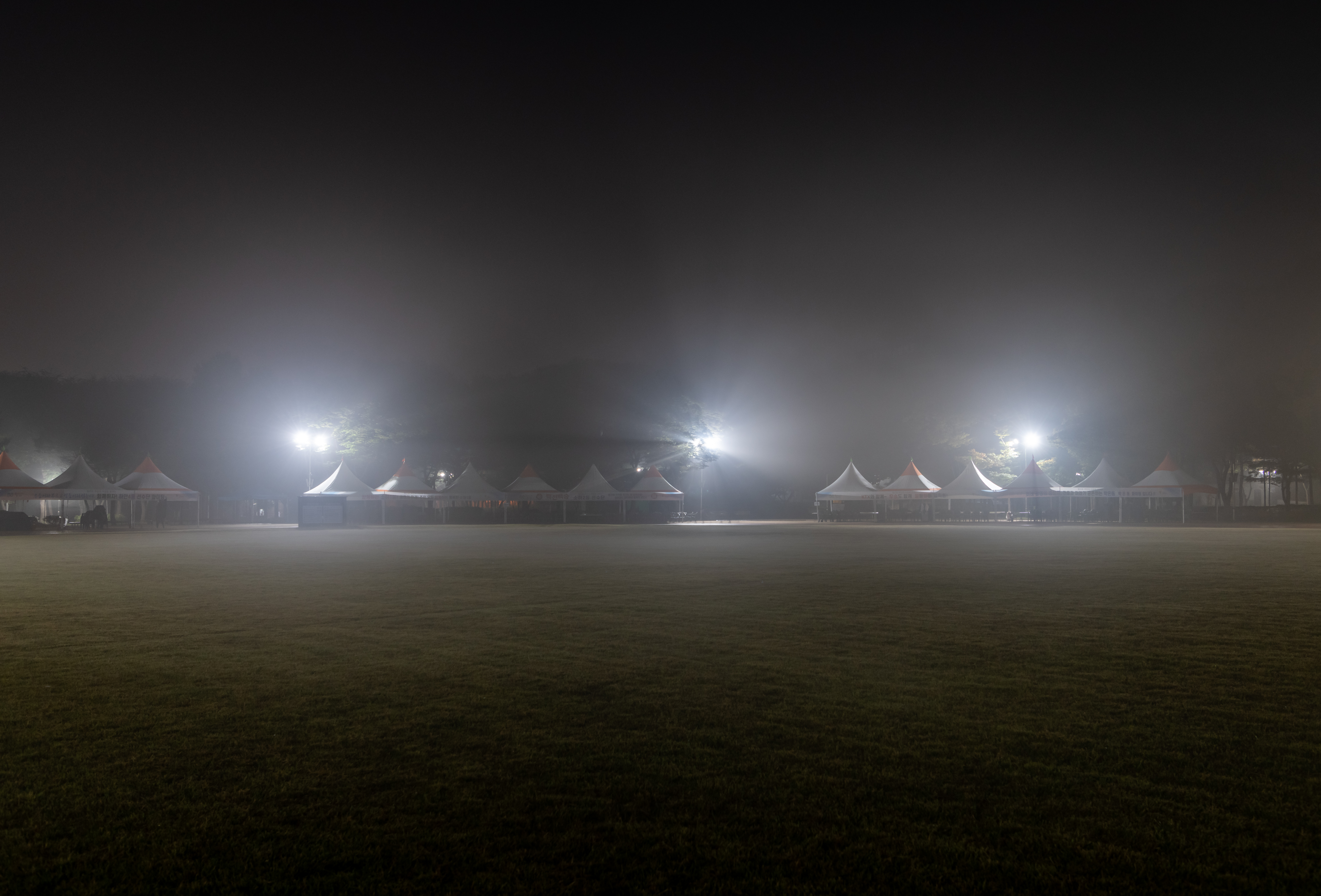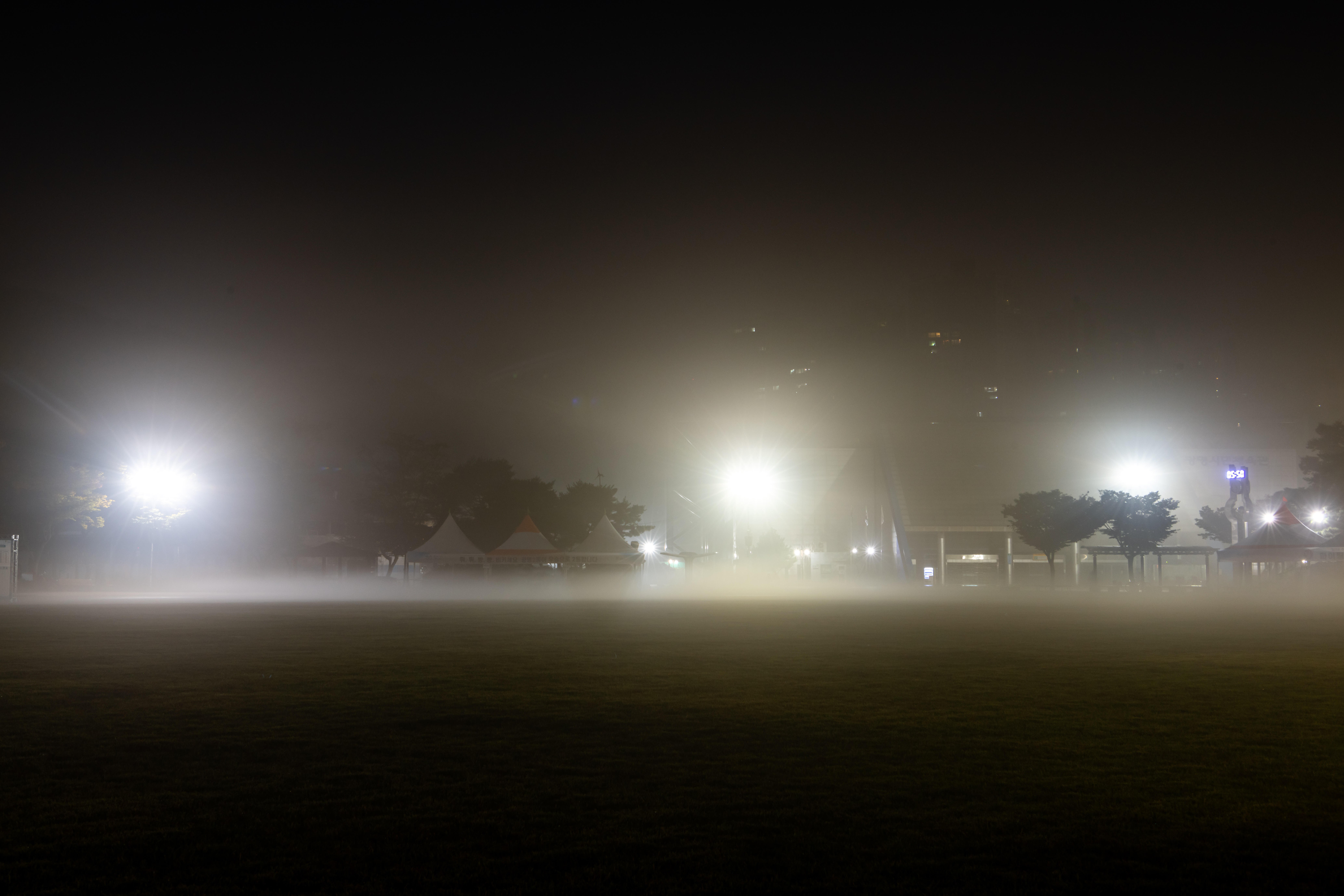 10월 1일 광명시청 개청 41주년 행사 때문에 쳐 놓은 천막과 안개가 어울러져서 참으로 멋진 그림을 만들었기 때문이다. 기대를 하고 막상 당일 새벽에 카메라를 챙겨서 나가보니 천막에는 글씨를 써 더덕더덕 붙여 놓았고 안개도 전날 같지가 않았다. 여명이 있을 때 까지 기다리겨고 하였으나 아무리 보아도 글씨 때문에 그림이 될 거 같지가 않아서 집에 카메라를 갖다 놓고 다시 아침 산행을 나갔다.