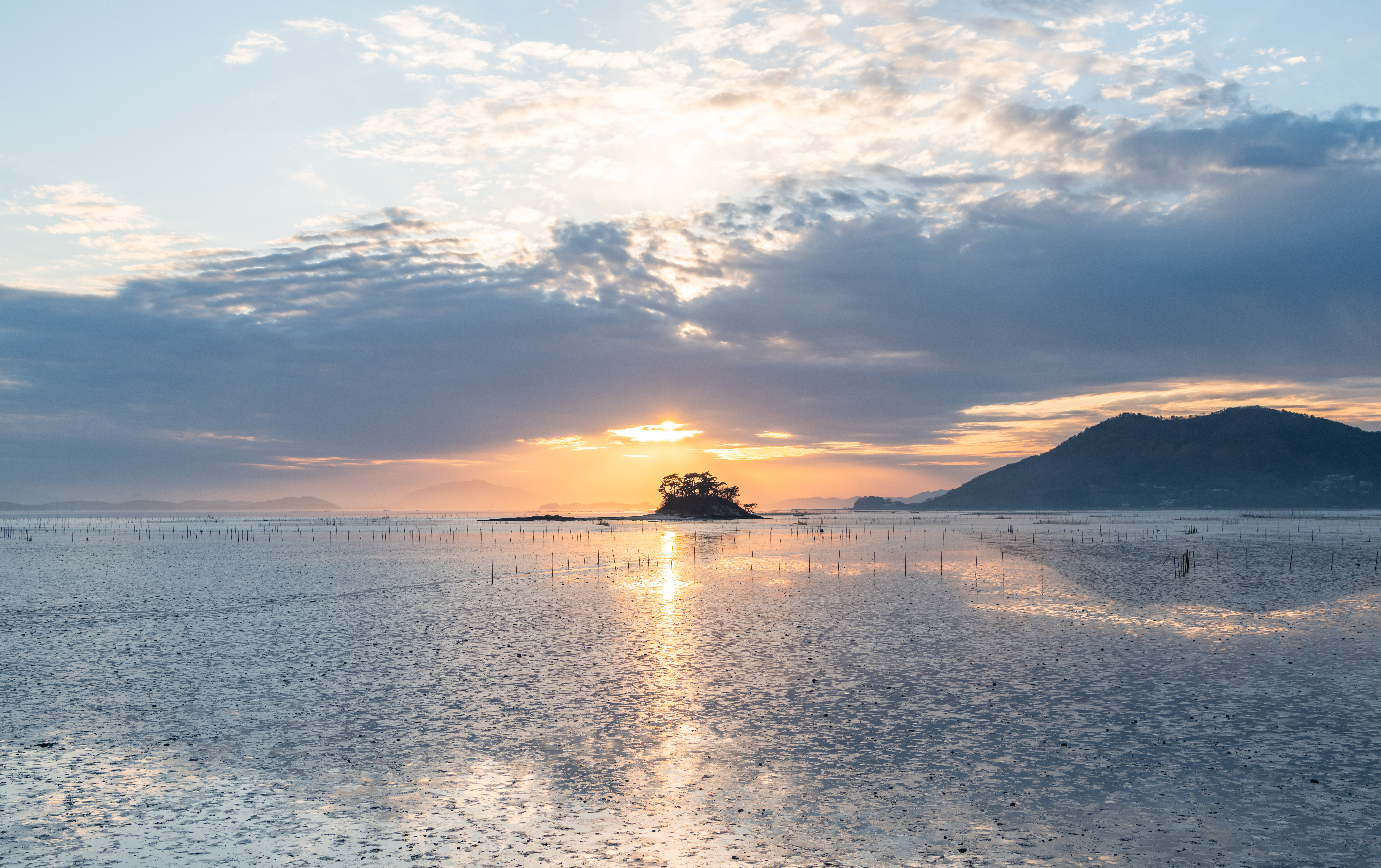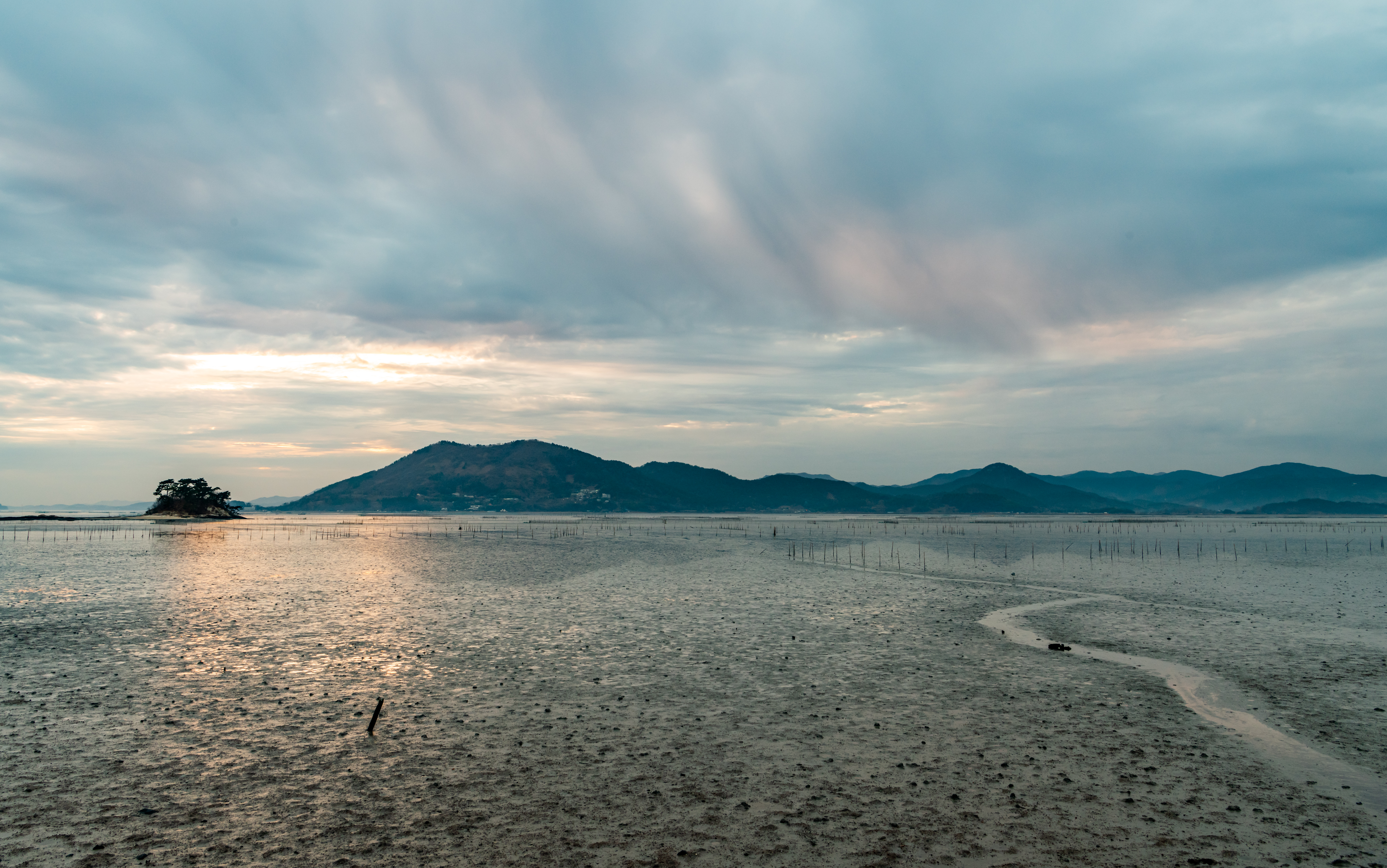예상보다 빠른 시간에 와온해변으로 와 일몰을 보았다.