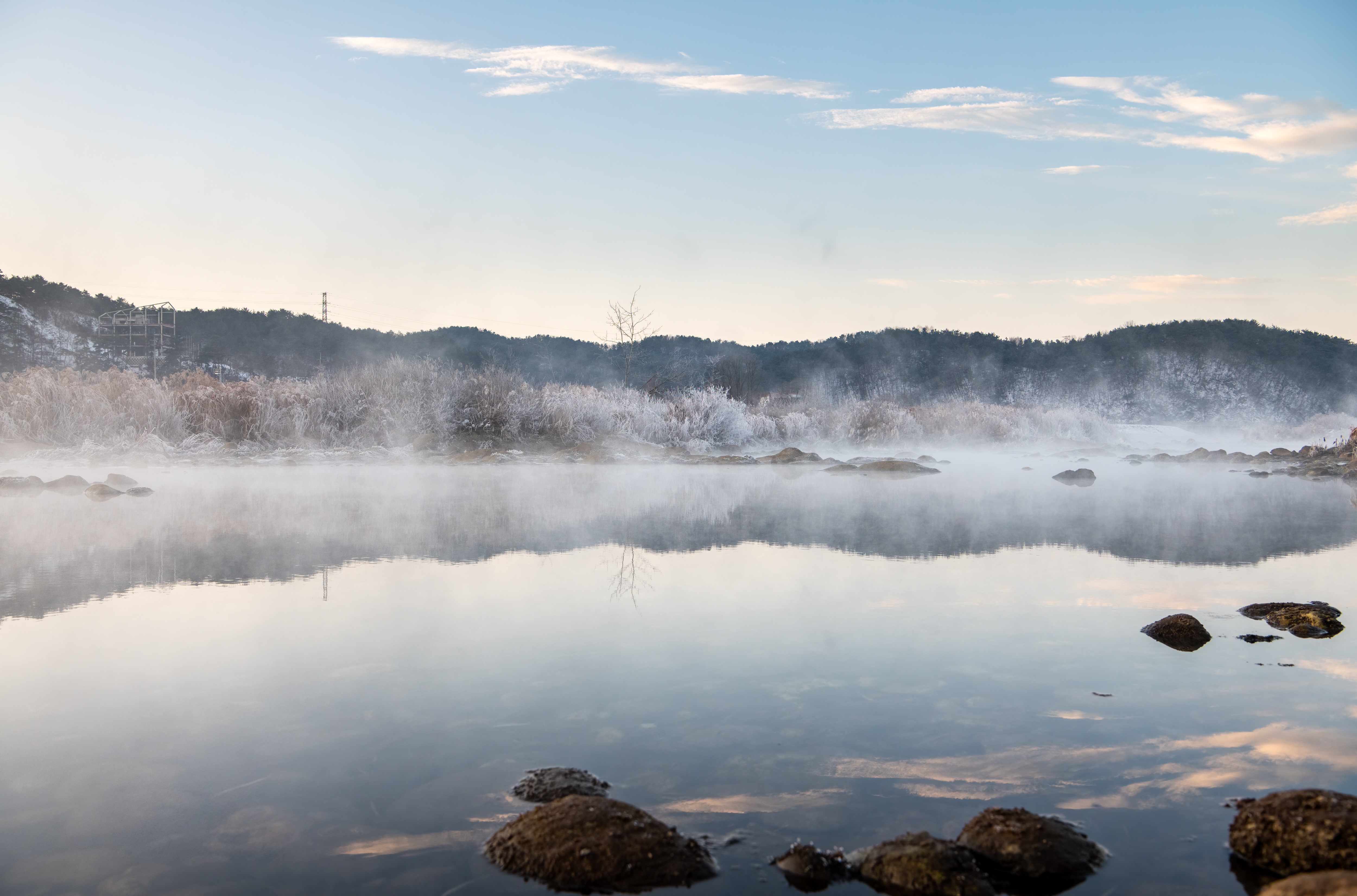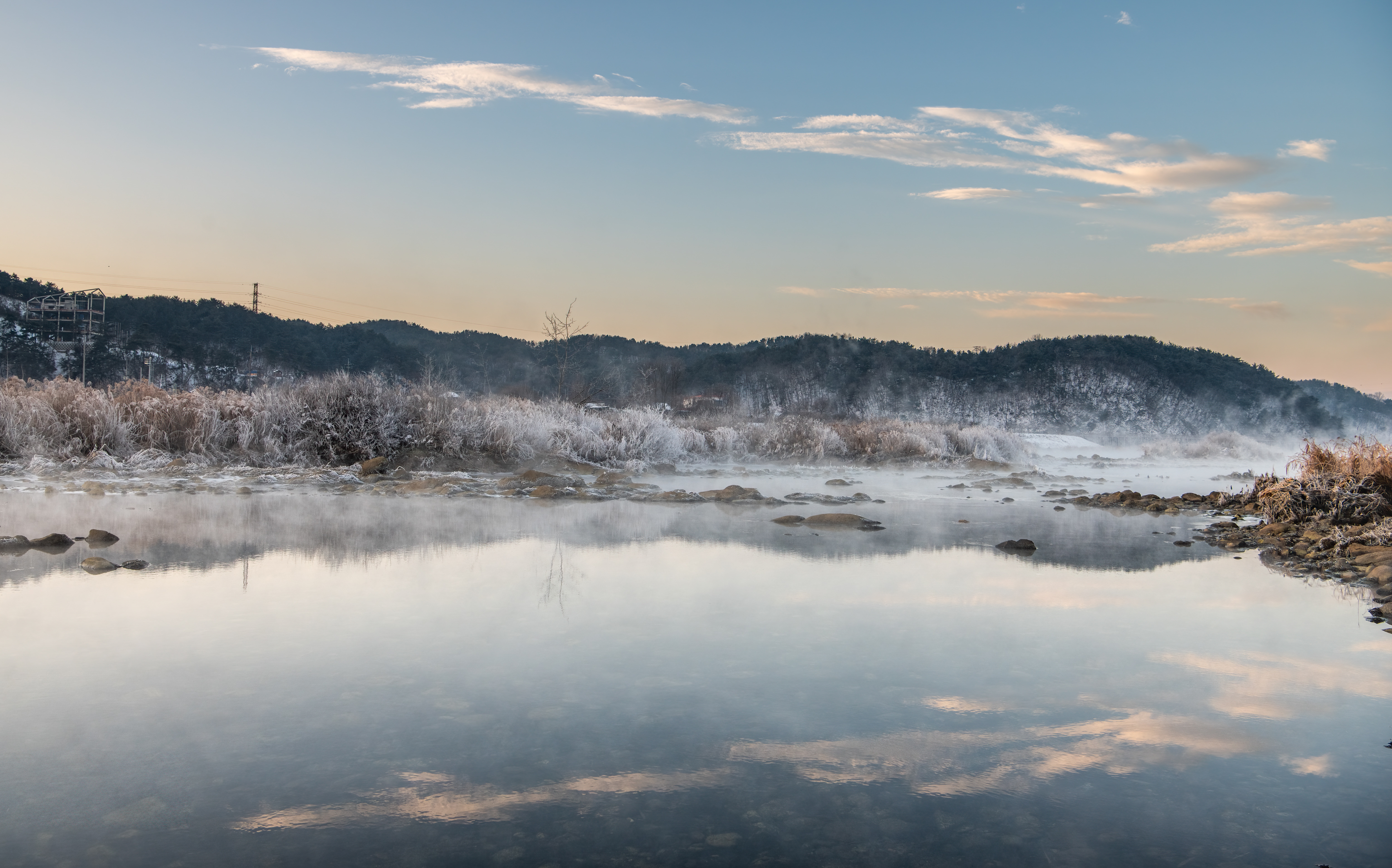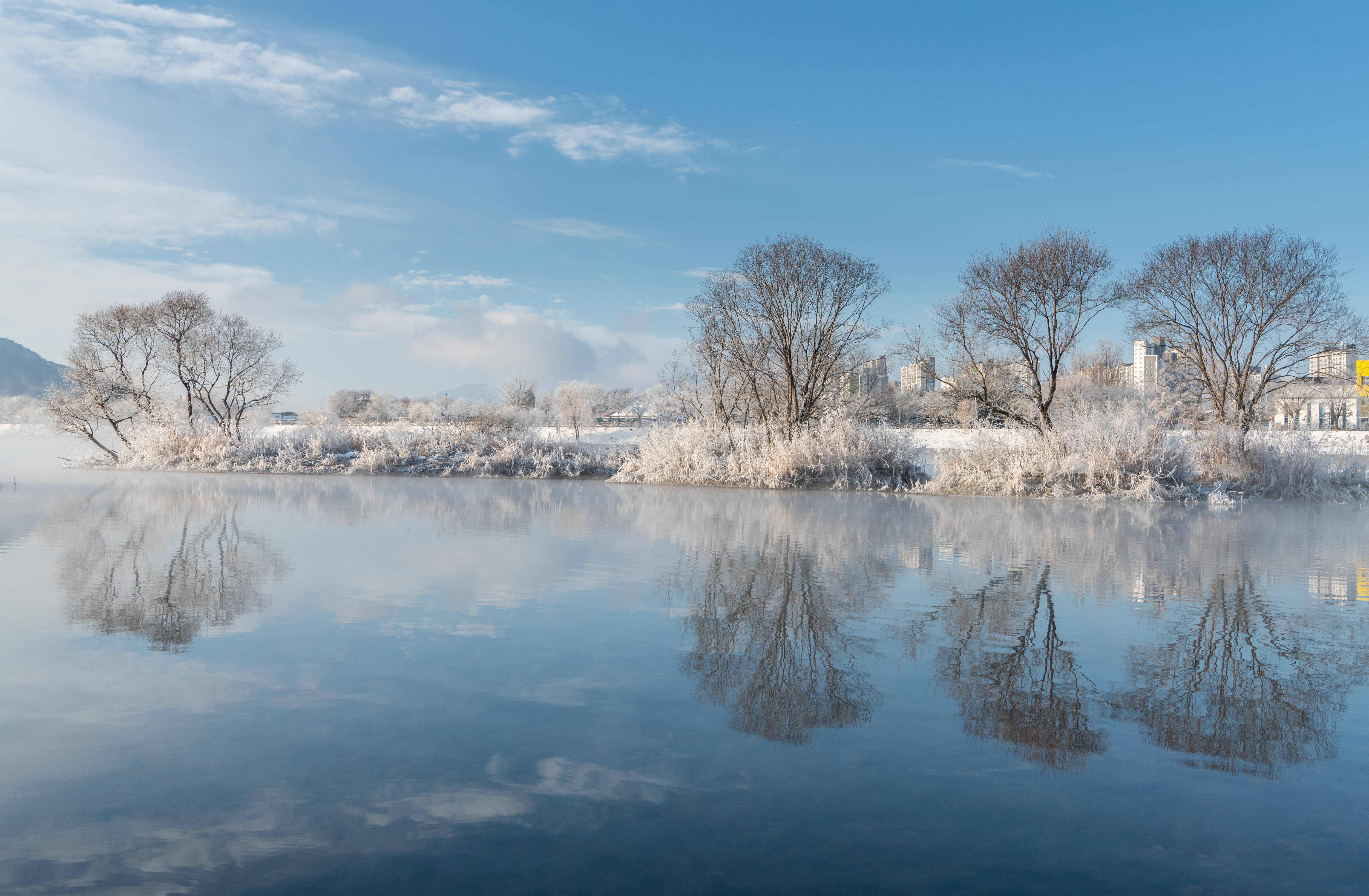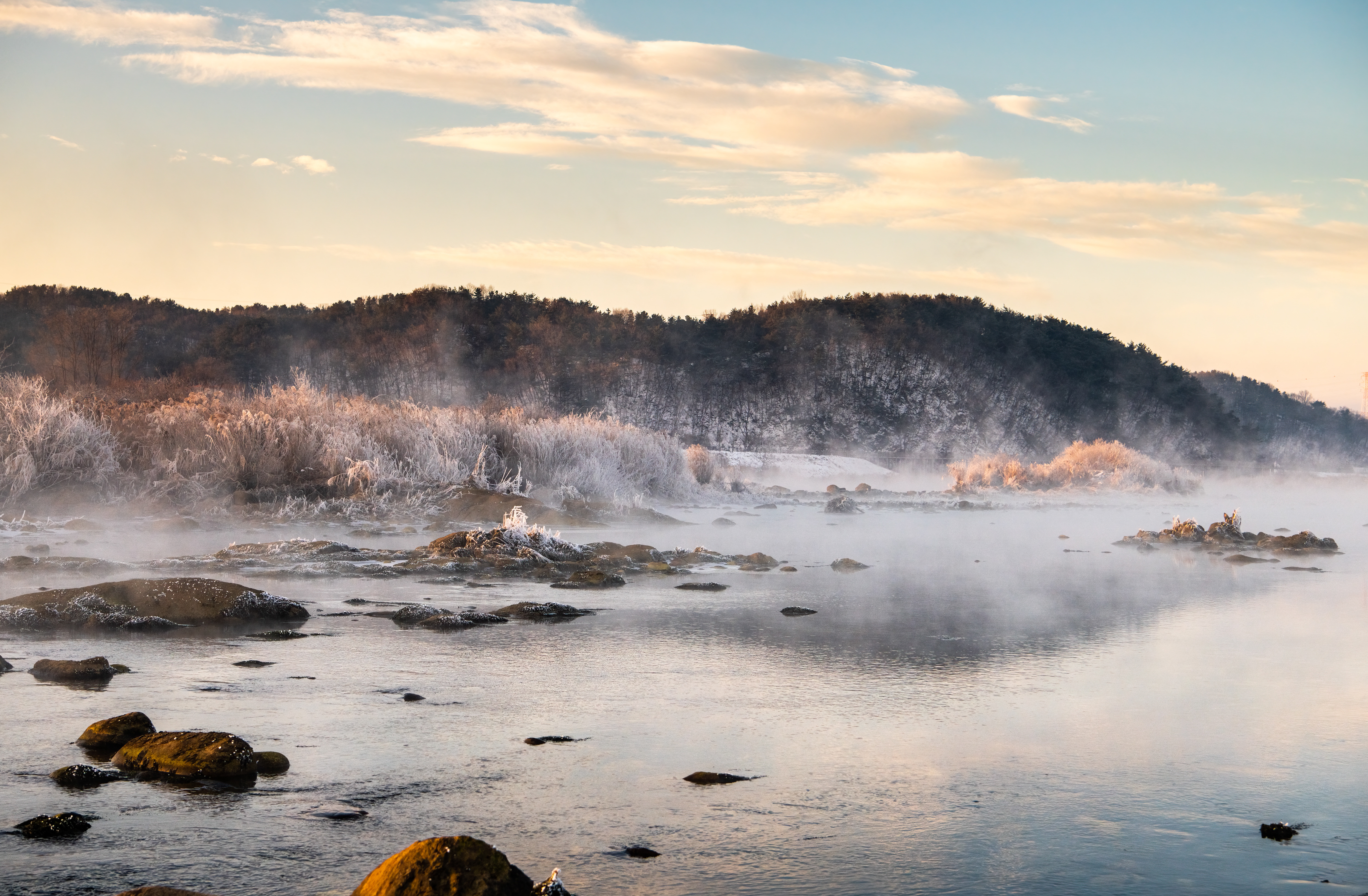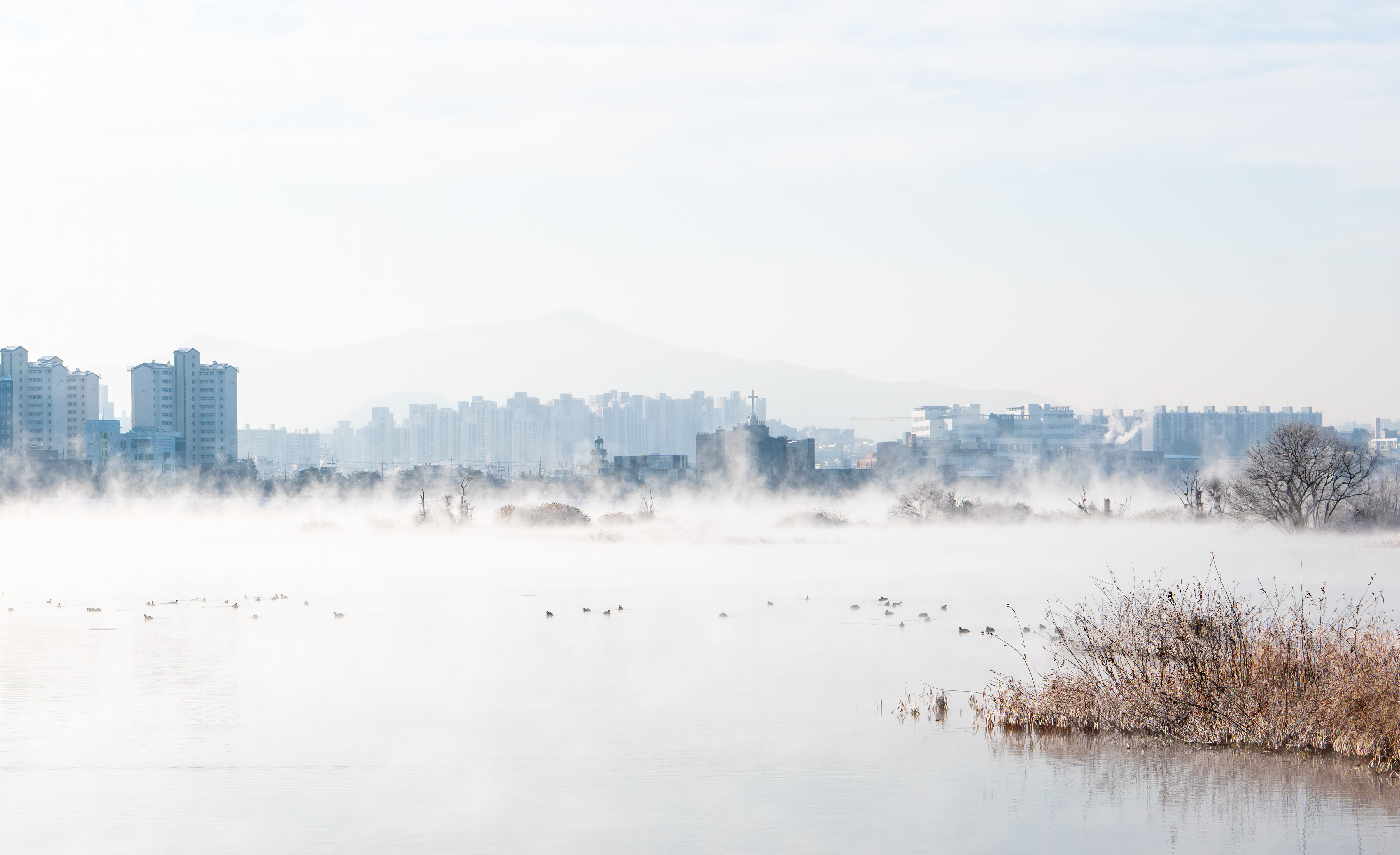 막상 물안개가 피어나면서 상고대가 열리기 시작을 하면서 만들어지는 풍경은 옛날 보았던 그 풍경과 너무나 거리가 있어서 실망을 하였다. 아마 강 주변을 정비하면서 나무들을 잘라내었거나 둑방길에 팬스를 설치한 것이 예전의 풍경과는 많이 다른 풍경을 만드는 것이 아닌가 생각을 해 본다.