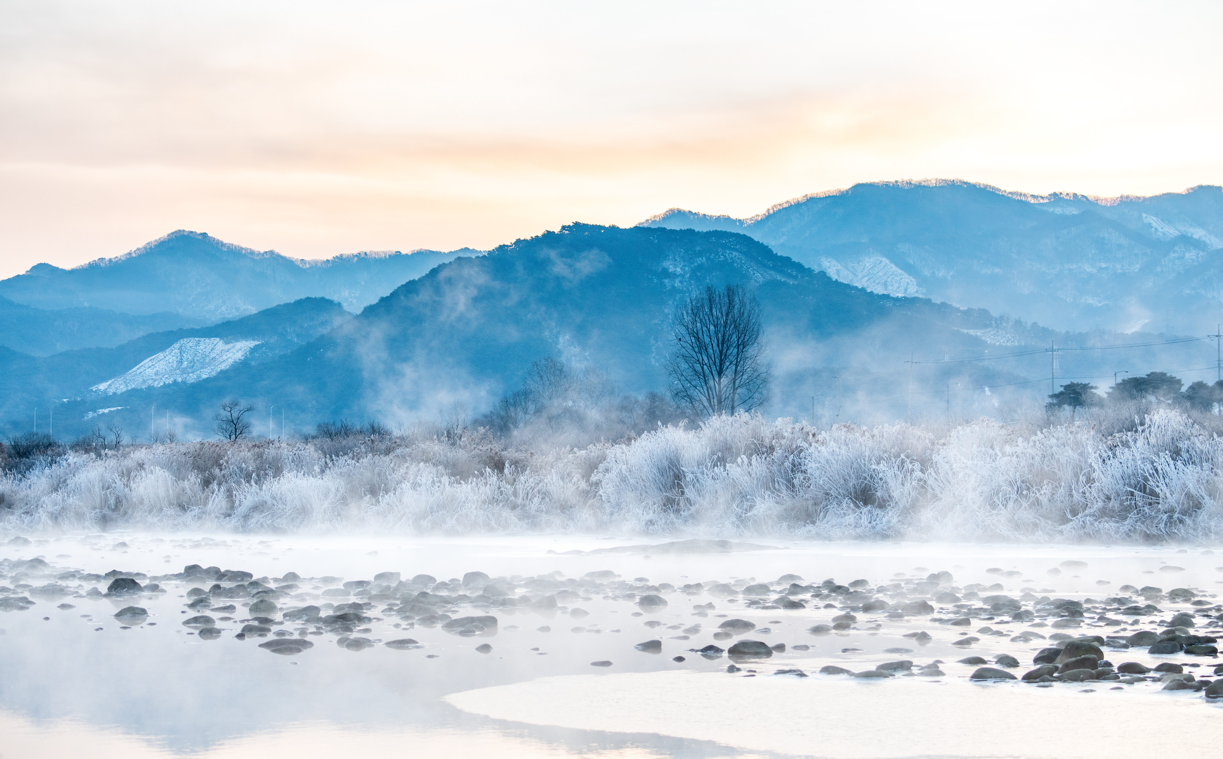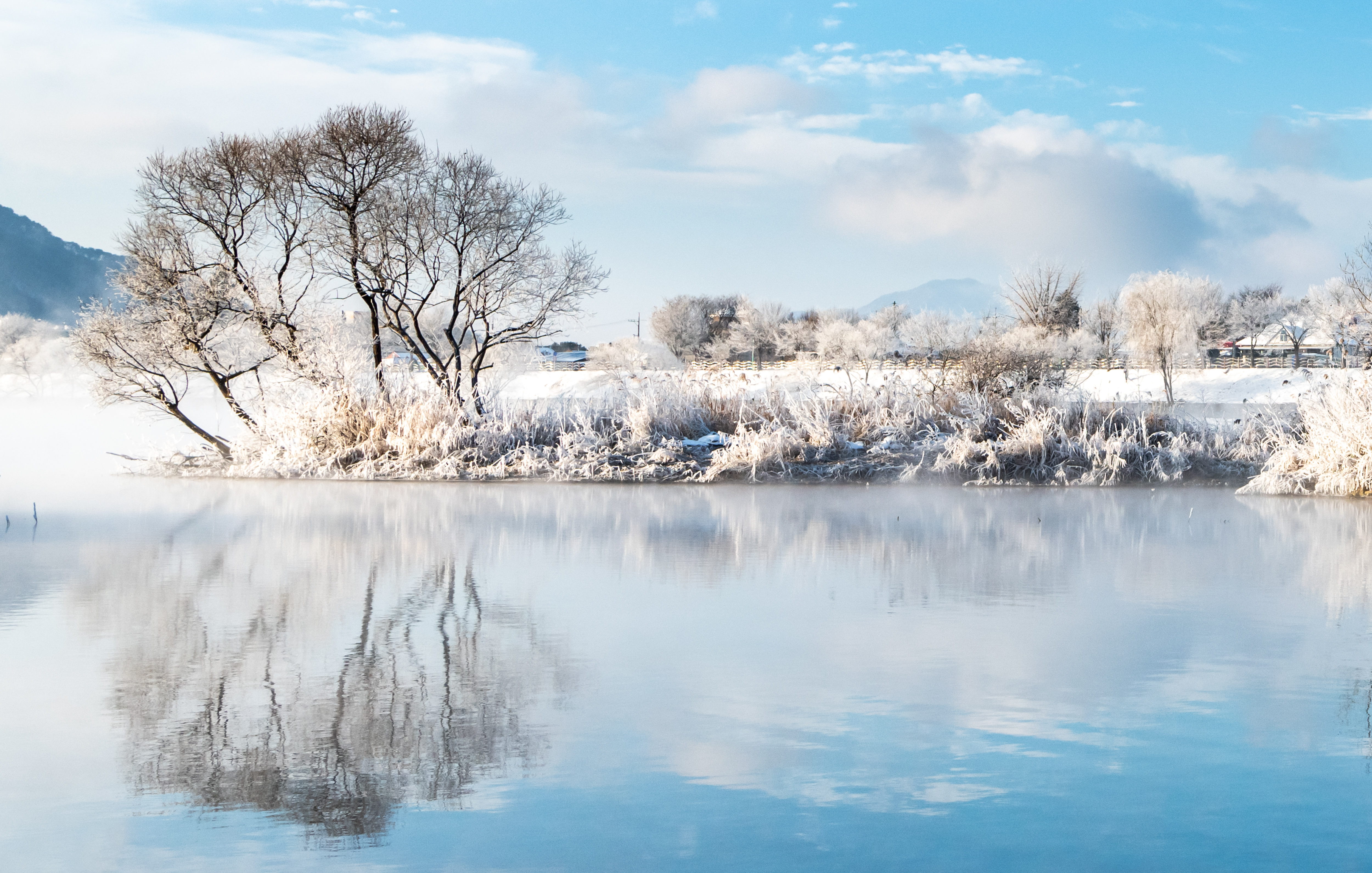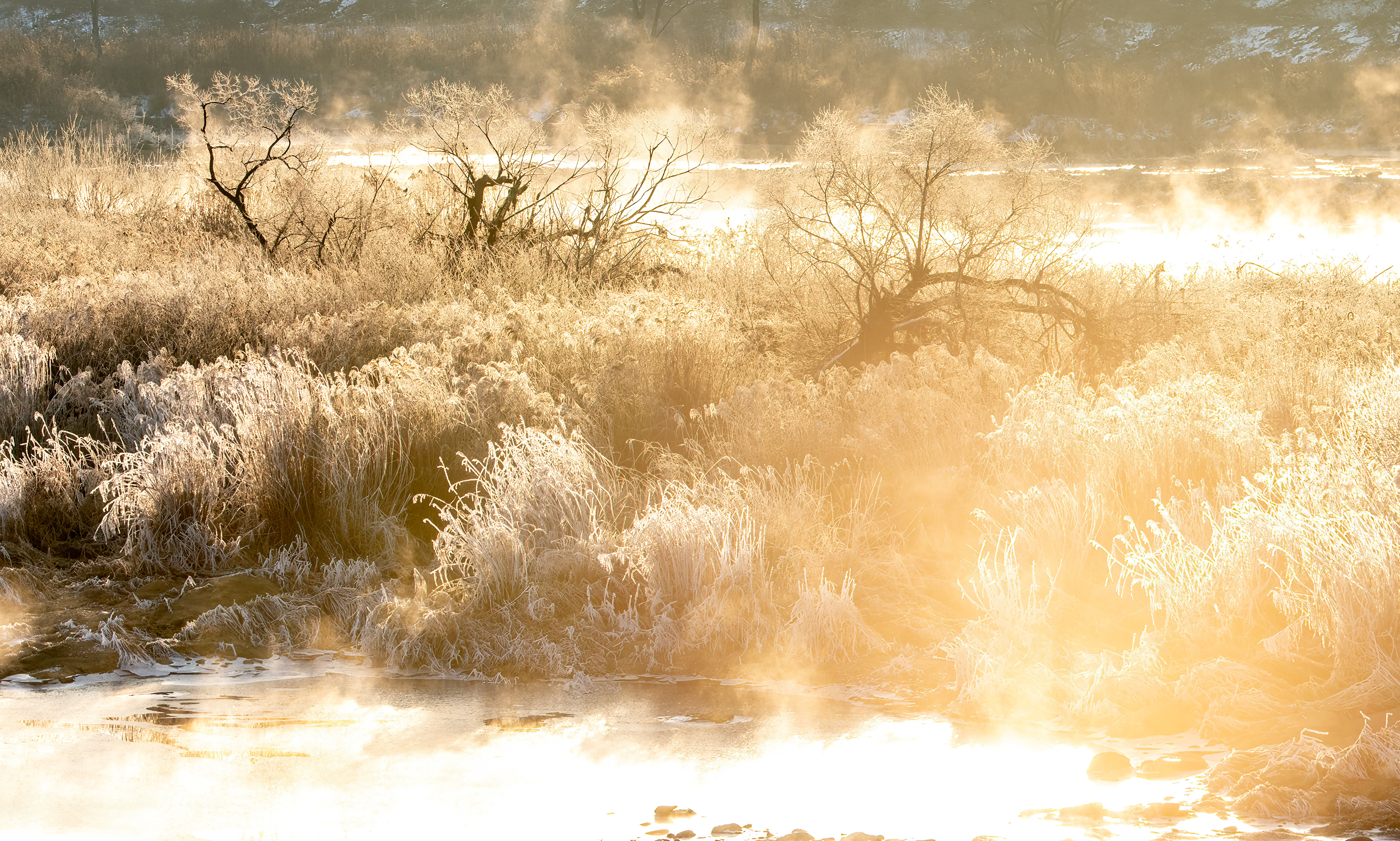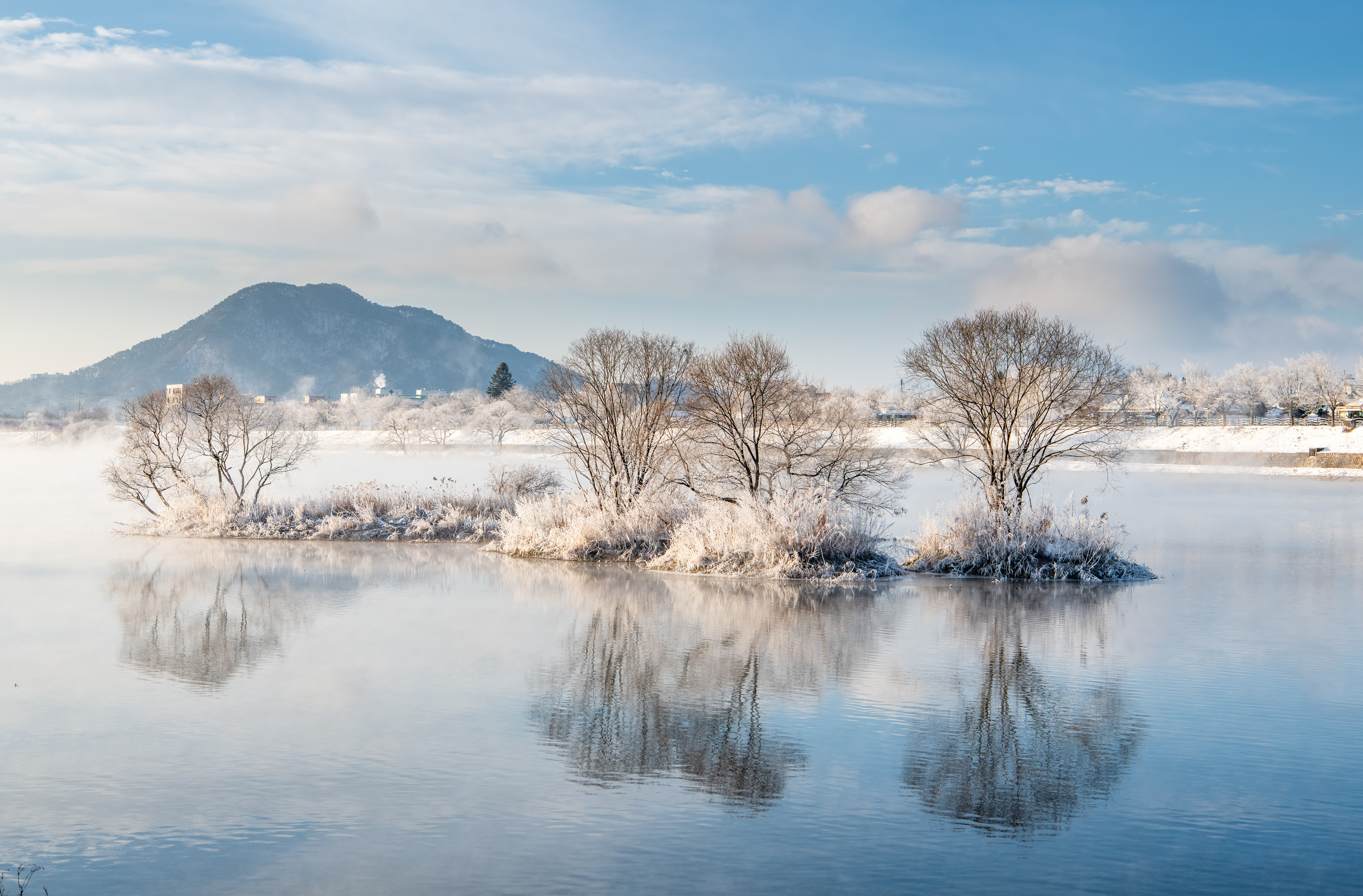 막상 물안개가 피어나면서 상고대가 열리기 시작을 하면서 만들어지는 풍경은 옛날 보았던 그 풍경과 너무나 거리가 있어서 실망을 하였다. 아마 강 주변을 정비하면서 나무들을 잘라내었거나 둑방길에 팬스를 설치한 것이 예전의 풍경과는 많이 다른 풍경을 만드는 것이 아닌가 생각을 해 본다.