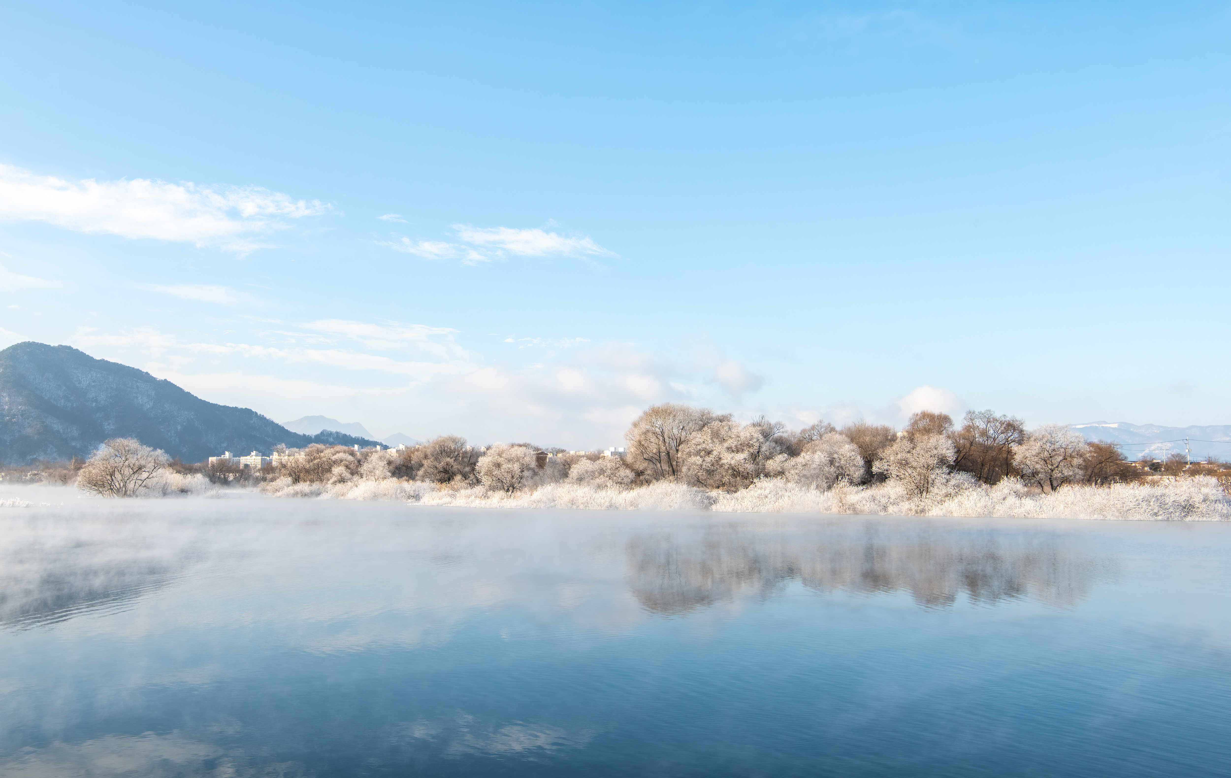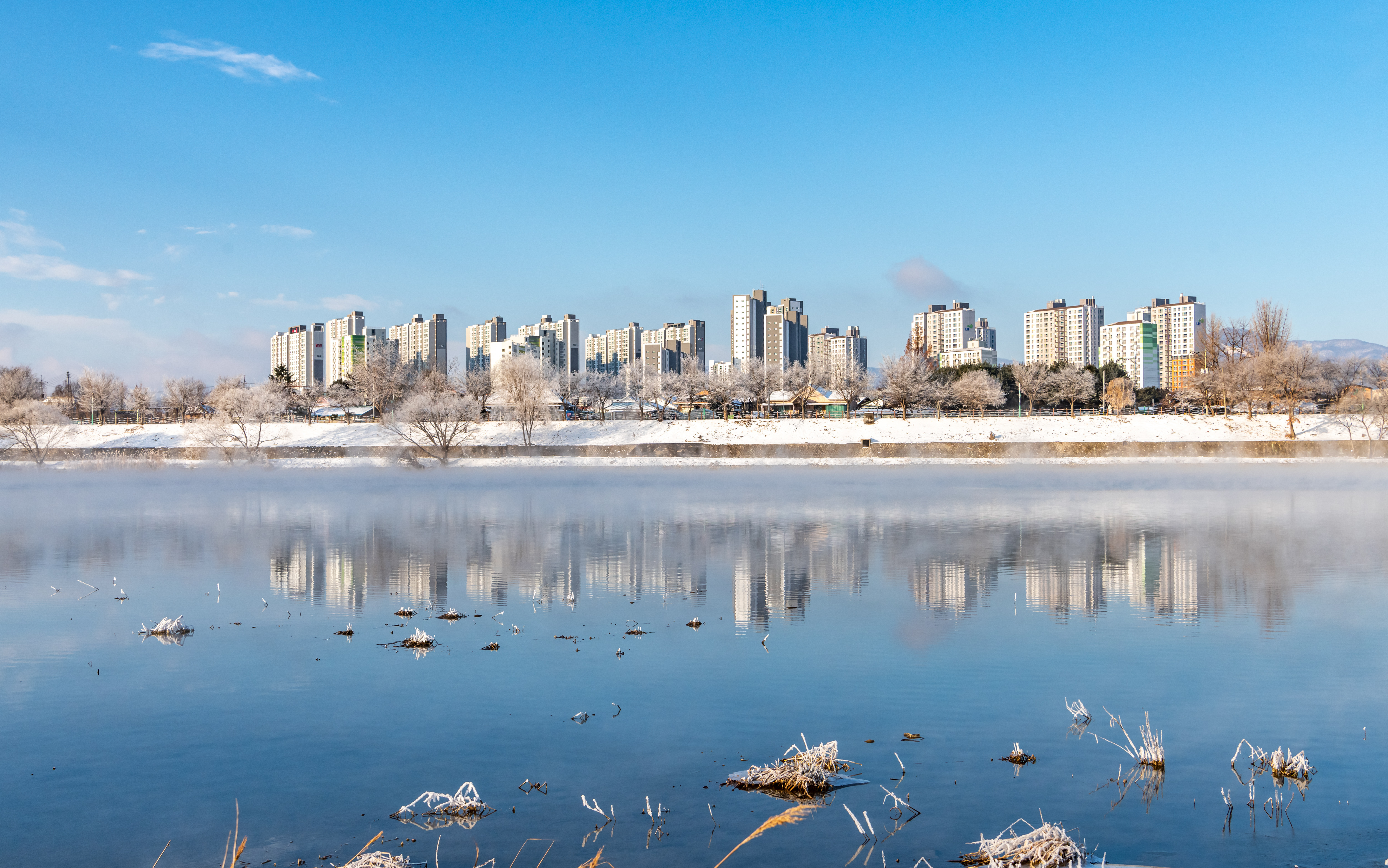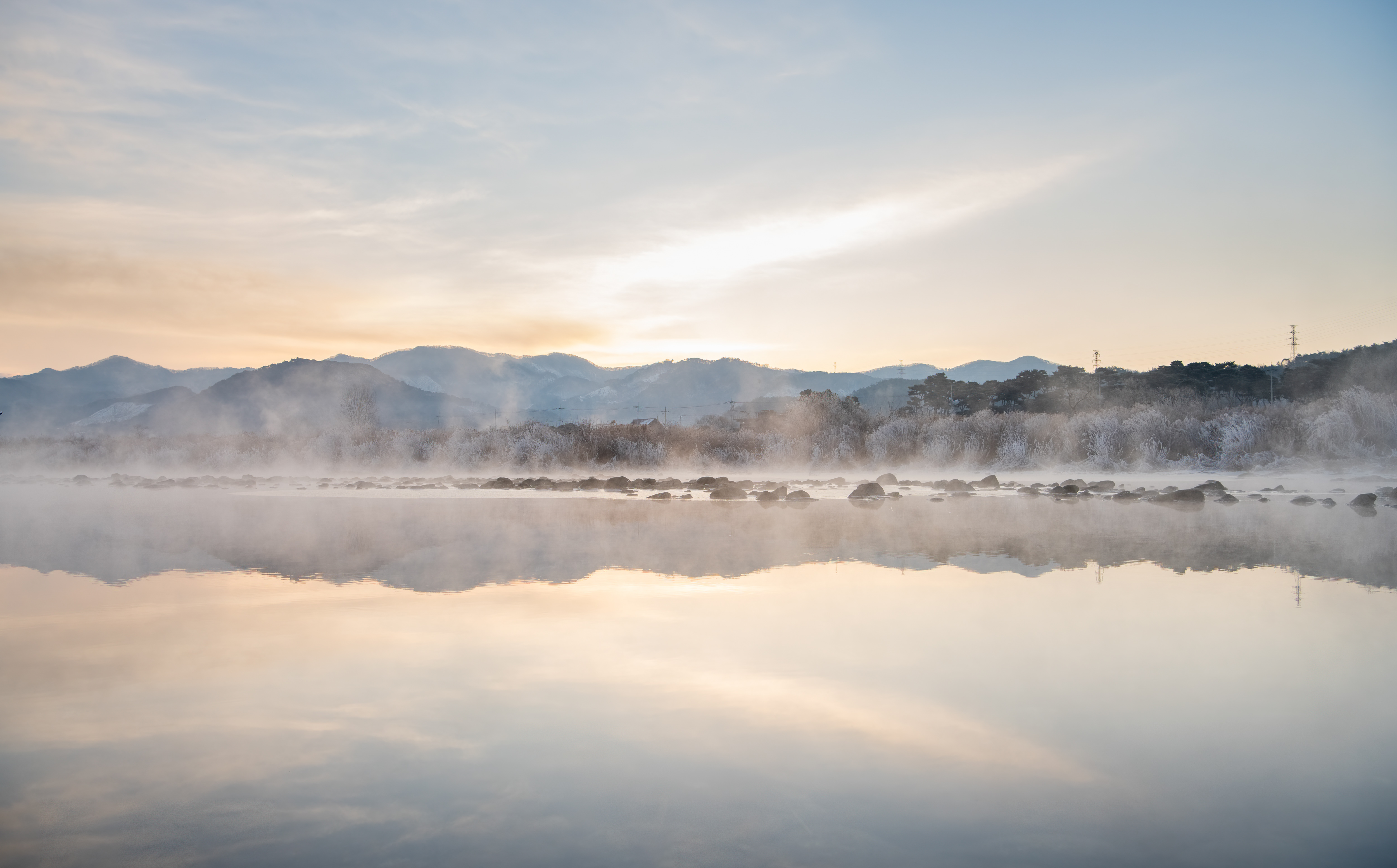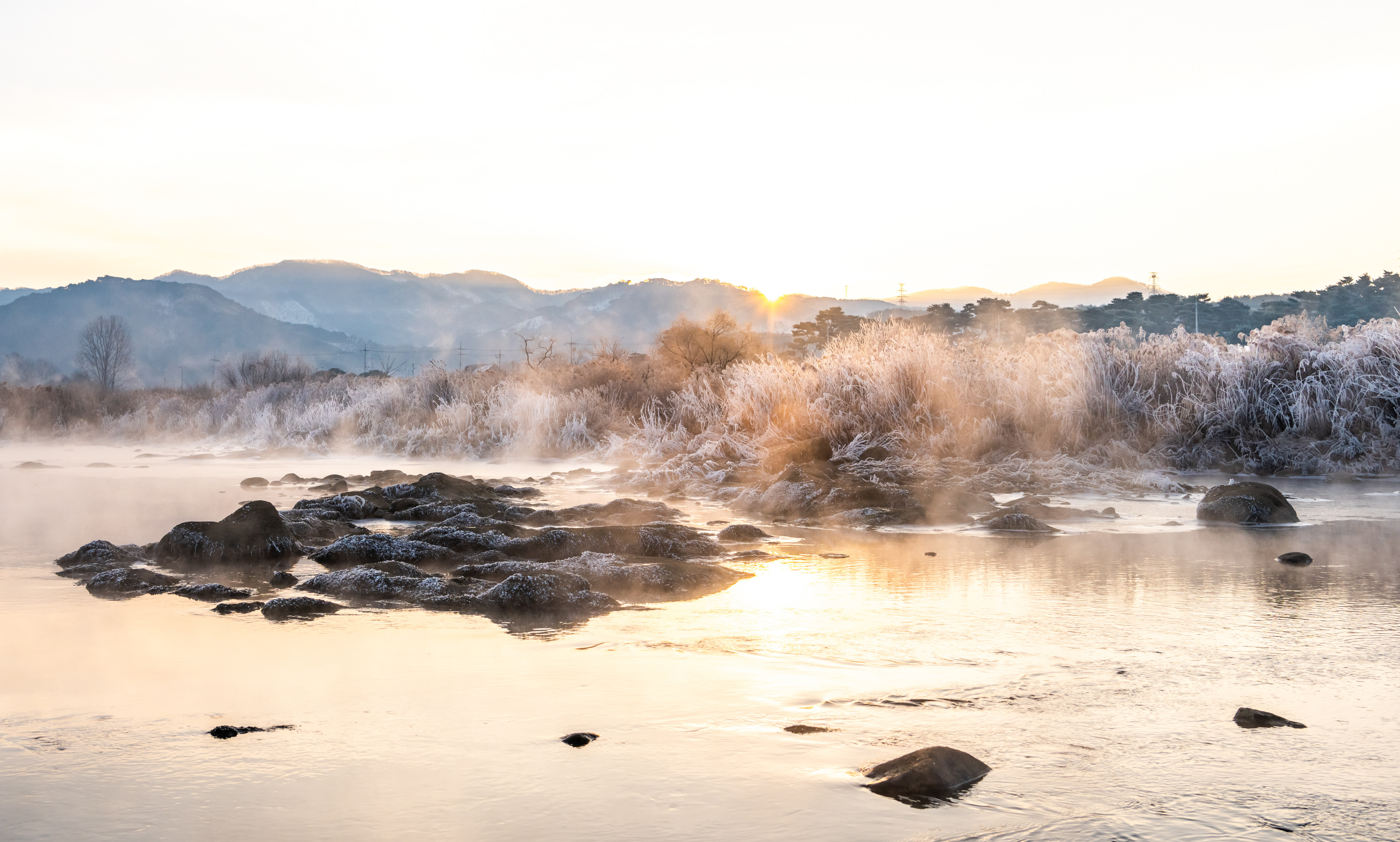 막상 물안개가 피어나면서 상고대가 열리기 시작을 하면서 만들어지는 풍경은 옛날 보았던 그 풍경과 너무나 거리가 있어서 실망을 하였다. 아마 강 주변을 정비하면서 나무들을 잘라내었거나 둑방길에 팬스를 설치한 것이 예전의 풍경과는 많이 다른 풍경을 만드는 것이 아닌가 생각을 해 본다.