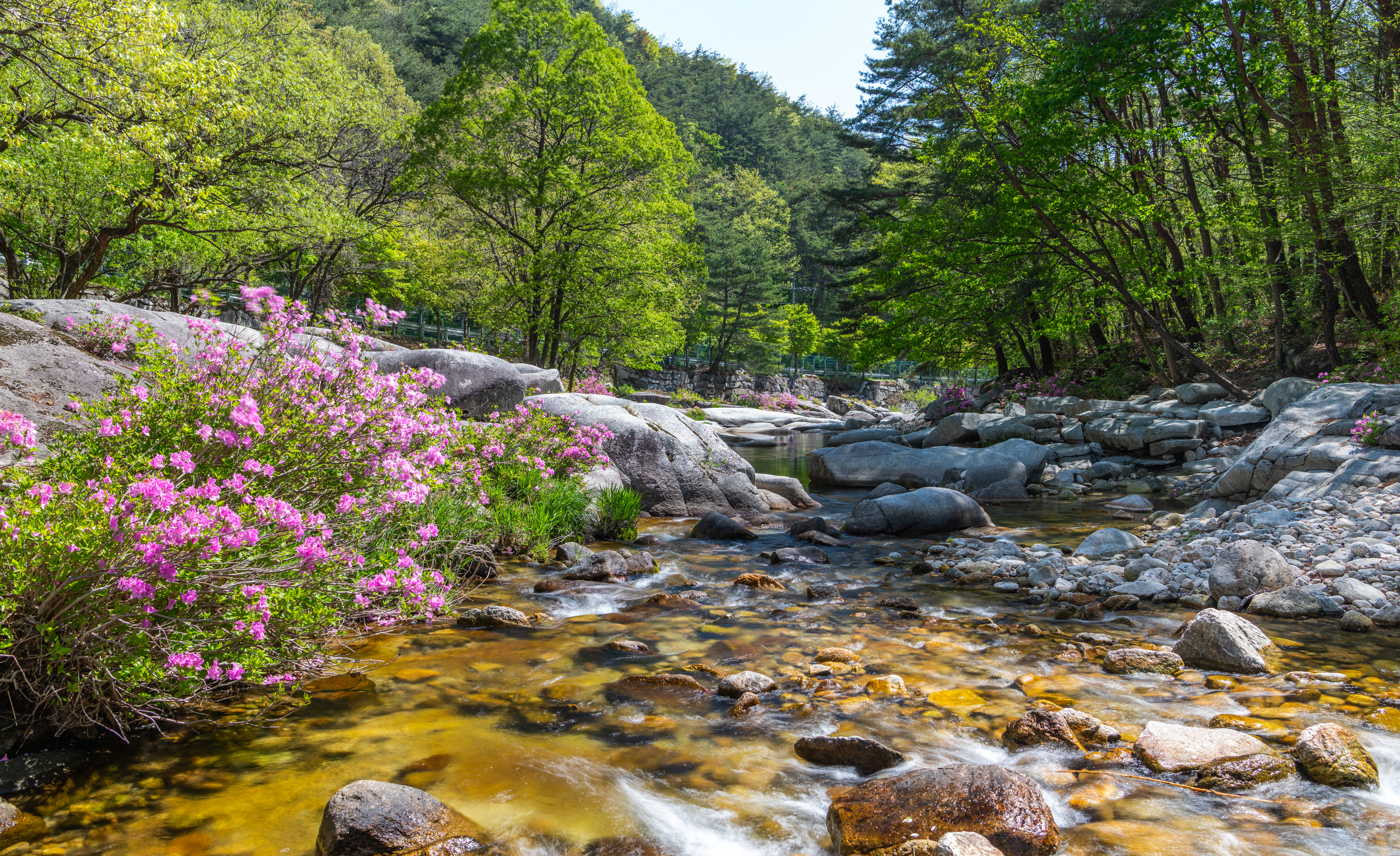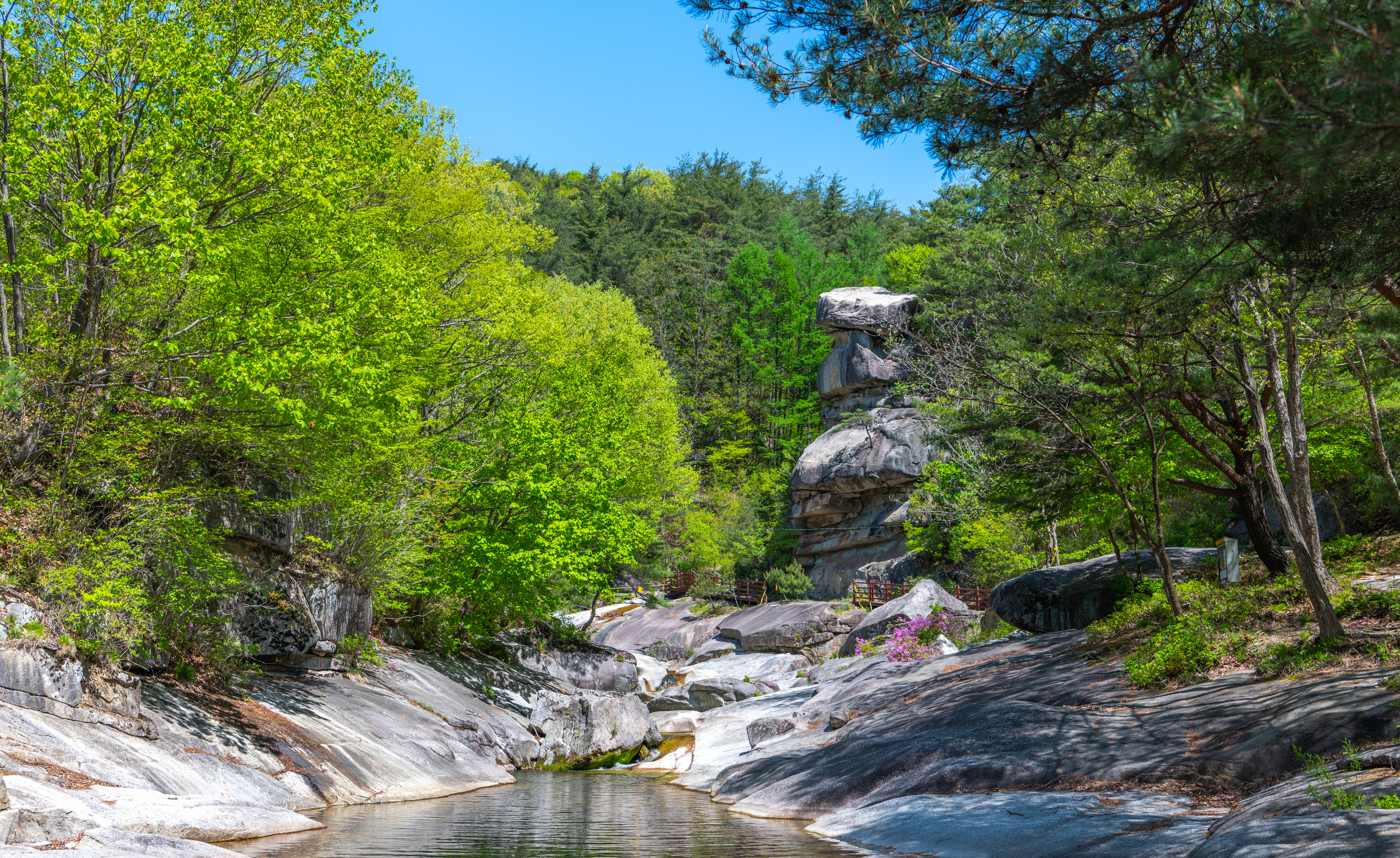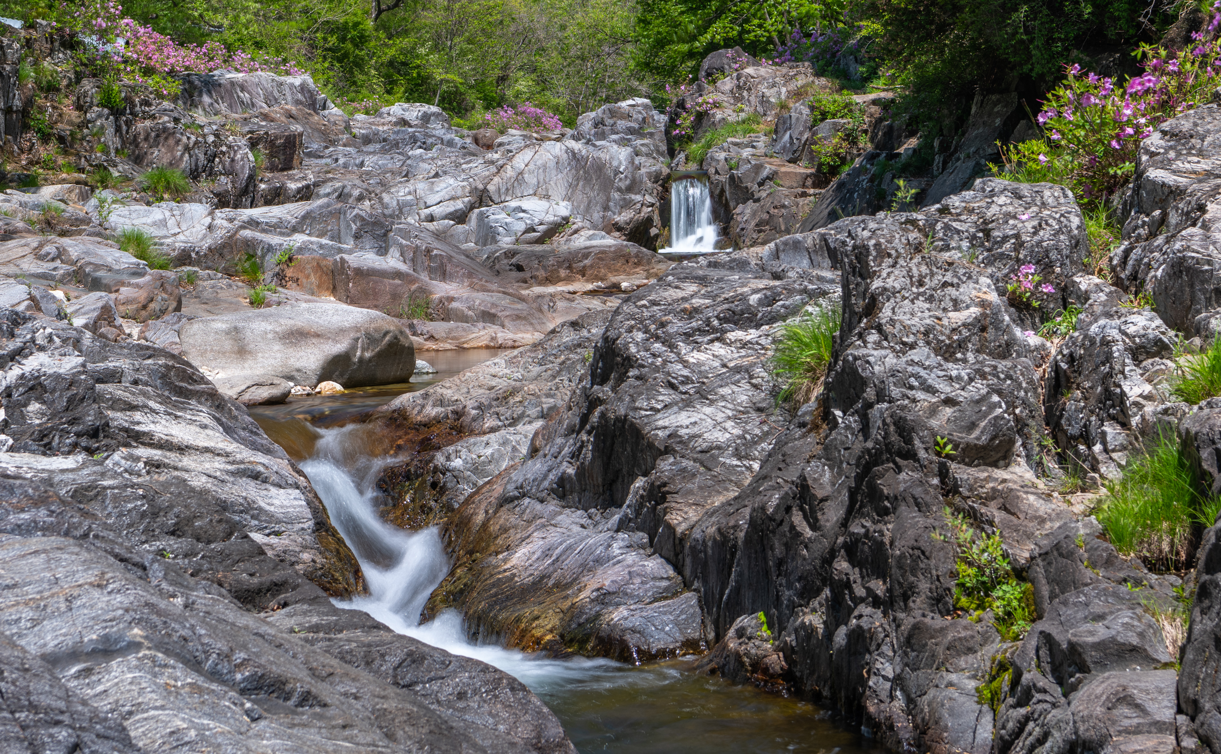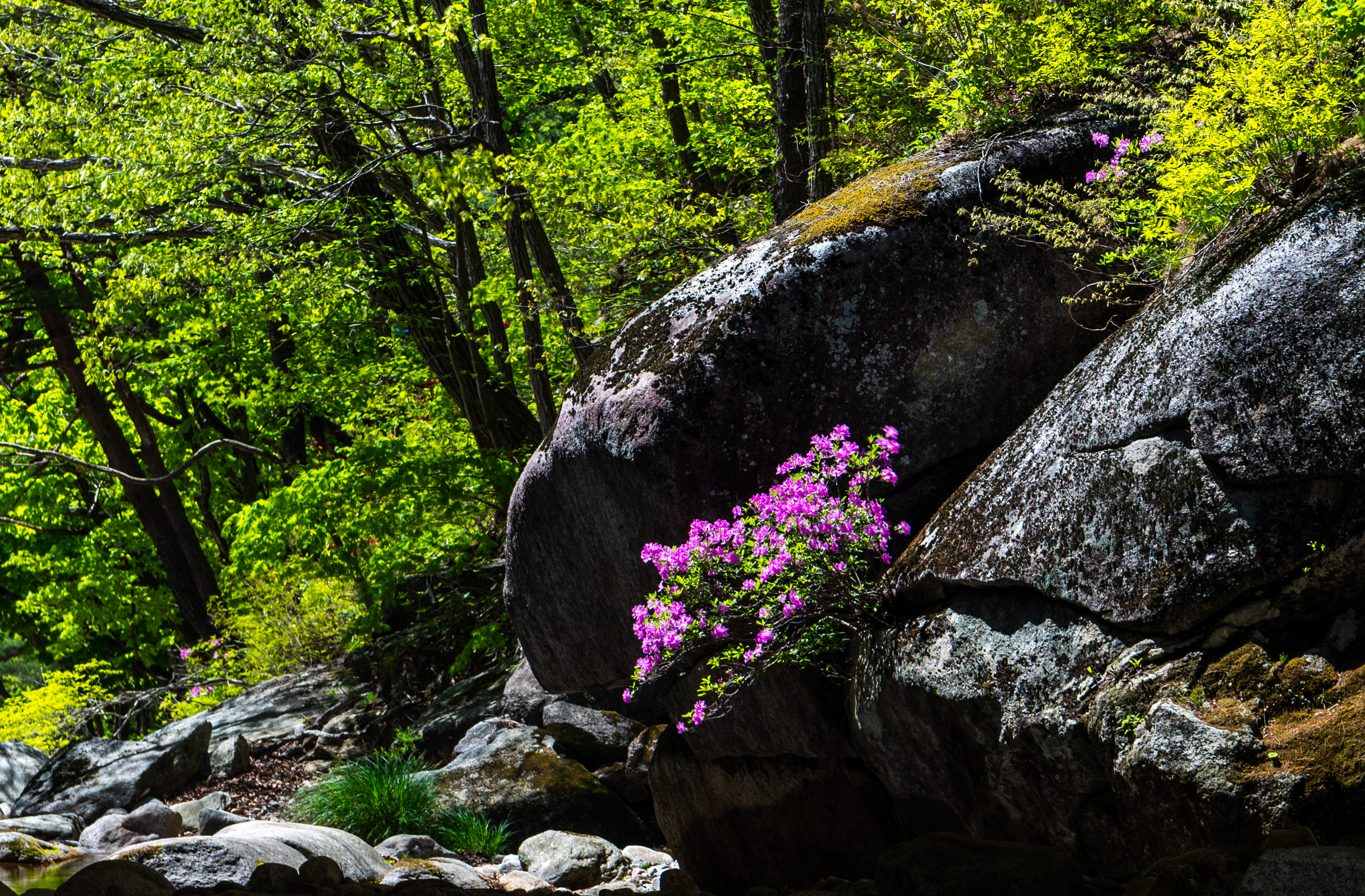 감악산에서 늦게 출발을 해서 월성계곡 농산교에 도착하니 햇빛이 너무나 강하게 비쳤으며 계곡에는 몇 명이 사진을 찍고 있었다. 같이 찍으려고 하였으나 자리가 비지 않기에 계곡을 따라 올라가면서 잠깐씩 들러보면서 끝까지 갔다가 다시 돌아오면서 보았으나 그동안 많이 변했다. 예전에 사진을 찍었던 계곡으로 내려가는 길은 사유지라고 막아 놓았고 일부 계곡에는 못 보던 건물도 생겼다.