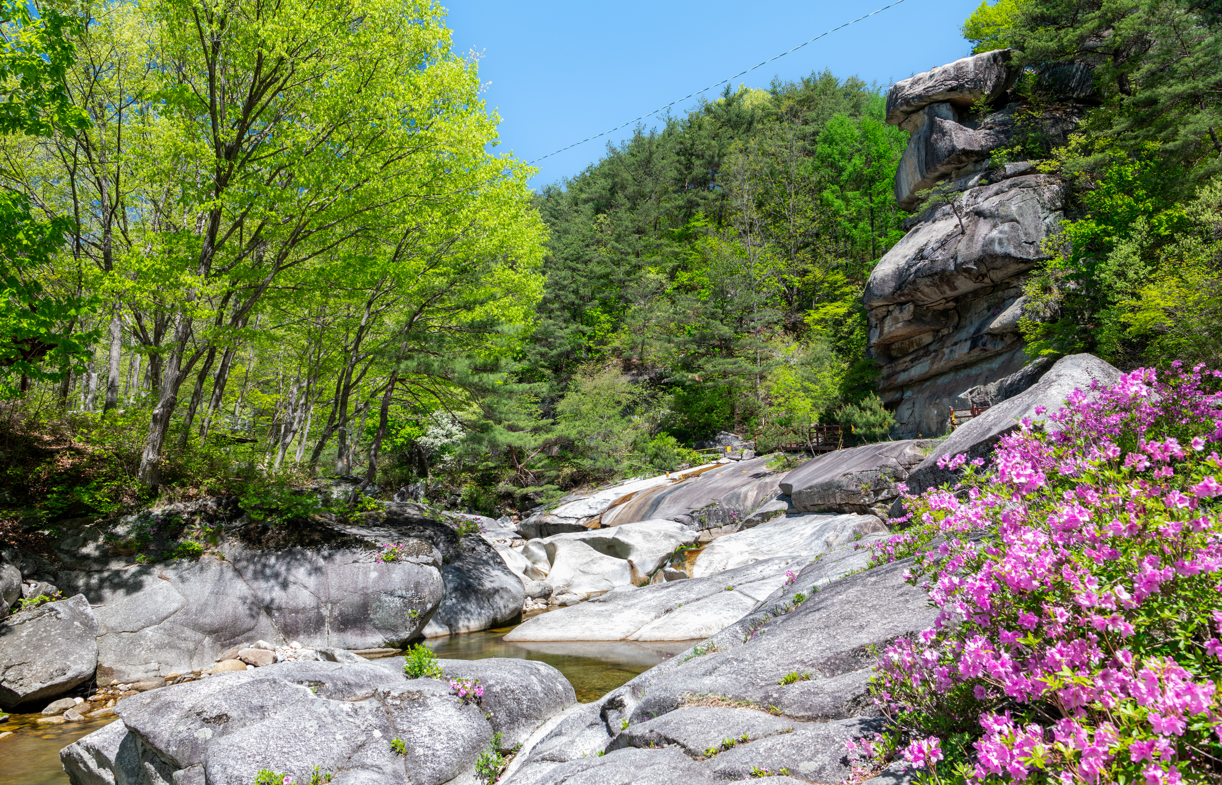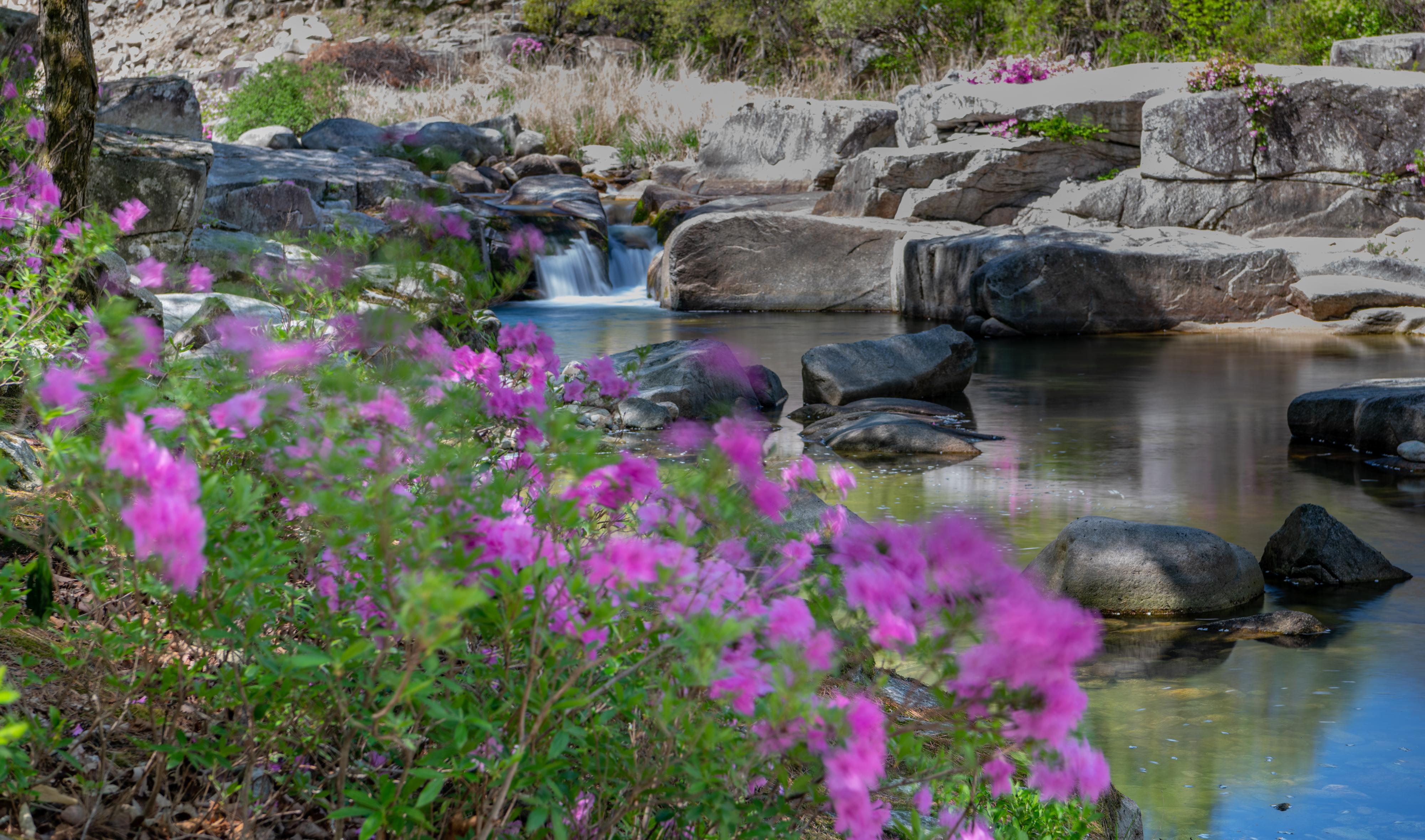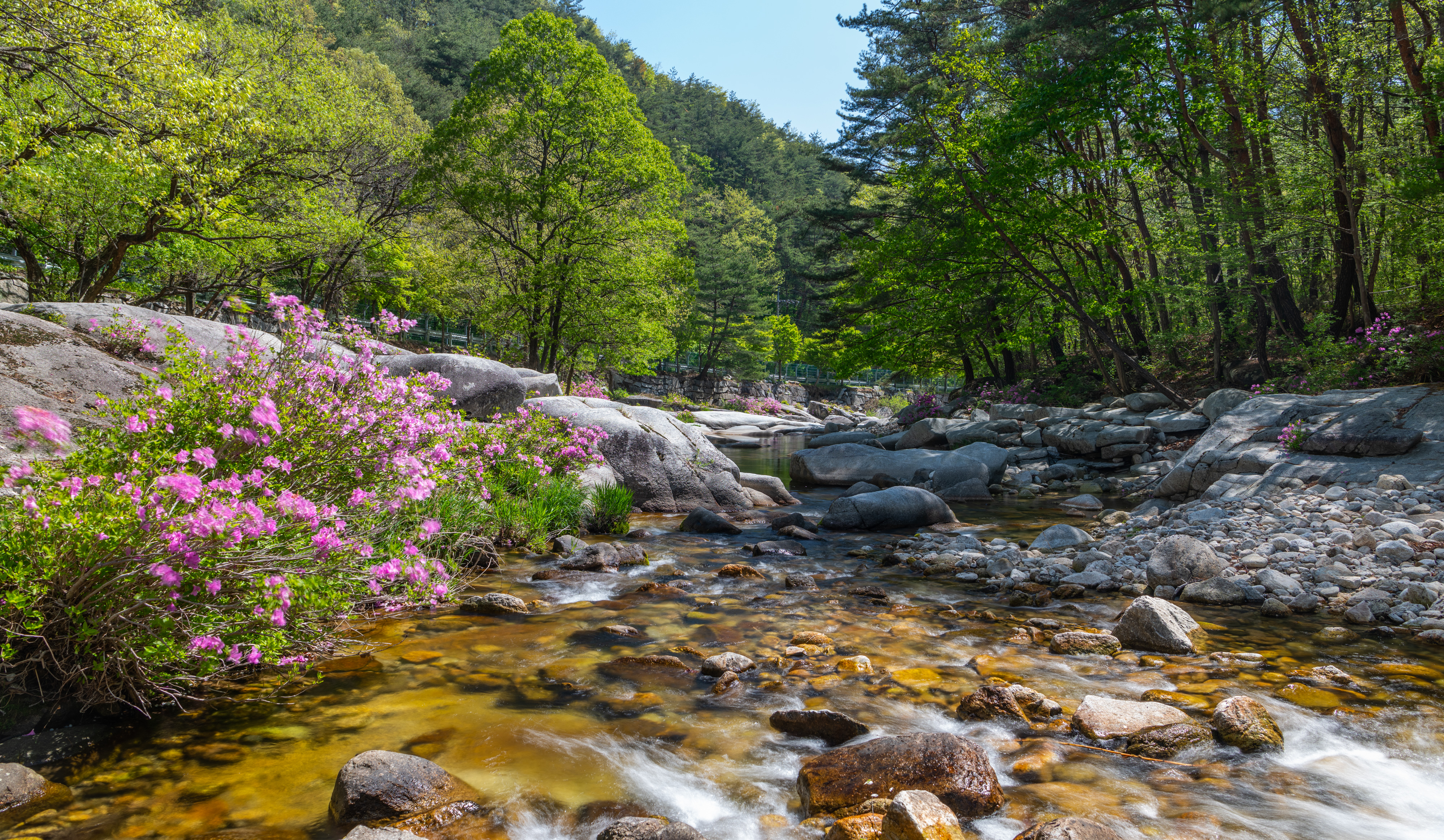 감악산에서 늦게 출발을 해서 월성계곡 농산교에 도착하니 햇빛이 너무나 강하게 비쳤으며 계곡에는 몇 명이 사진을 찍고 있었다. 같이 찍으려고 하였으나 자리가 비지 않기에 계곡을 따라 올라가면서 잠깐씩 들러보면서 끝까지 갔다가 다시 돌아오면서 보았으나 그동안 많이 변했다. 예전에 사진을 찍었던 계곡으로 내려가는 길은 사유지라고 막아 놓았고 일부 계곡에는 못 보던 건물도 생겼다.