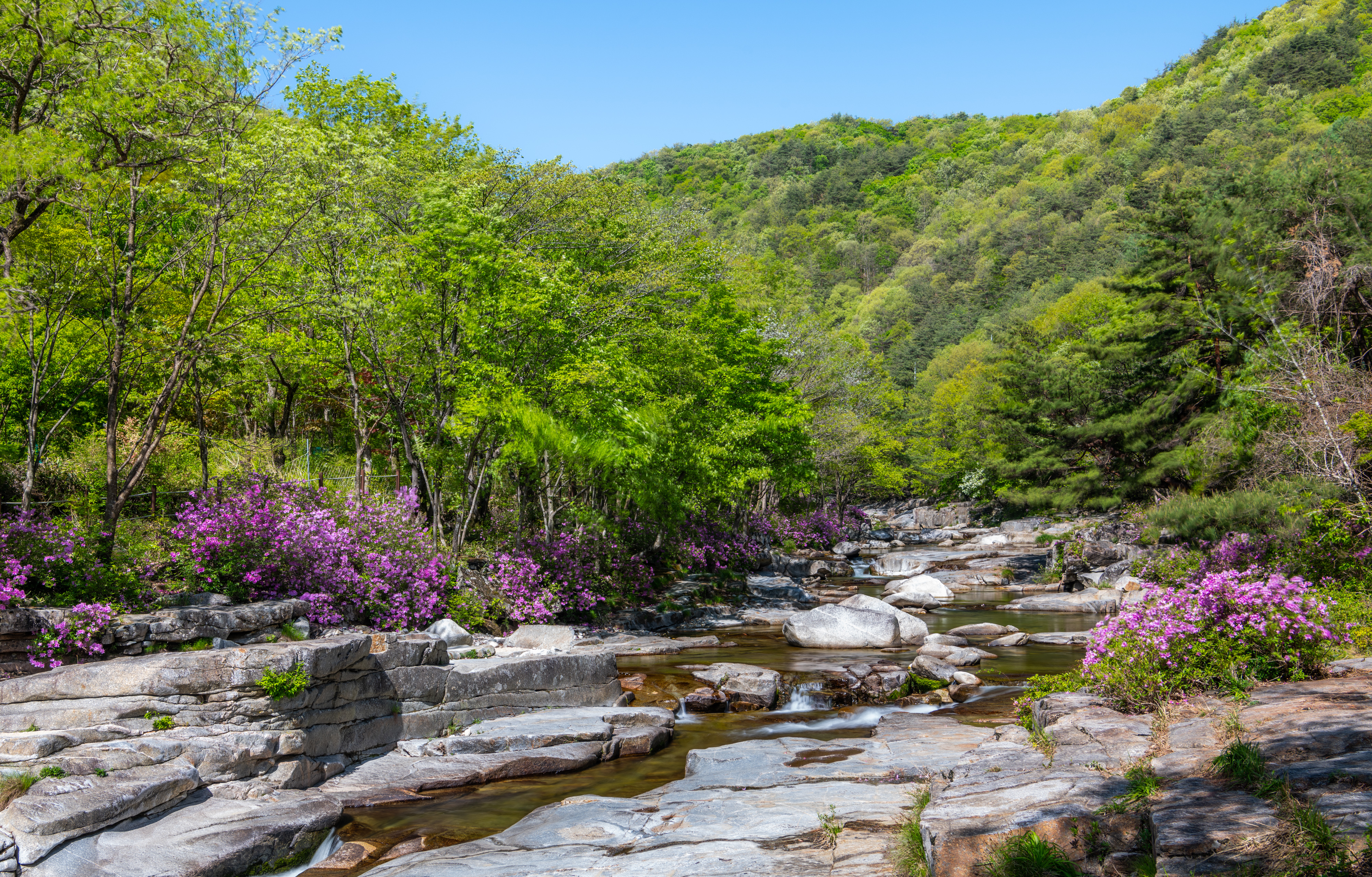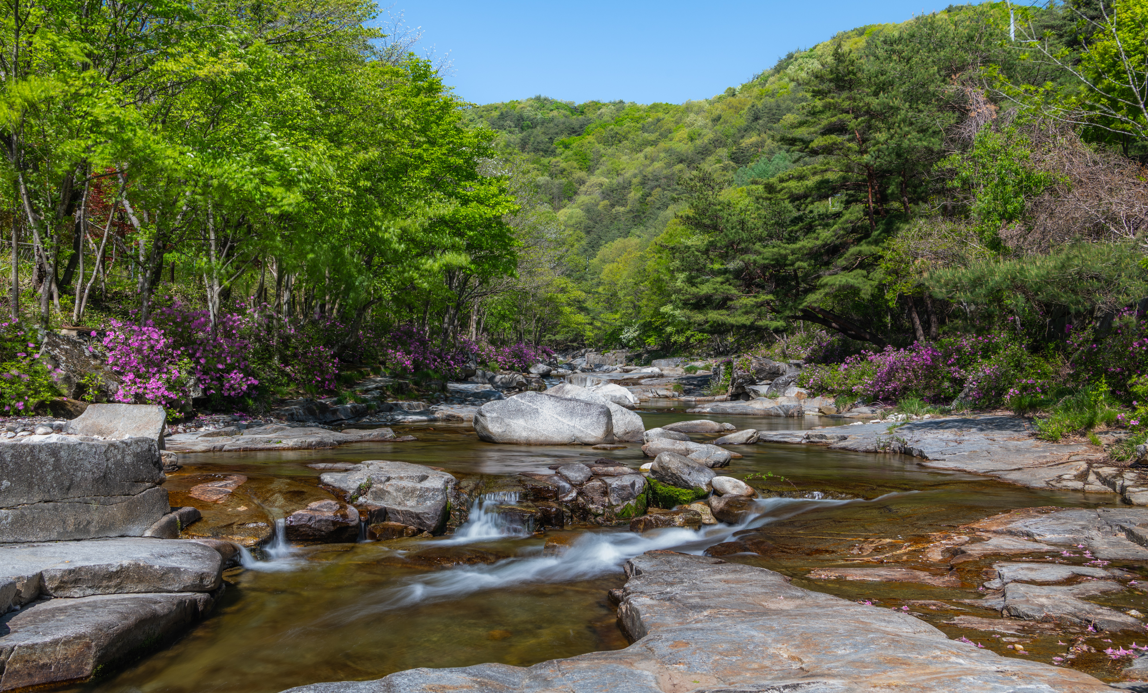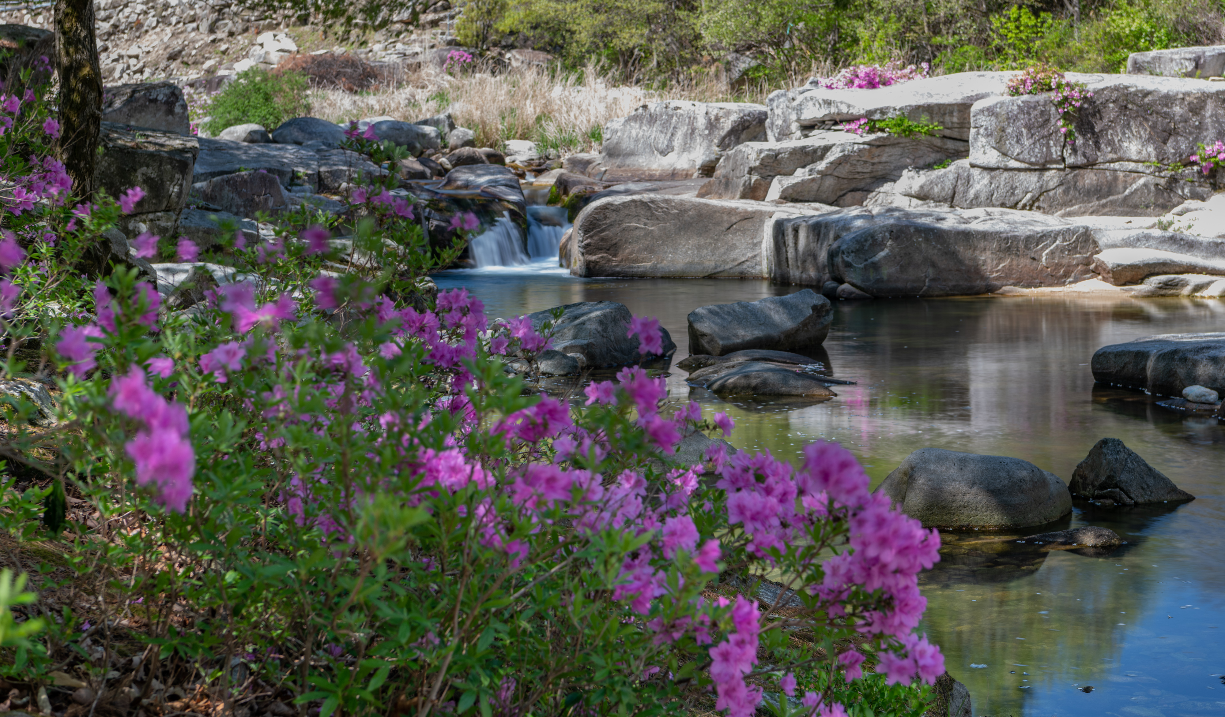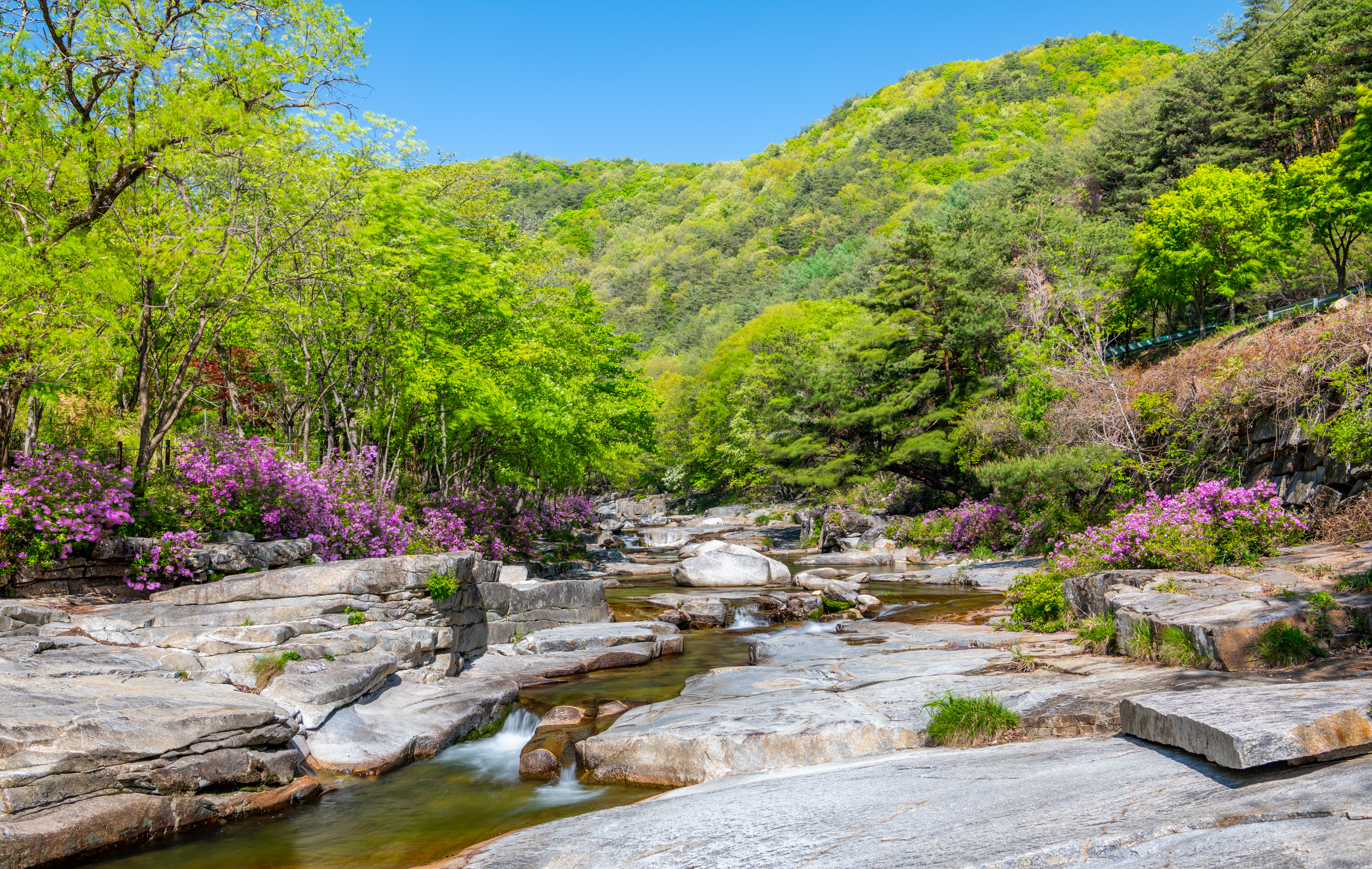 감악산에서 늦게 출발을 해서 월성계곡 농산교에 도착하니 햇빛이 너무나 강하게 비쳤으며 계곡에는 몇 명이 사진을 찍고 있었다. 같이 찍으려고 하였으나 자리가 비지 않기에 계곡을 따라 올라가면서 잠깐씩 들러보면서 끝까지 갔다가 다시 돌아오면서 보았으나 그동안 많이 변했다. 예전에 사진을 찍었던 계곡으로 내려가는 길은 사유지라고 막아 놓았고 일부 계곡에는 못 보던 건물도 생겼다.