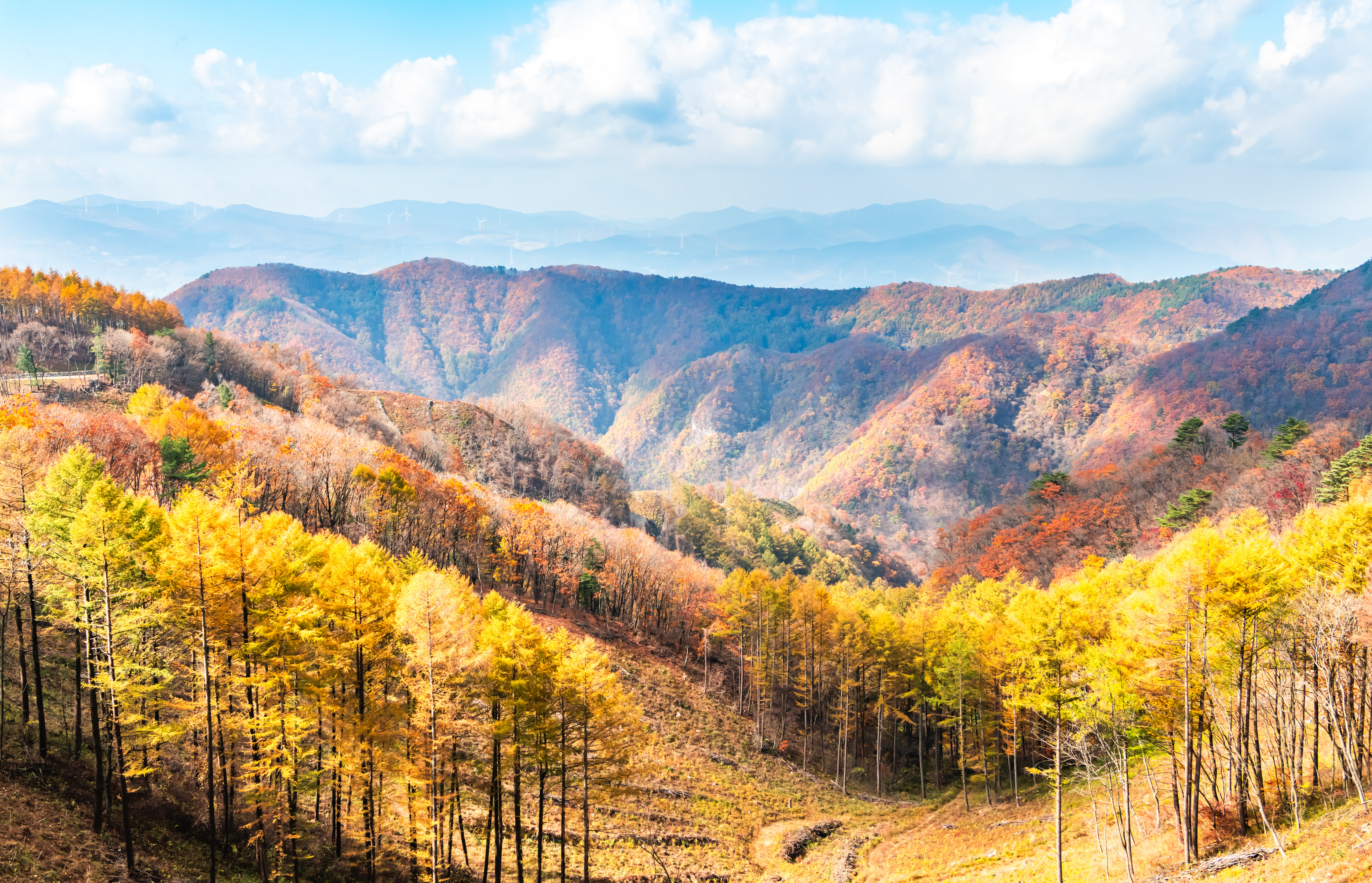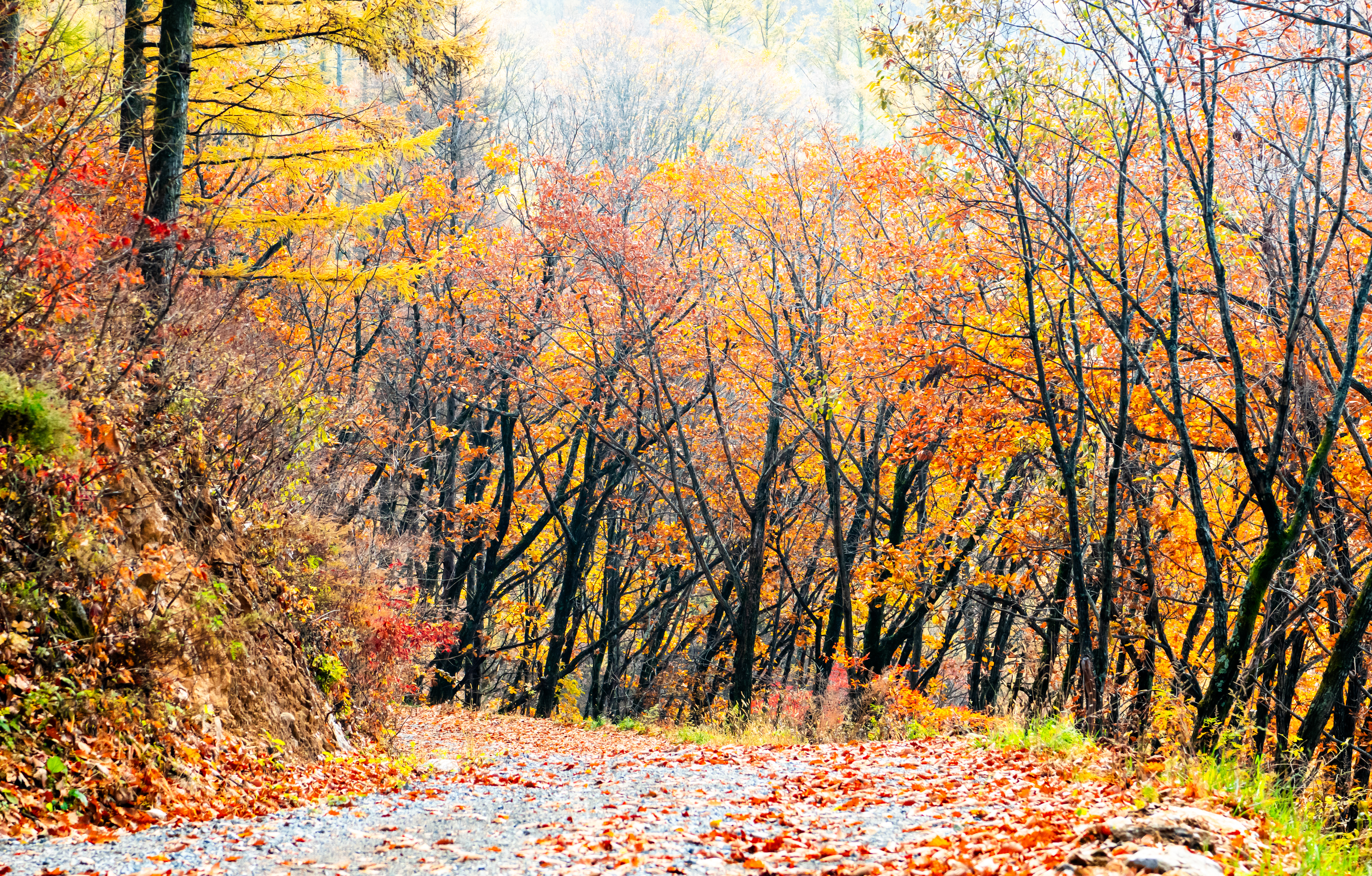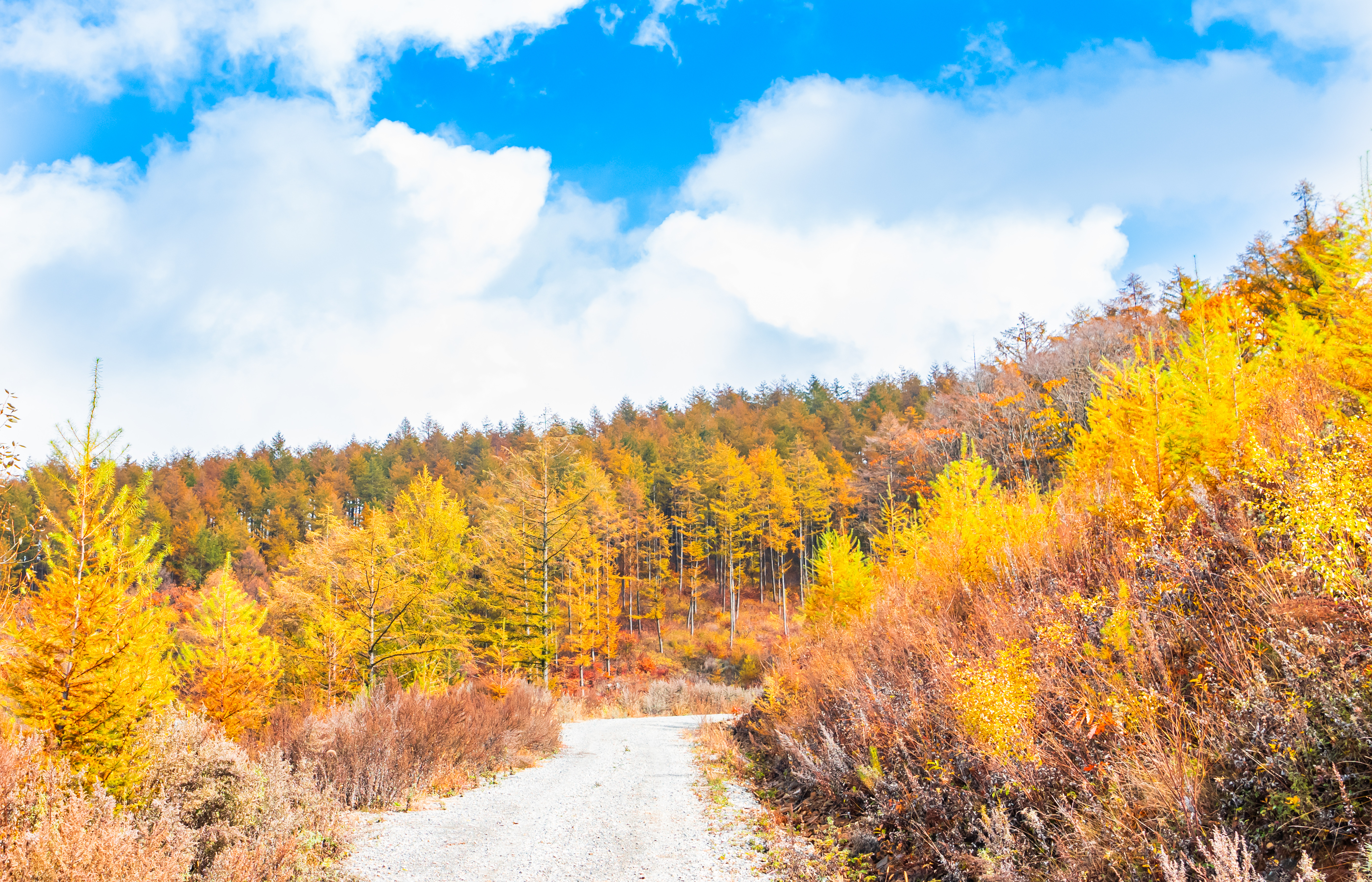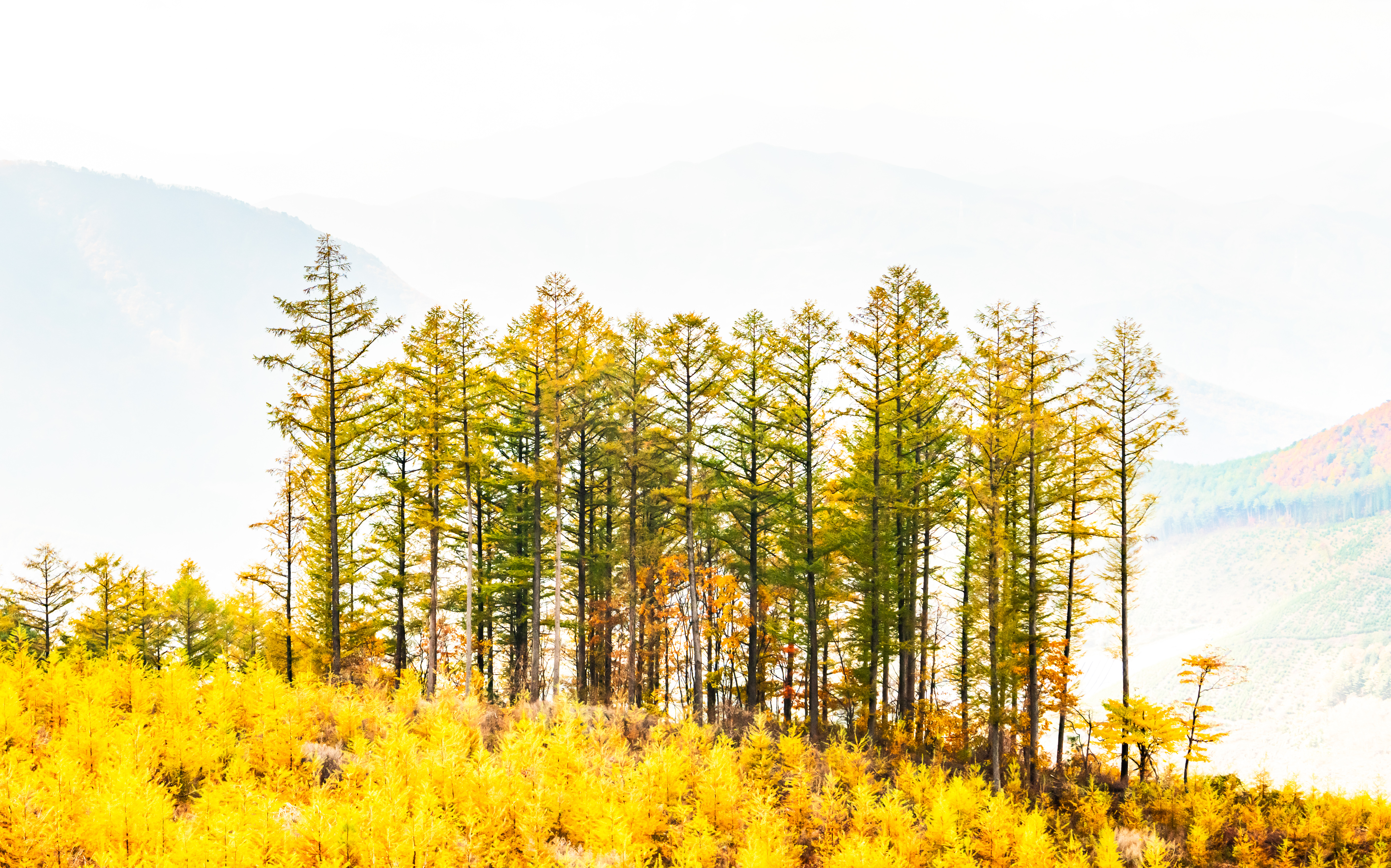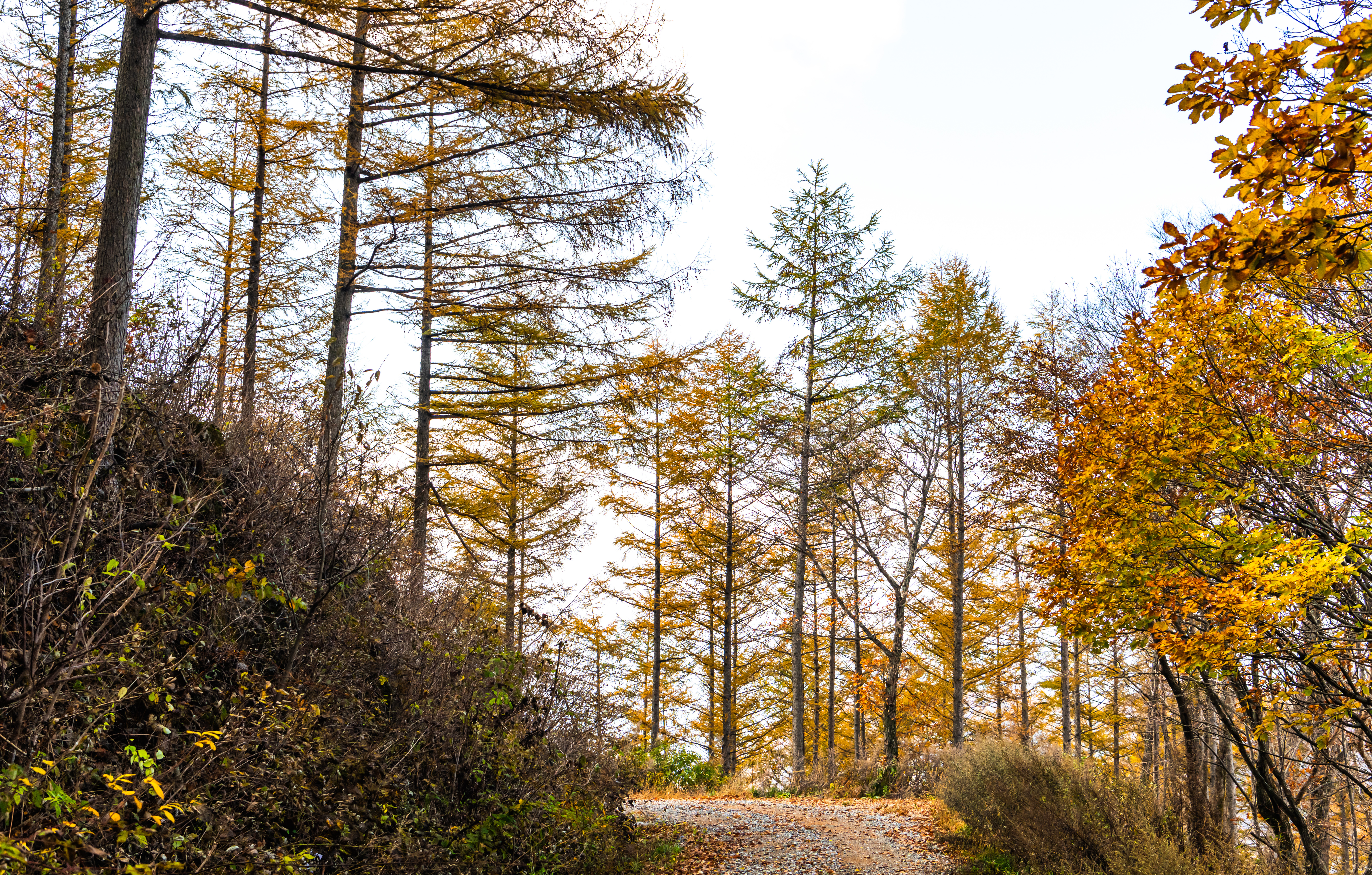 육백산의 노란 낙엽송의 단풍을 기대하였지만, 색상이 그리 예쁘지가 않았다.