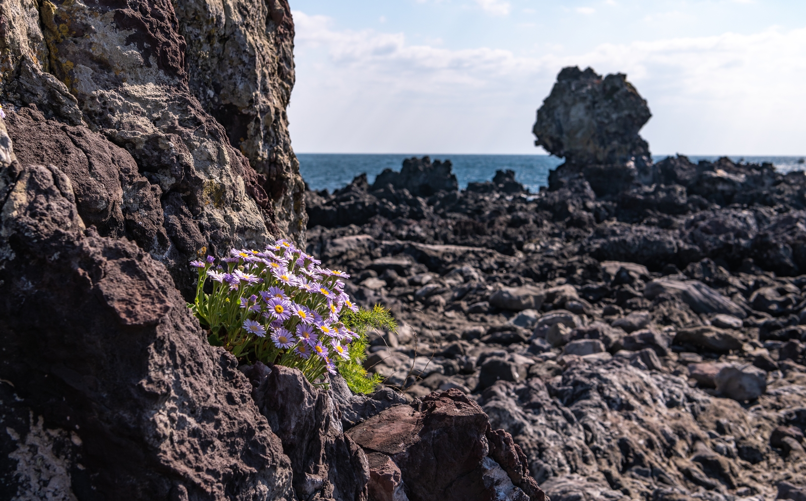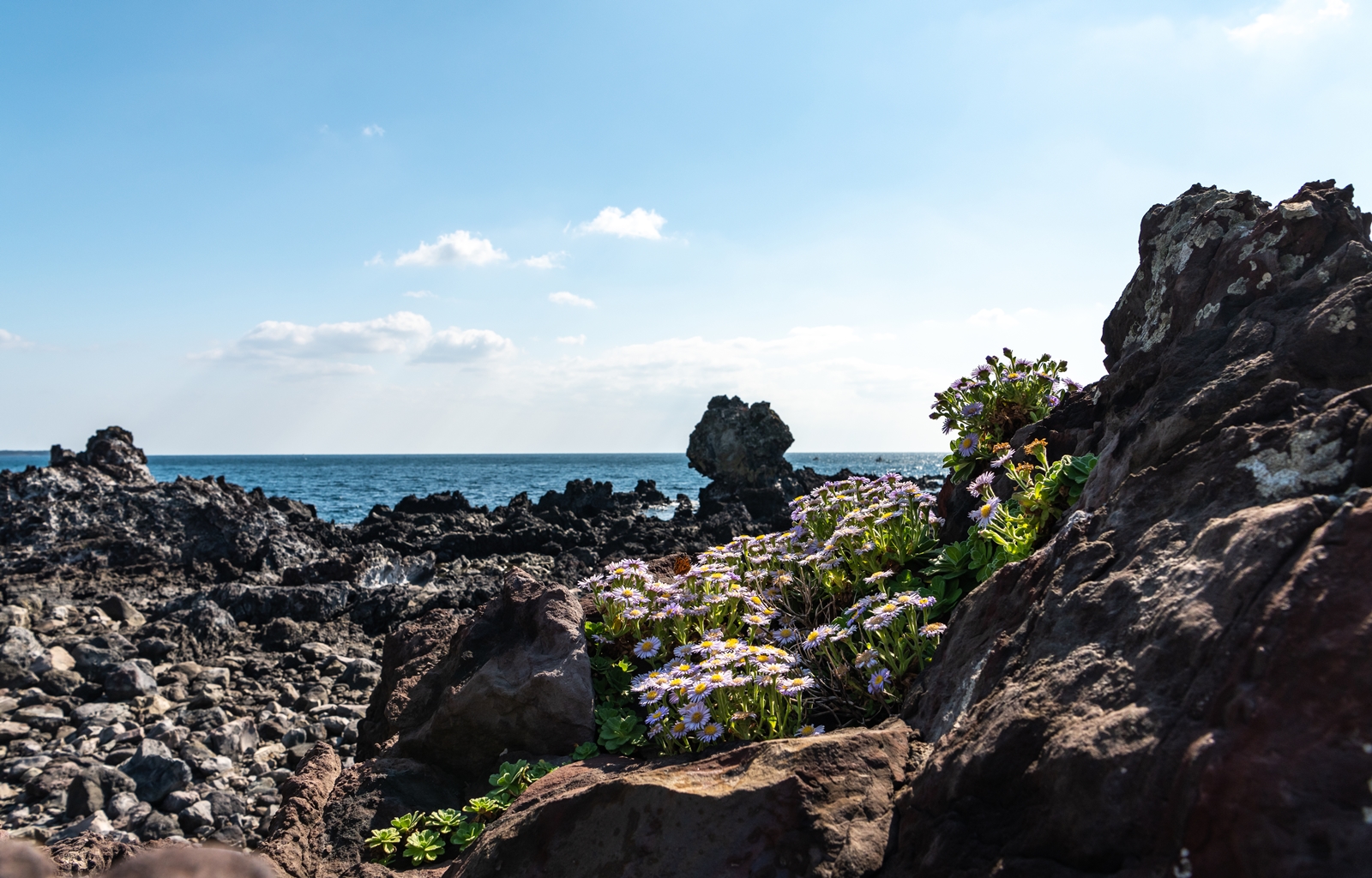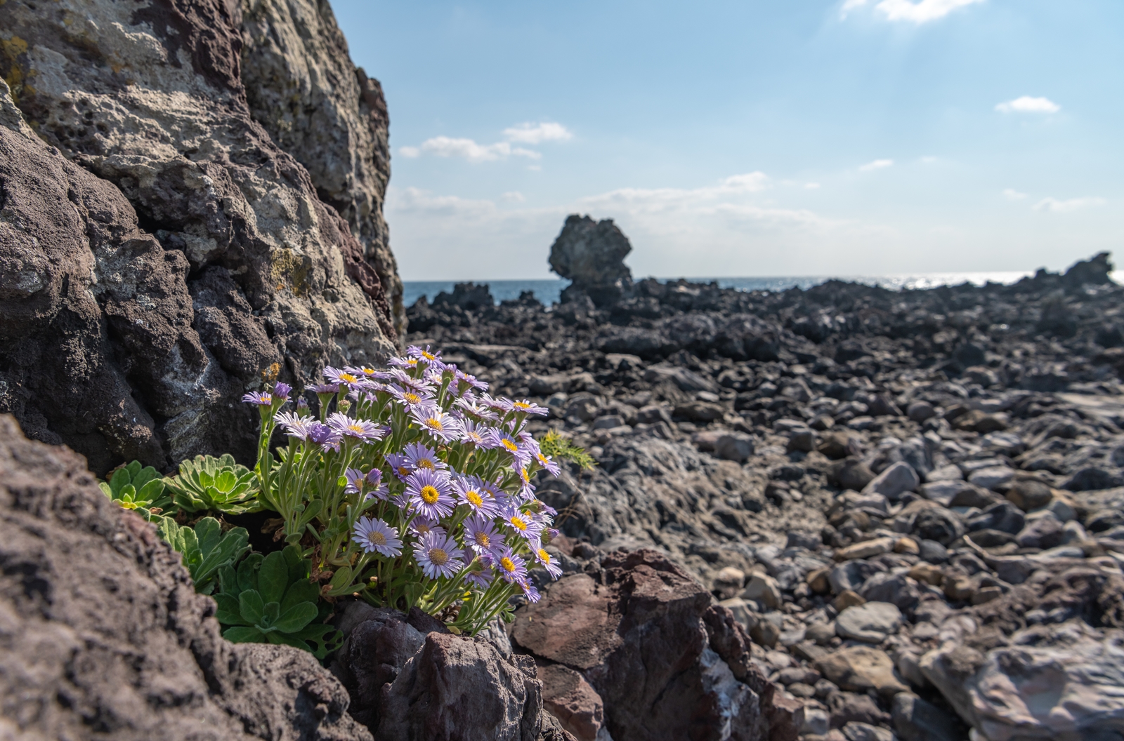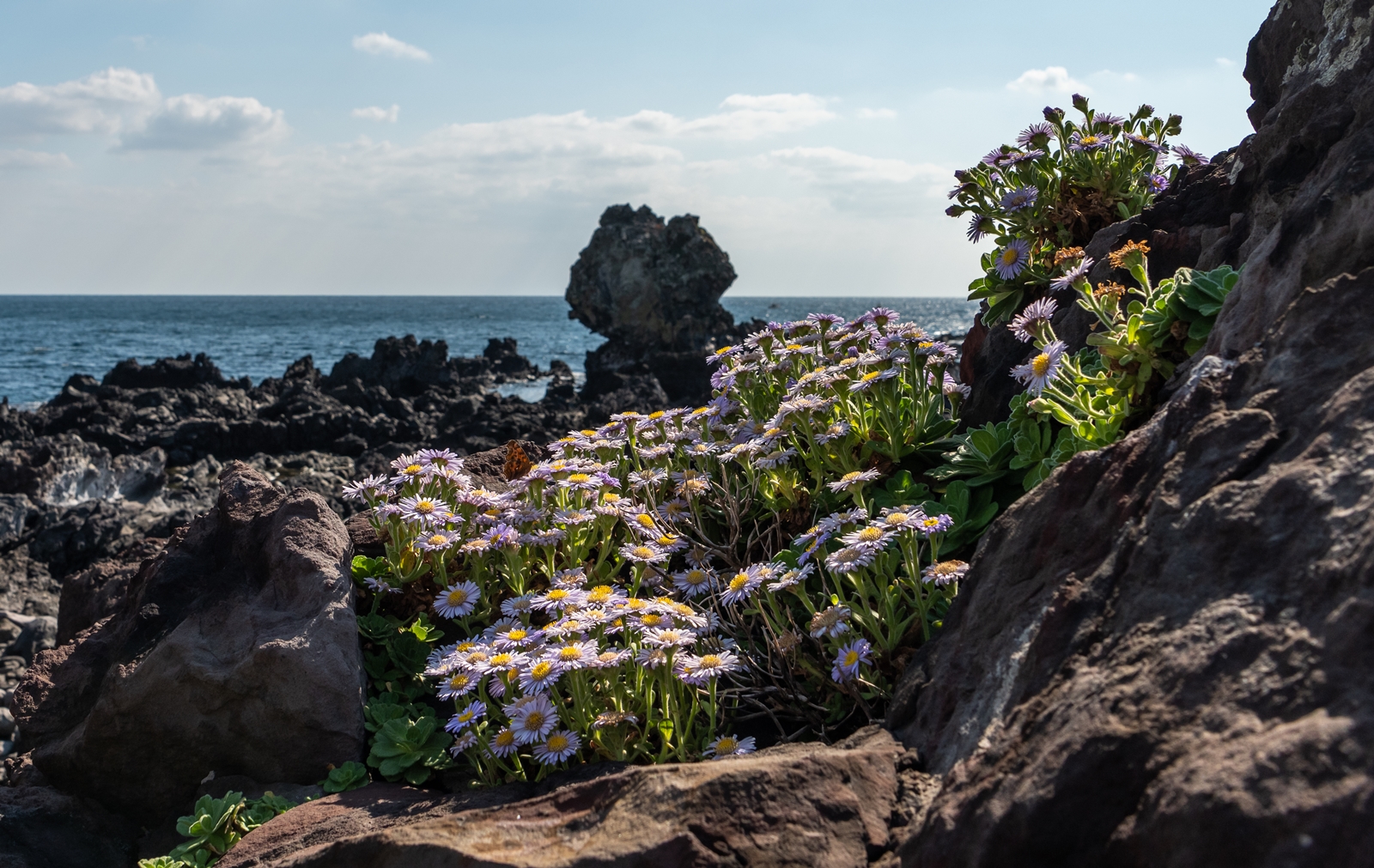 커다란 바위 위에 다양한 모습으로 많은 해국이 피어있었고 나름 그림도 좋아보였다.