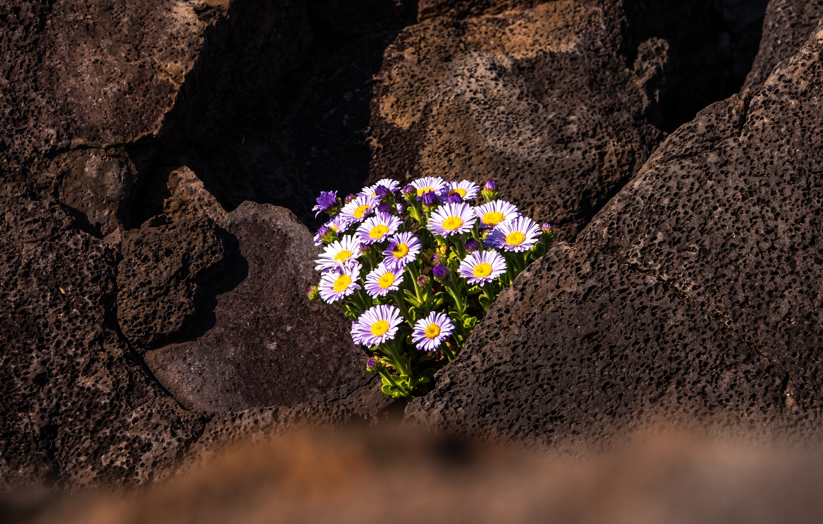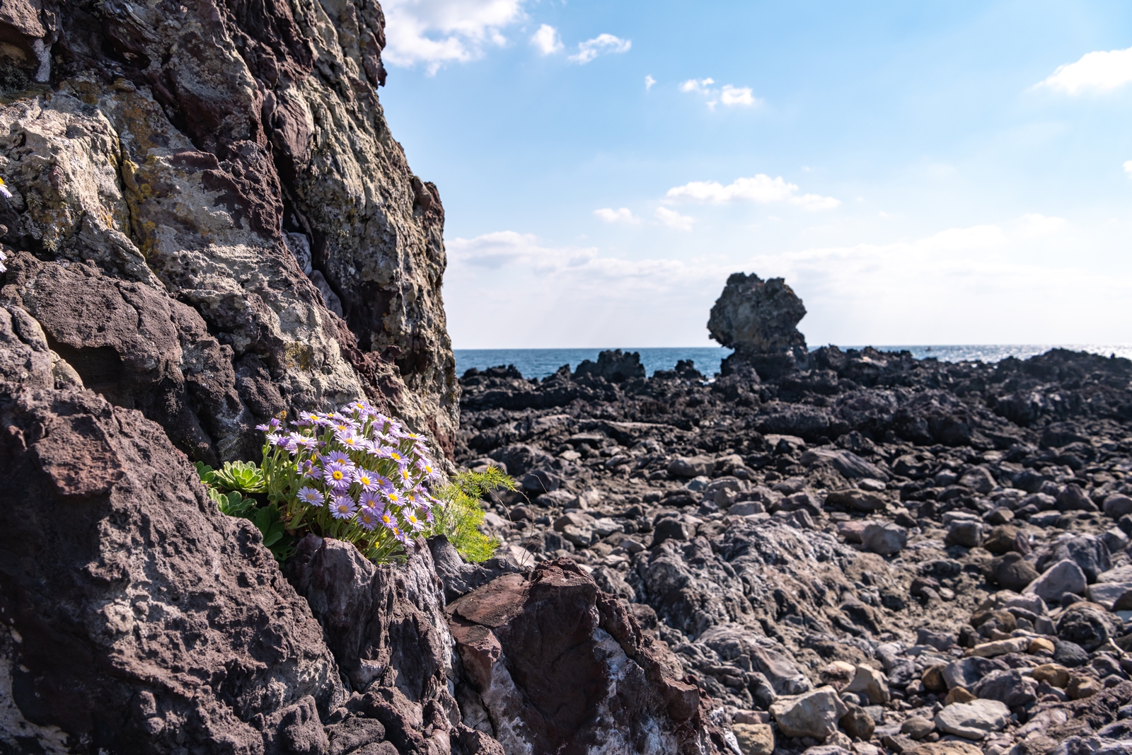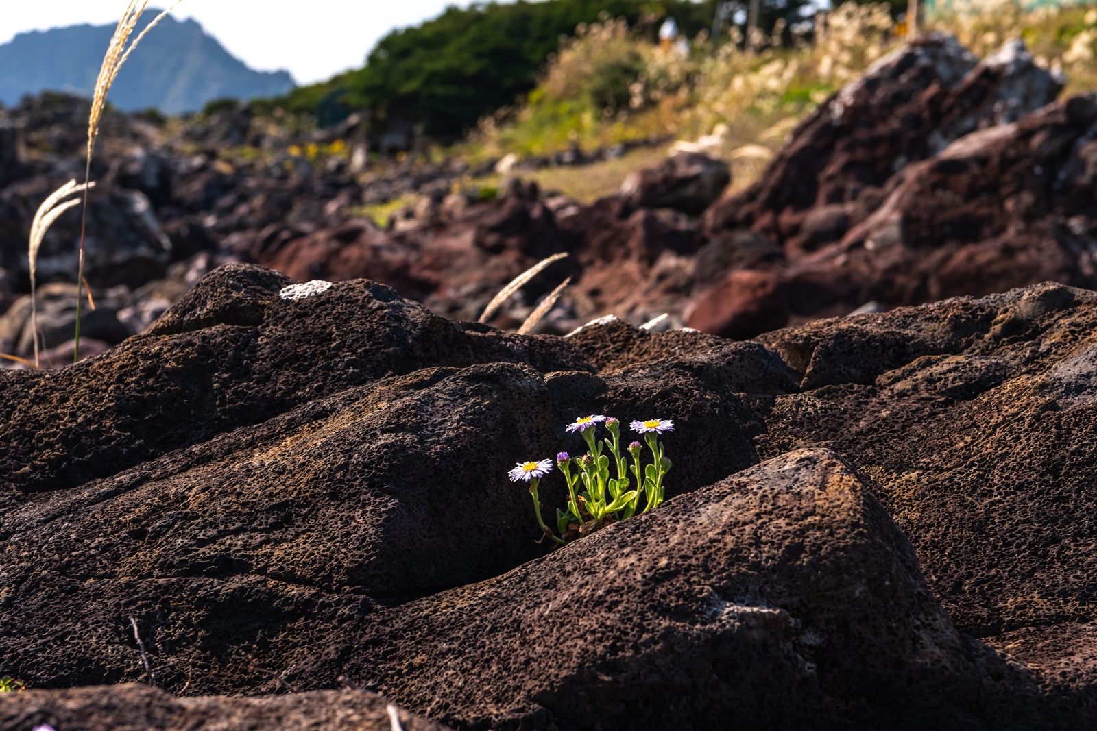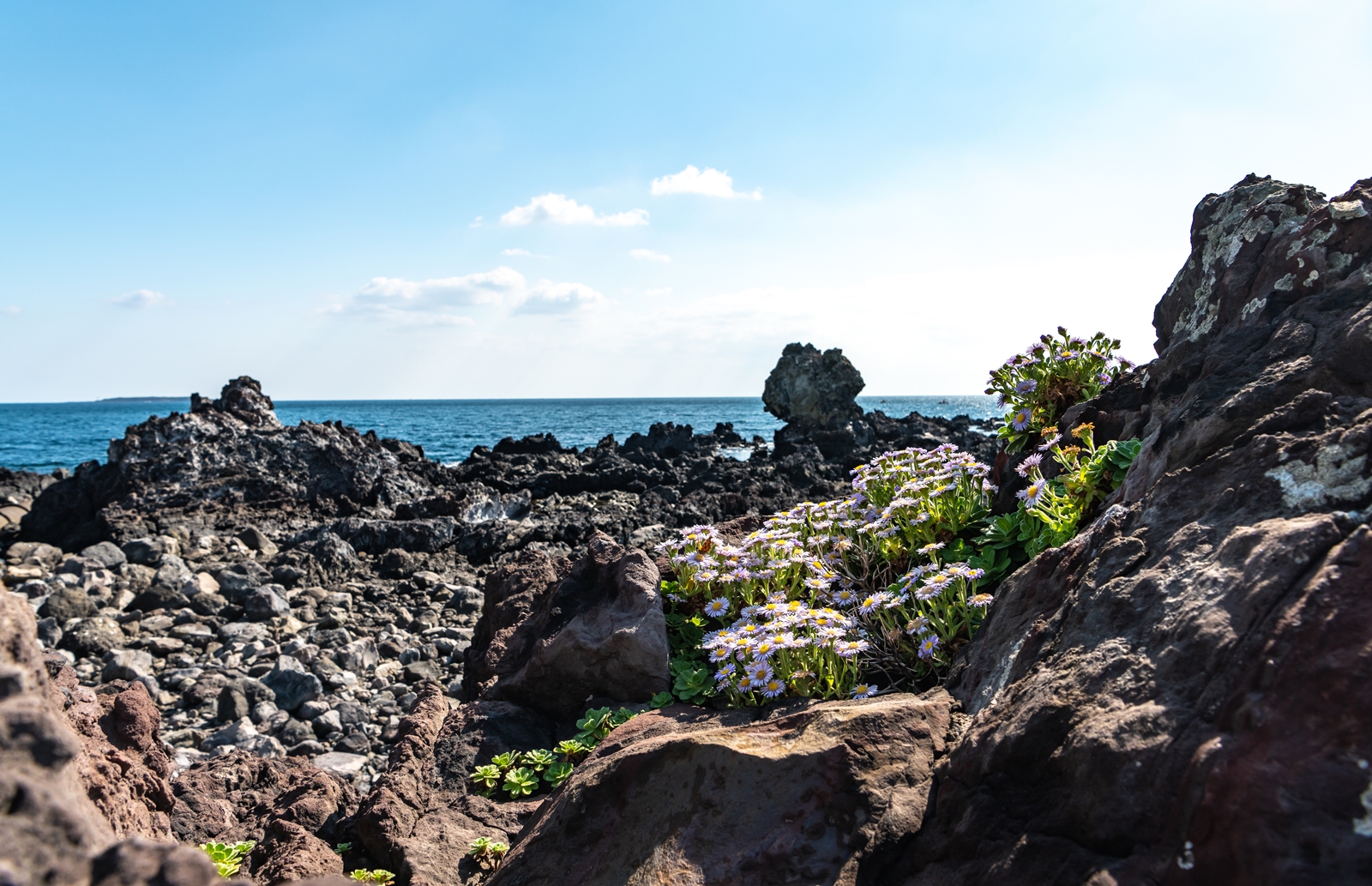 커다란 바위 위에 다양한 모습으로 많은 해국이 피어있었고 나름 그림도 좋아보였다.