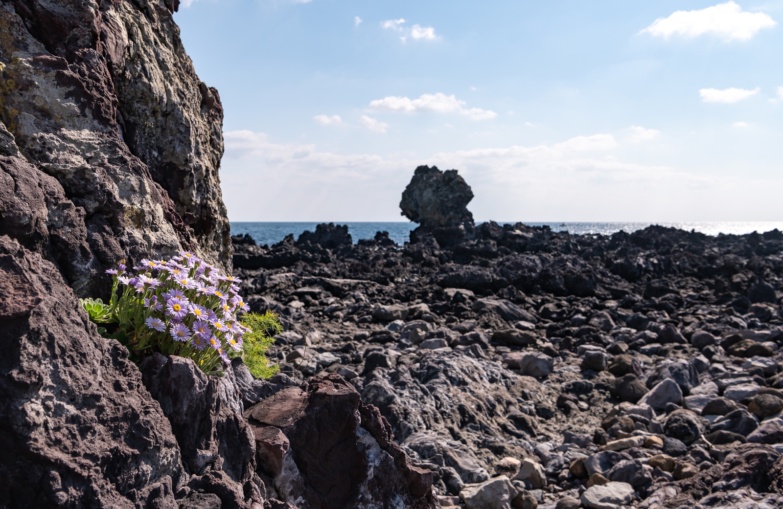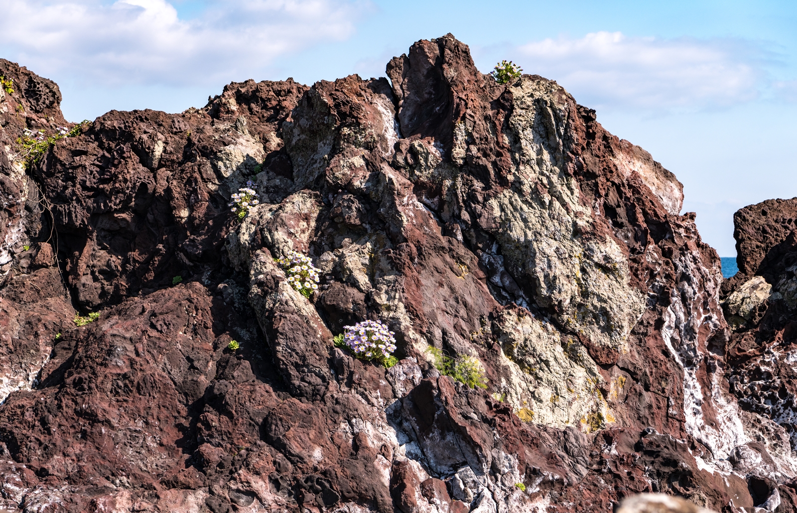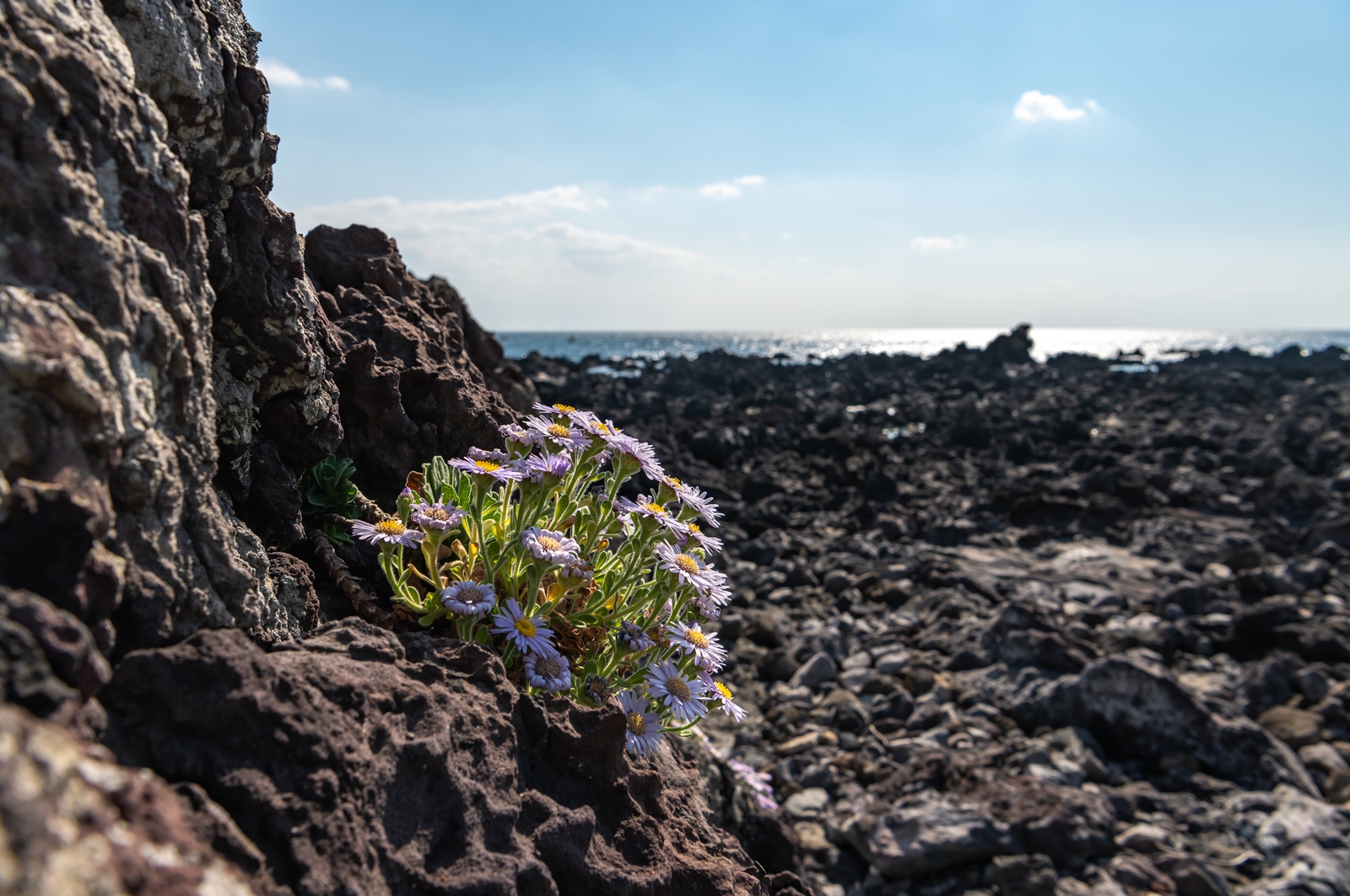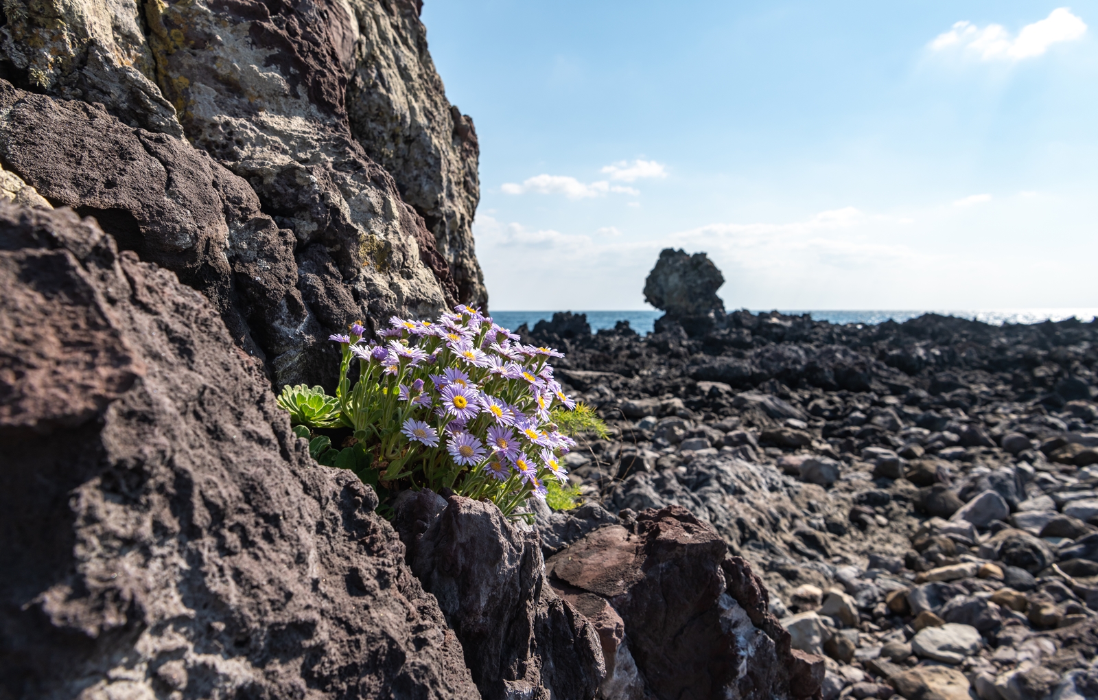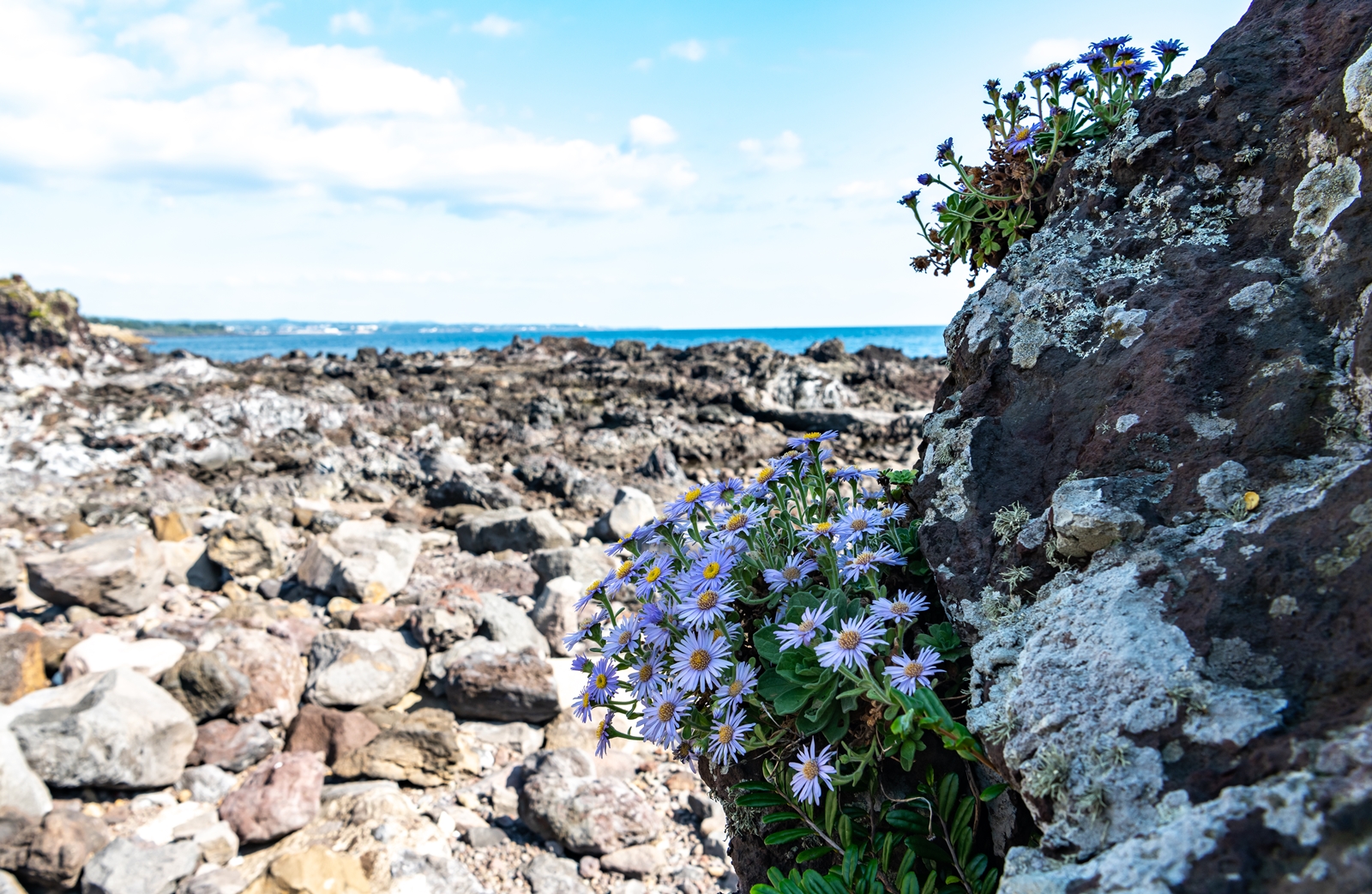 그래서 해안이 보이는 도로로 나와서 살피다 보니 바위 위에 해국이 보이는 것이었다.