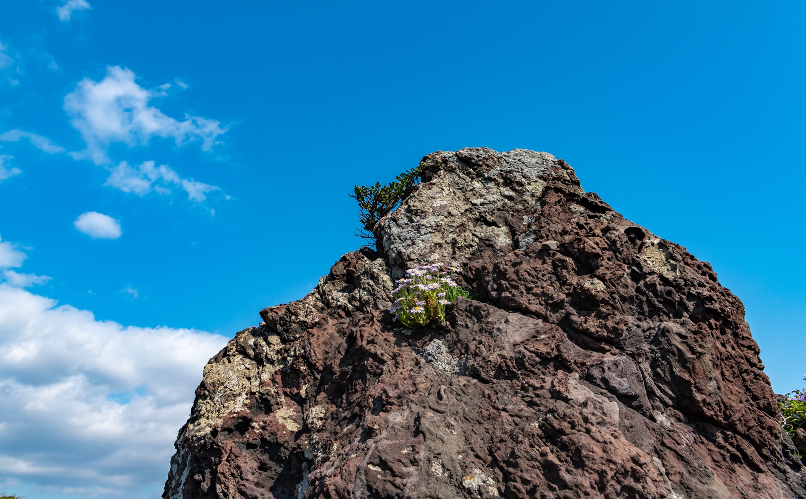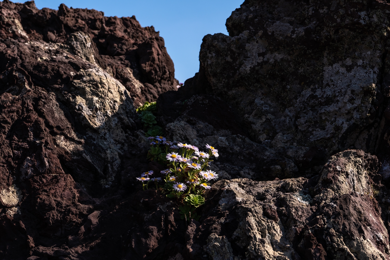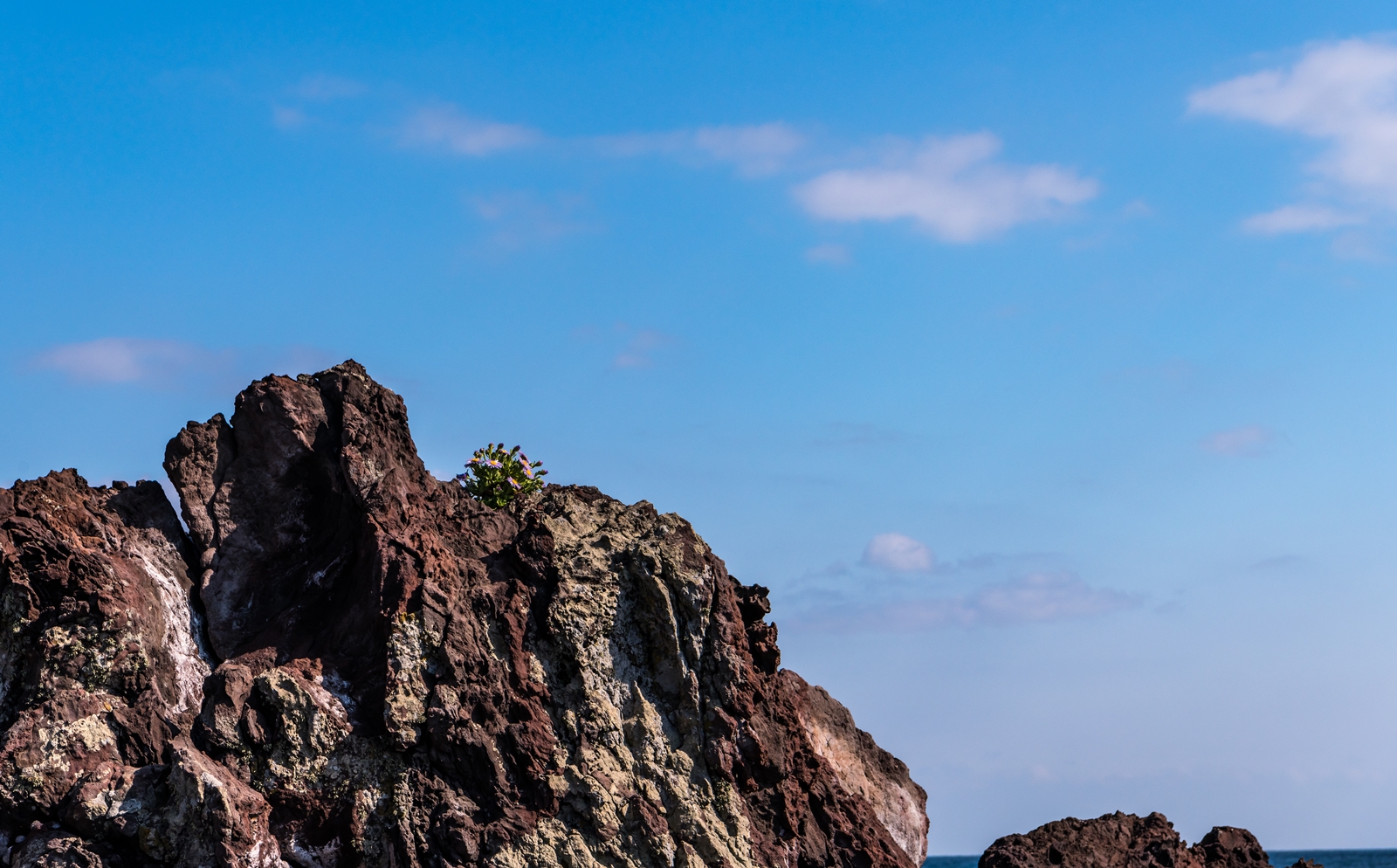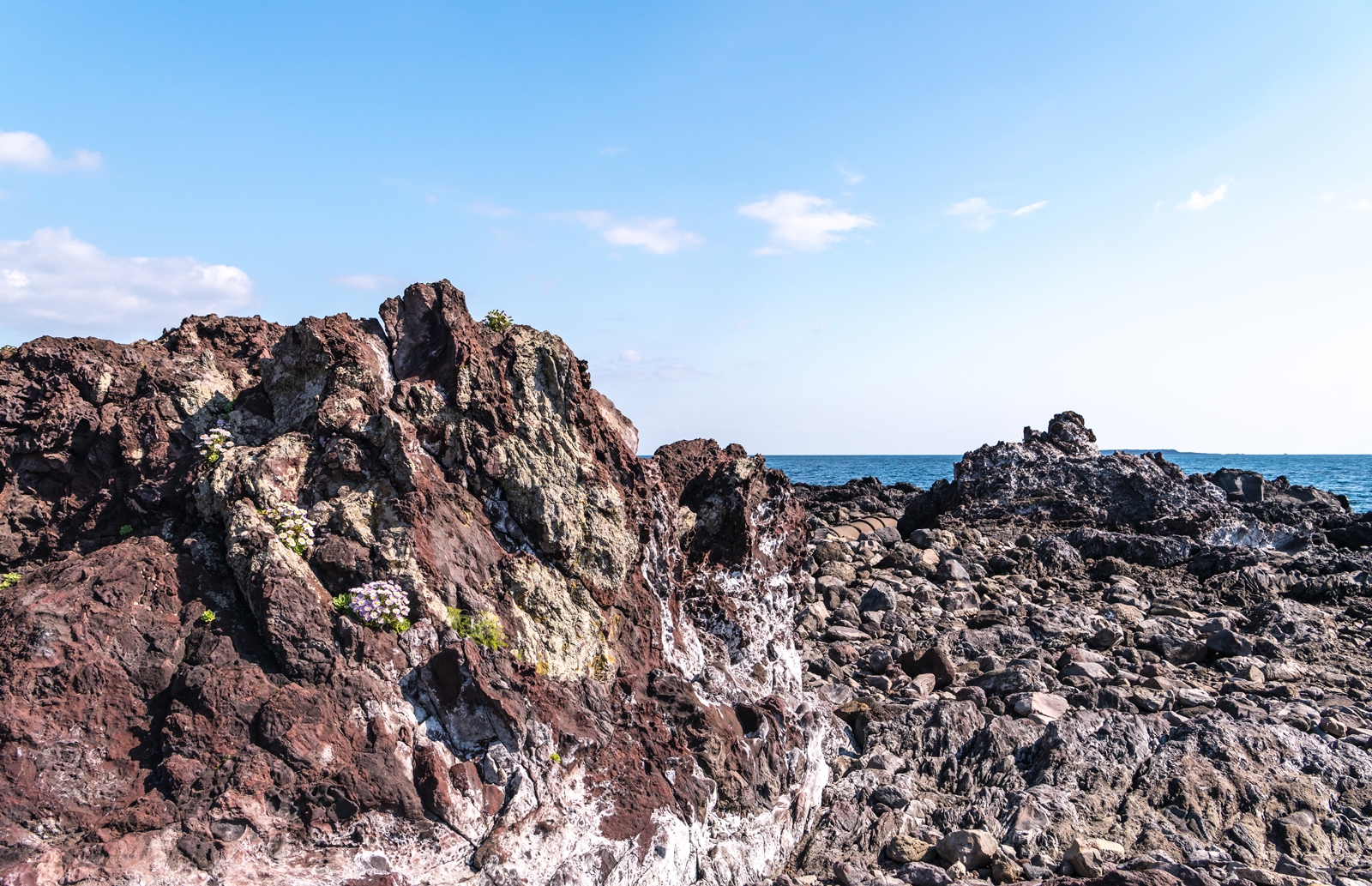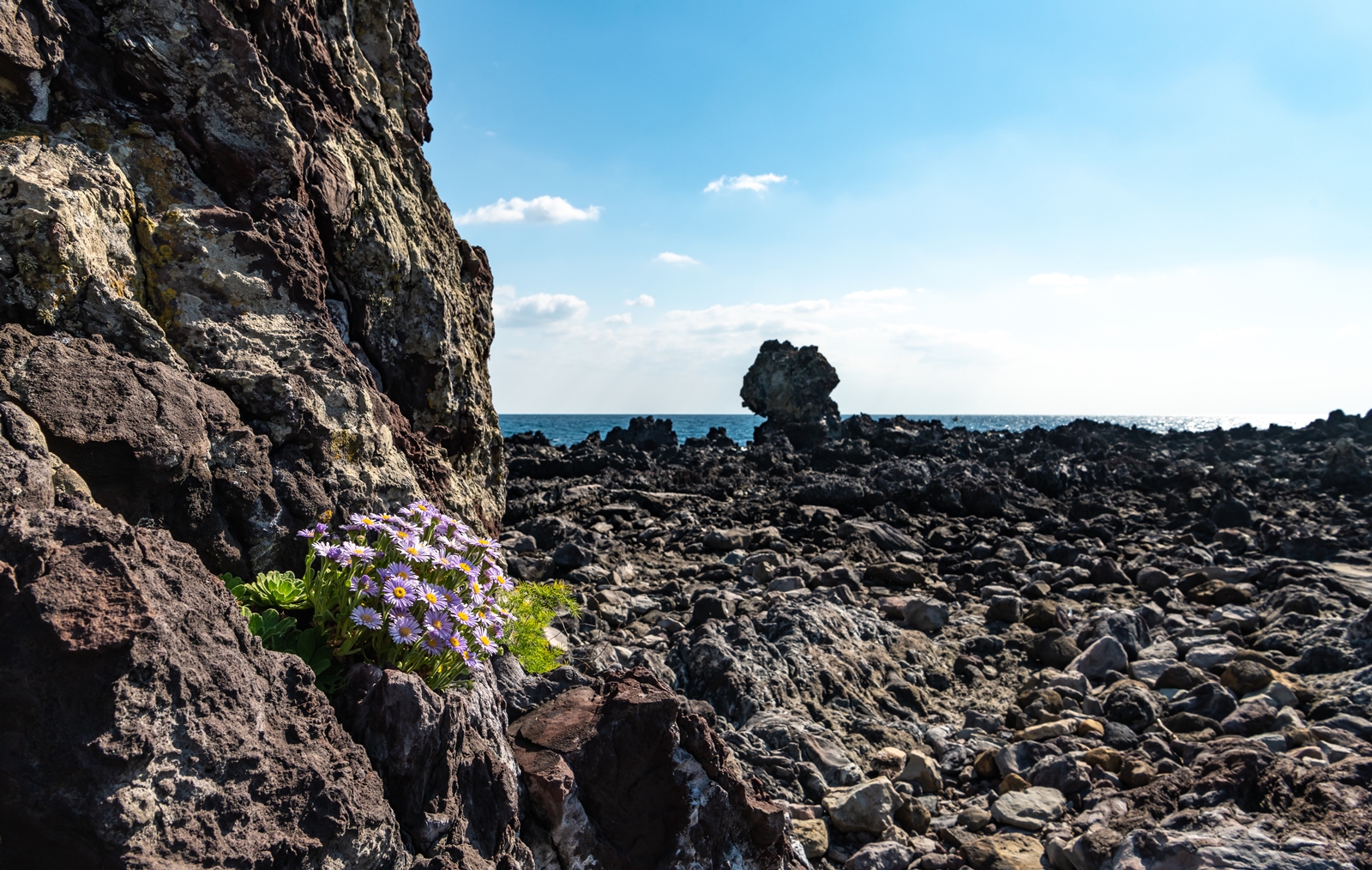 그래서 해안이 보이는 도로로 나와서 살피다 보니 바위 위에 해국이 보이는 것이었다.