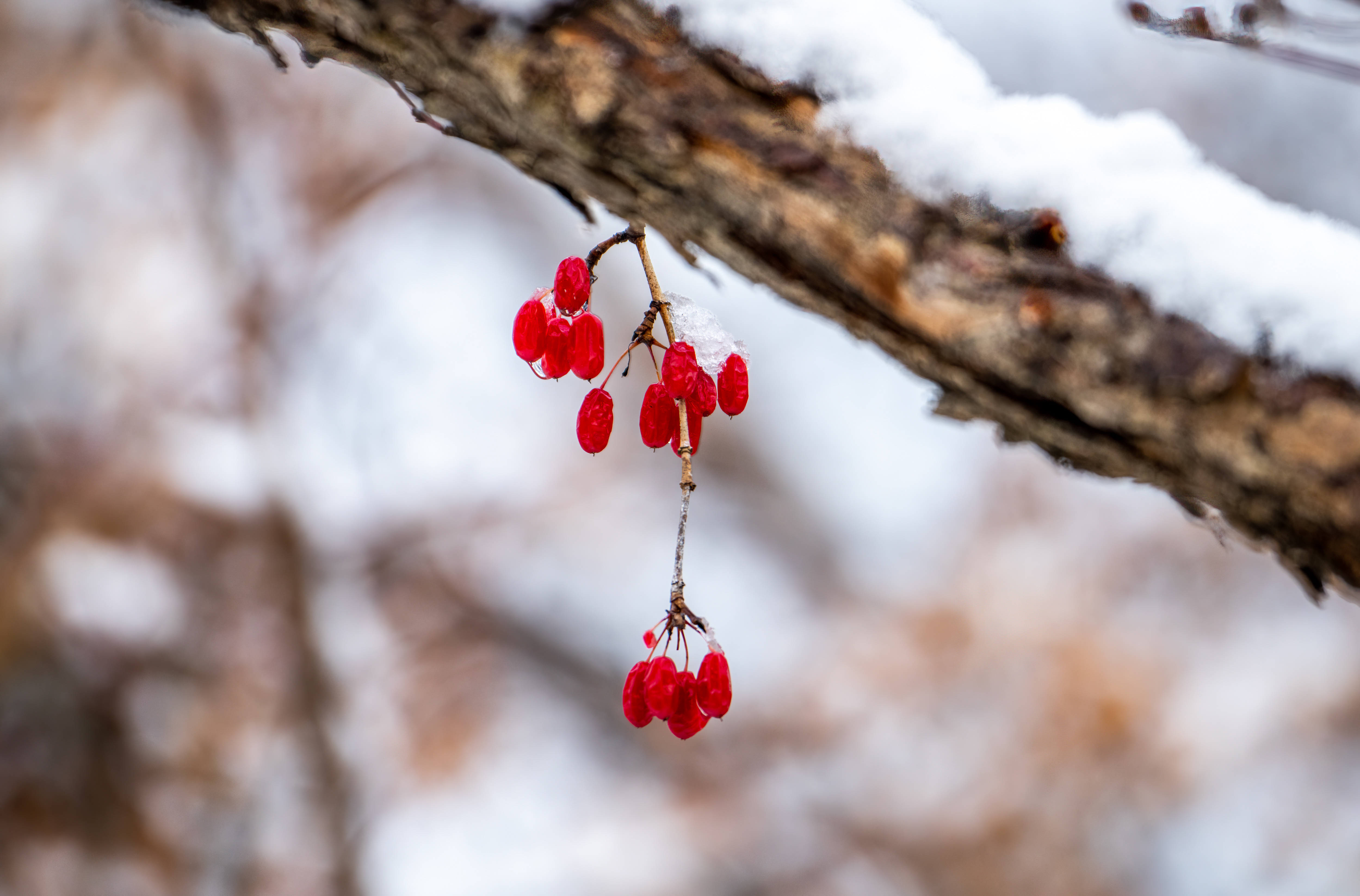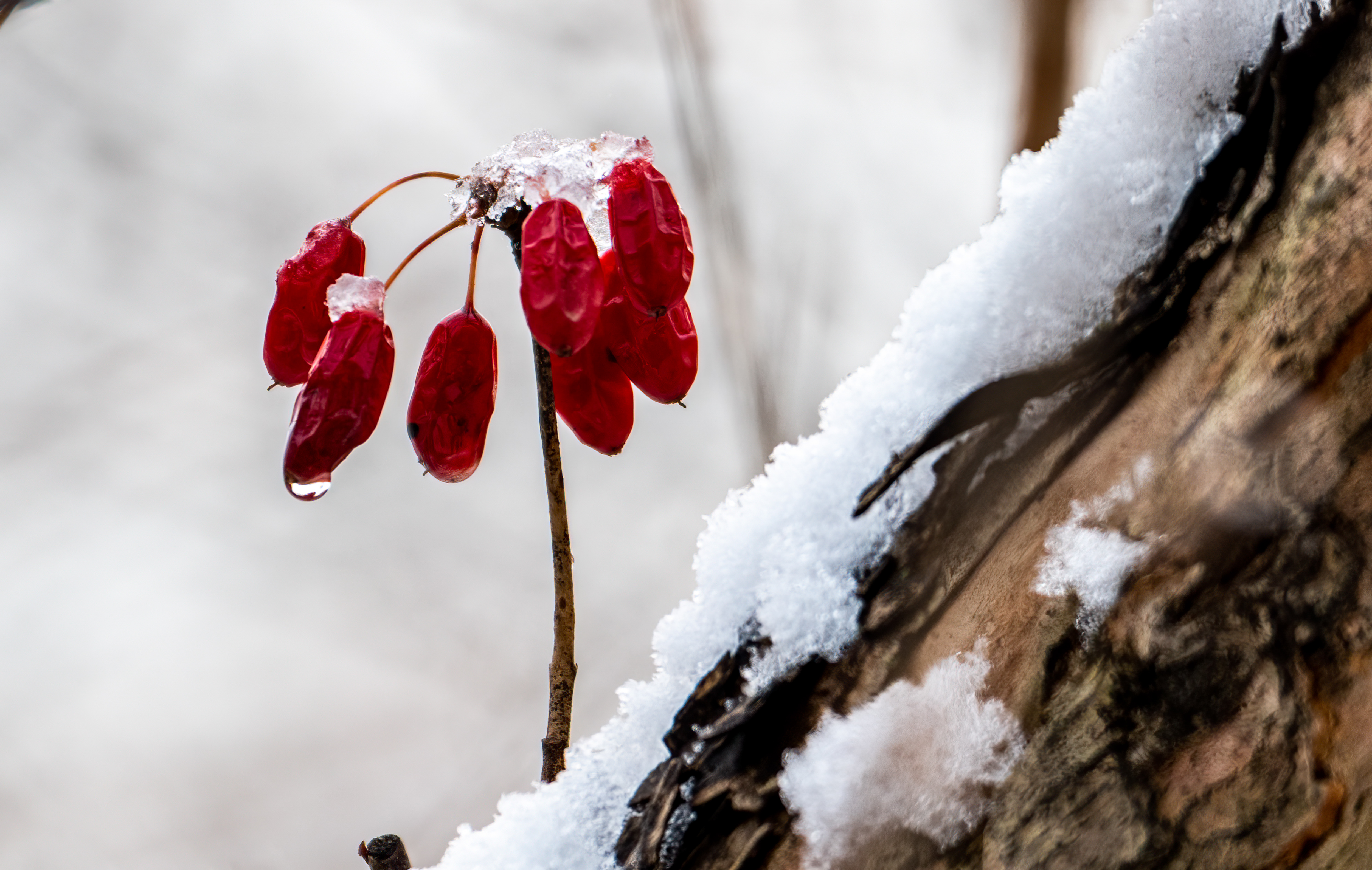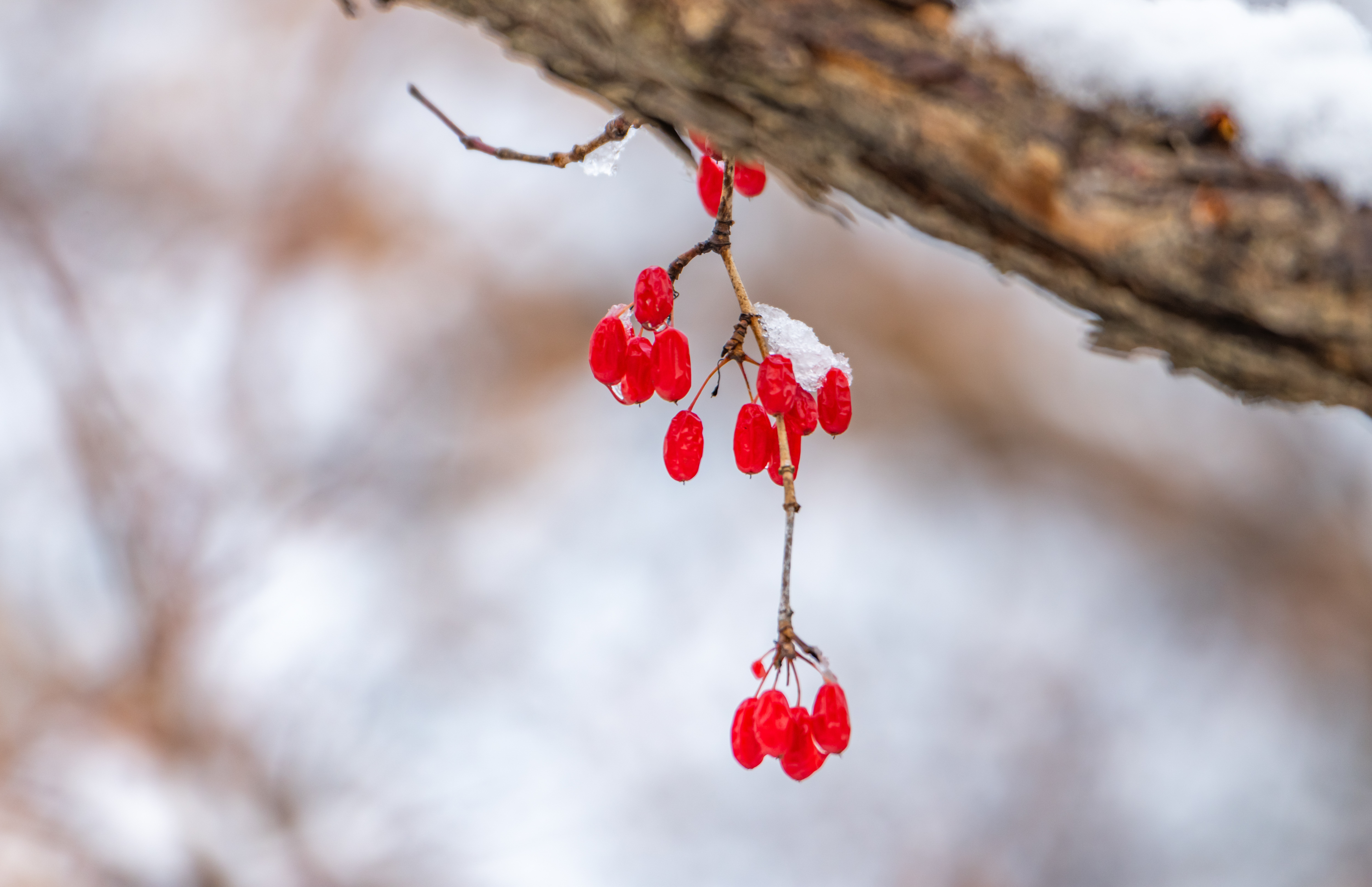 눈과 어우러진 빨간 산수유를 보려고 수목원 문 열 때까지 기다리다가 들어갔다.
