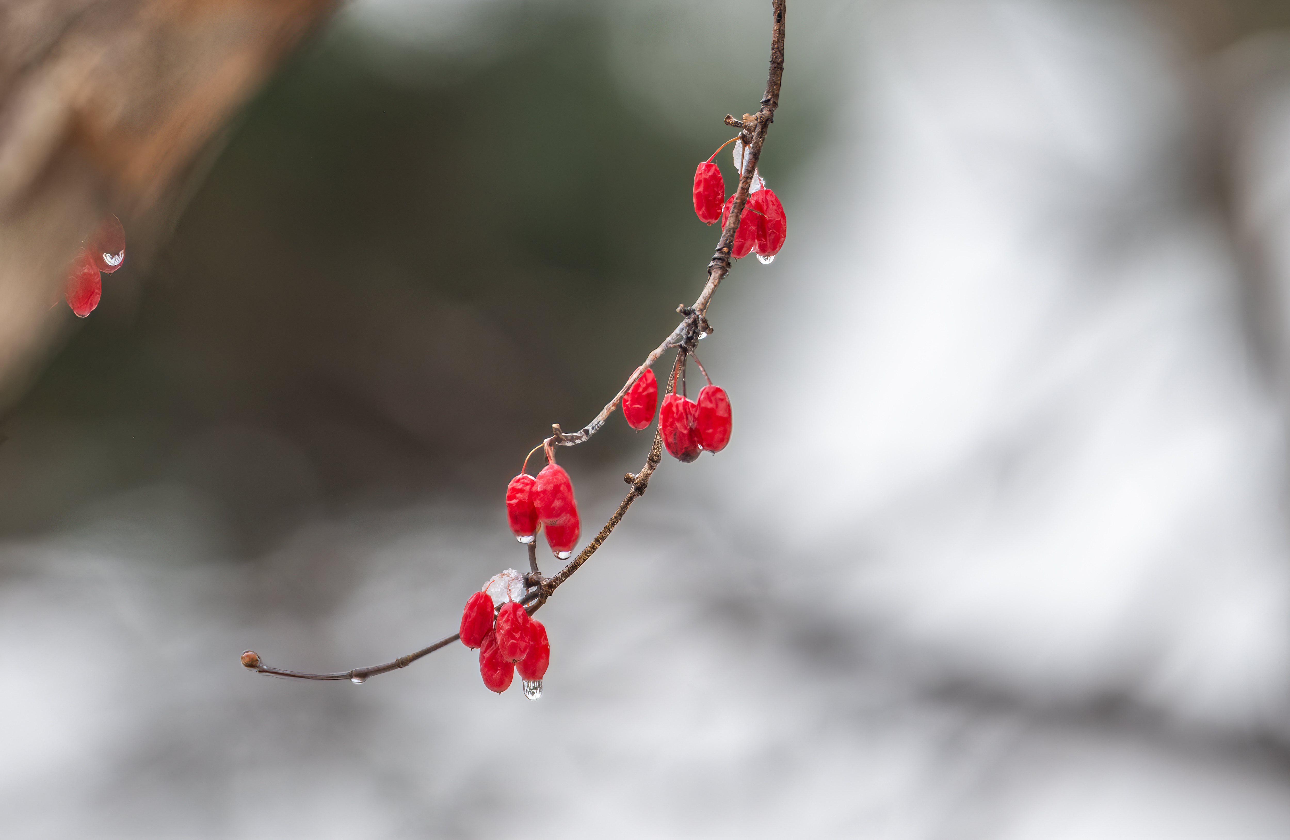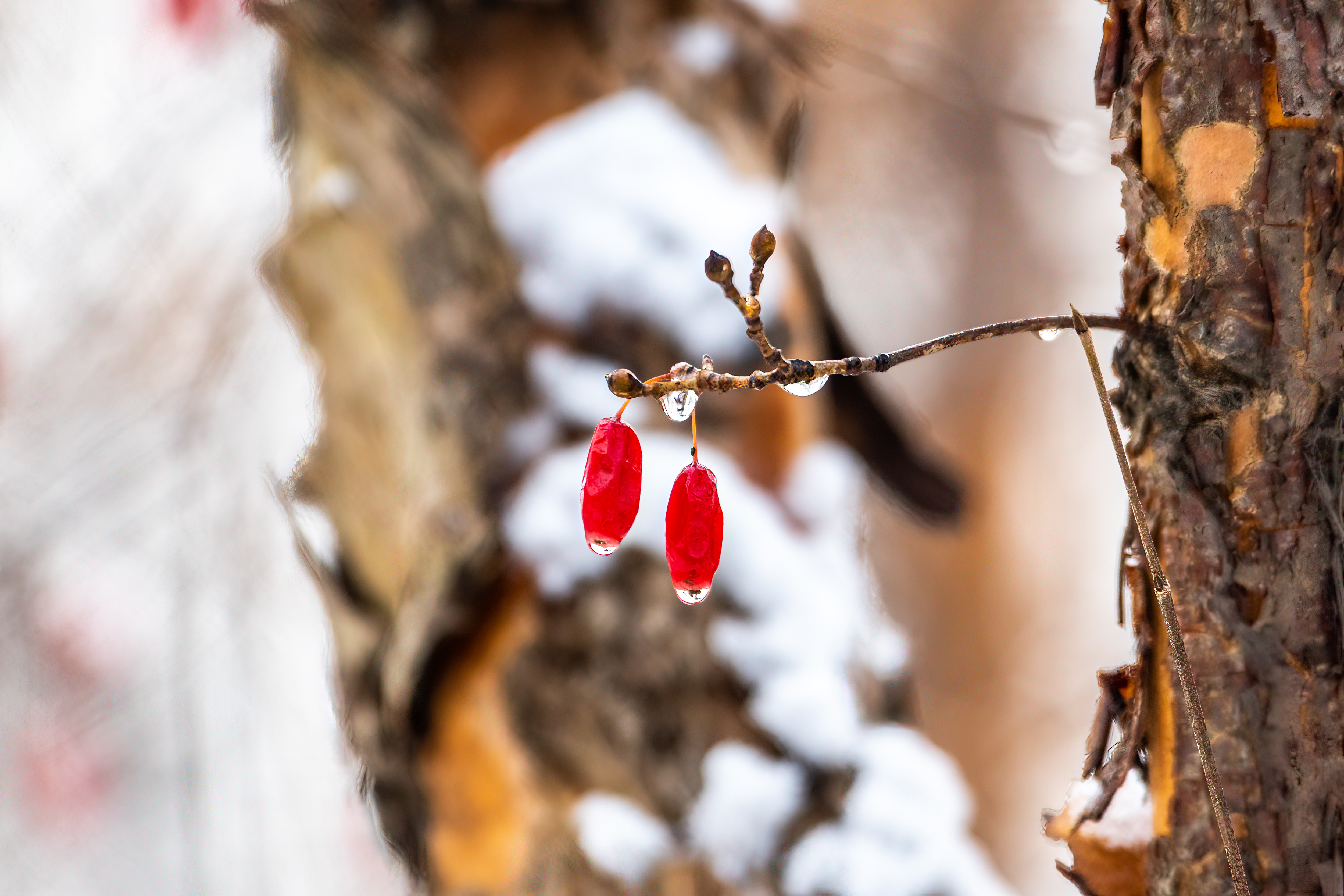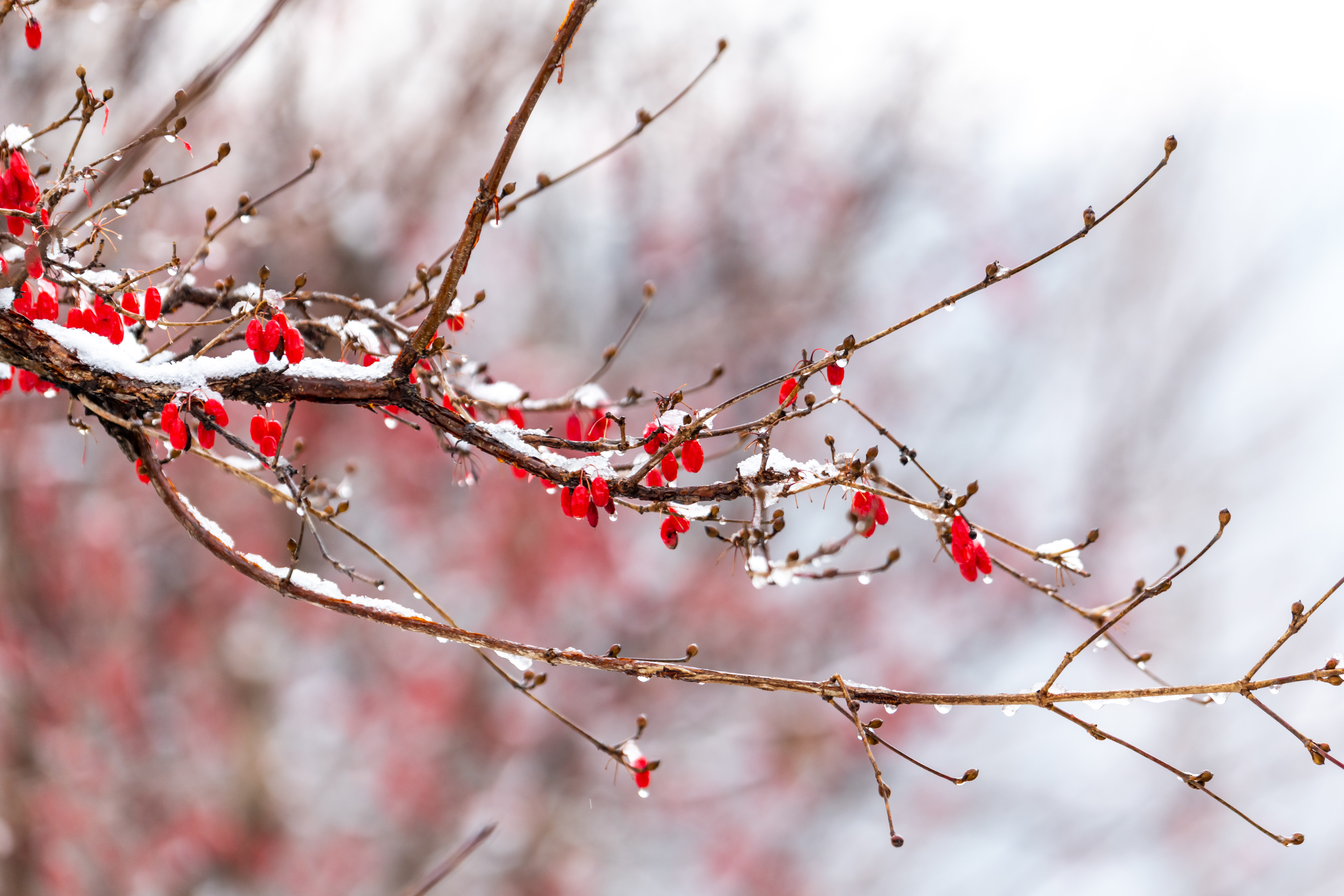 10시부터 입장이다 보니 벌써 눈은 녹아서 산수유 끝에 물방울들을 달고 있었다.