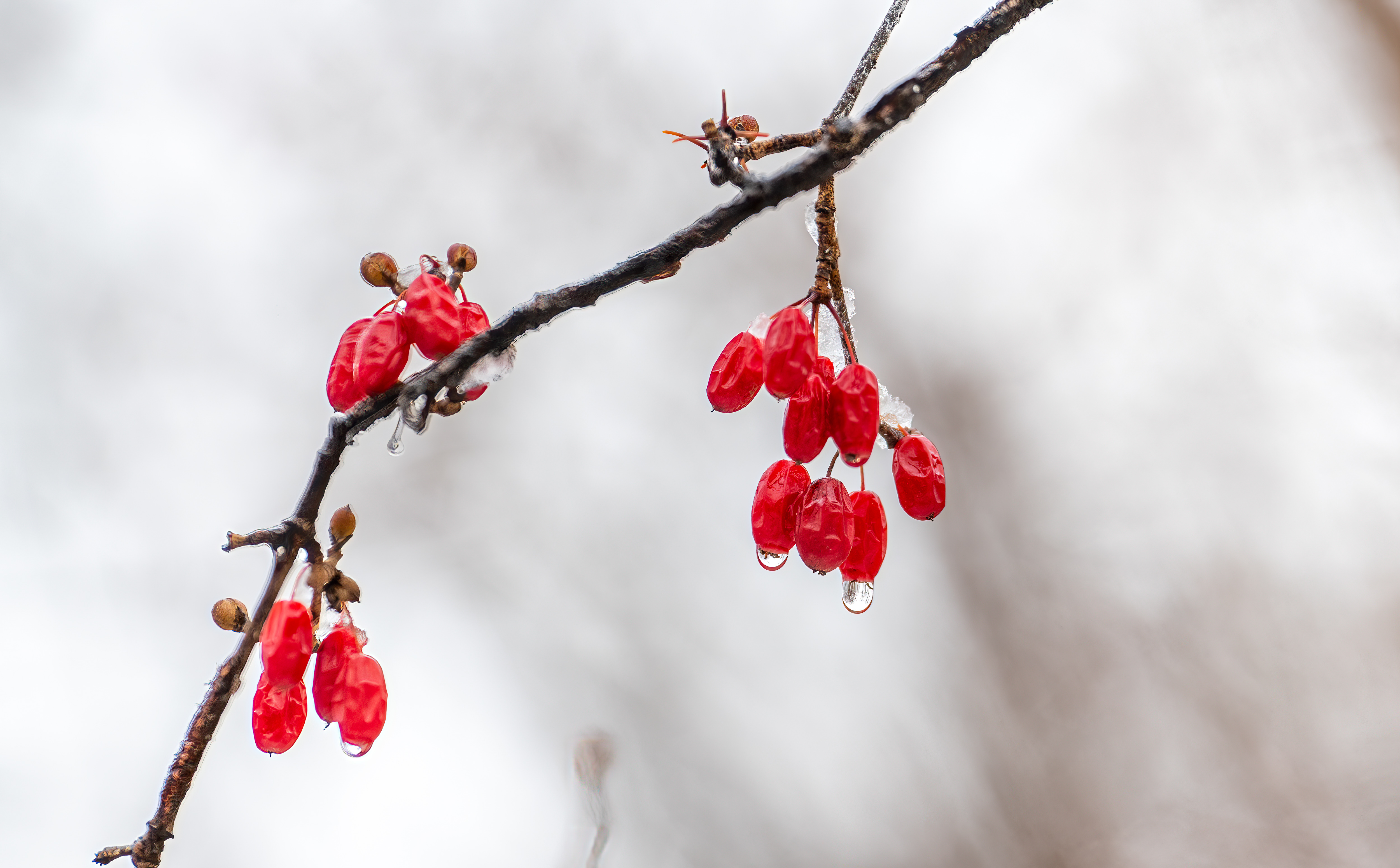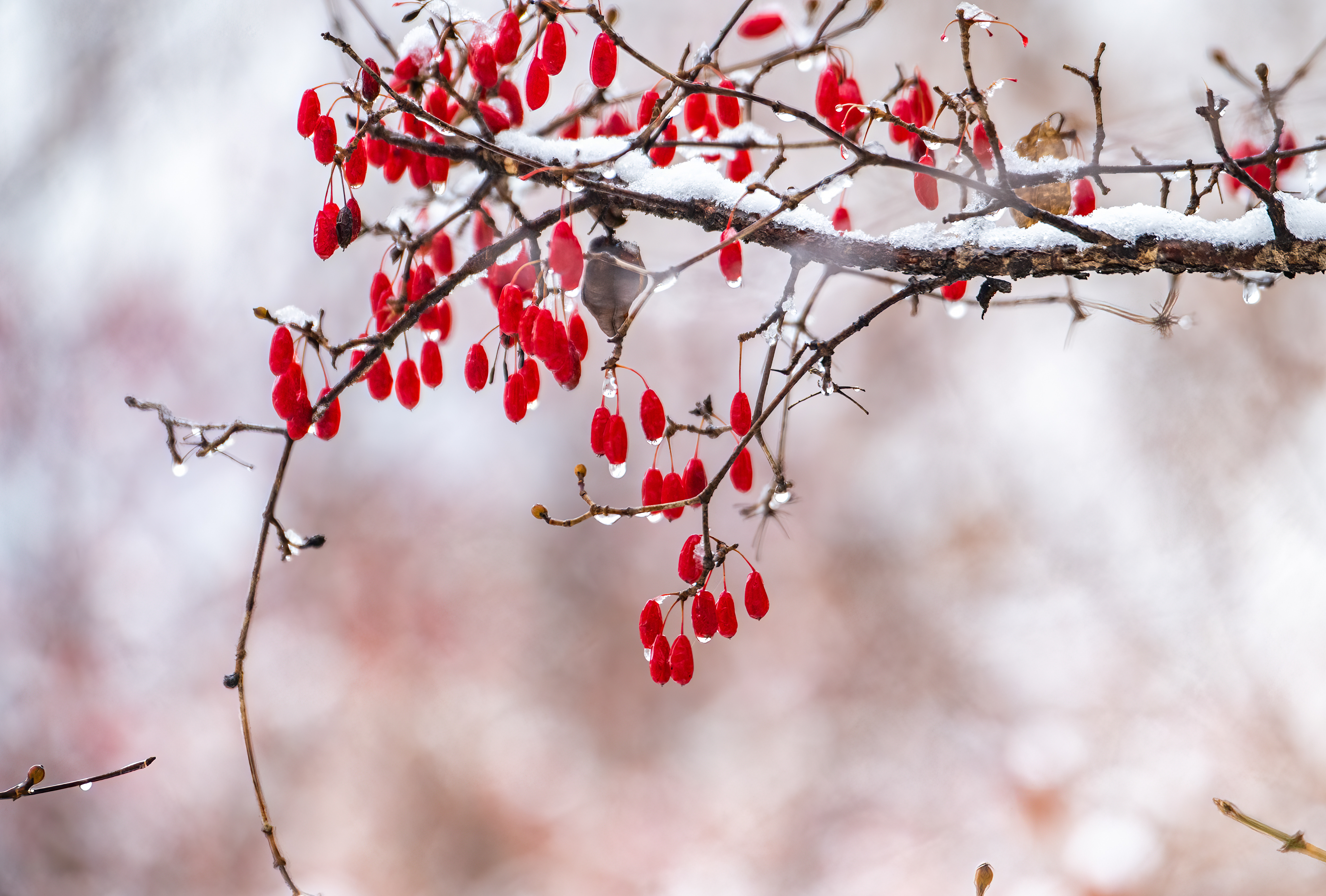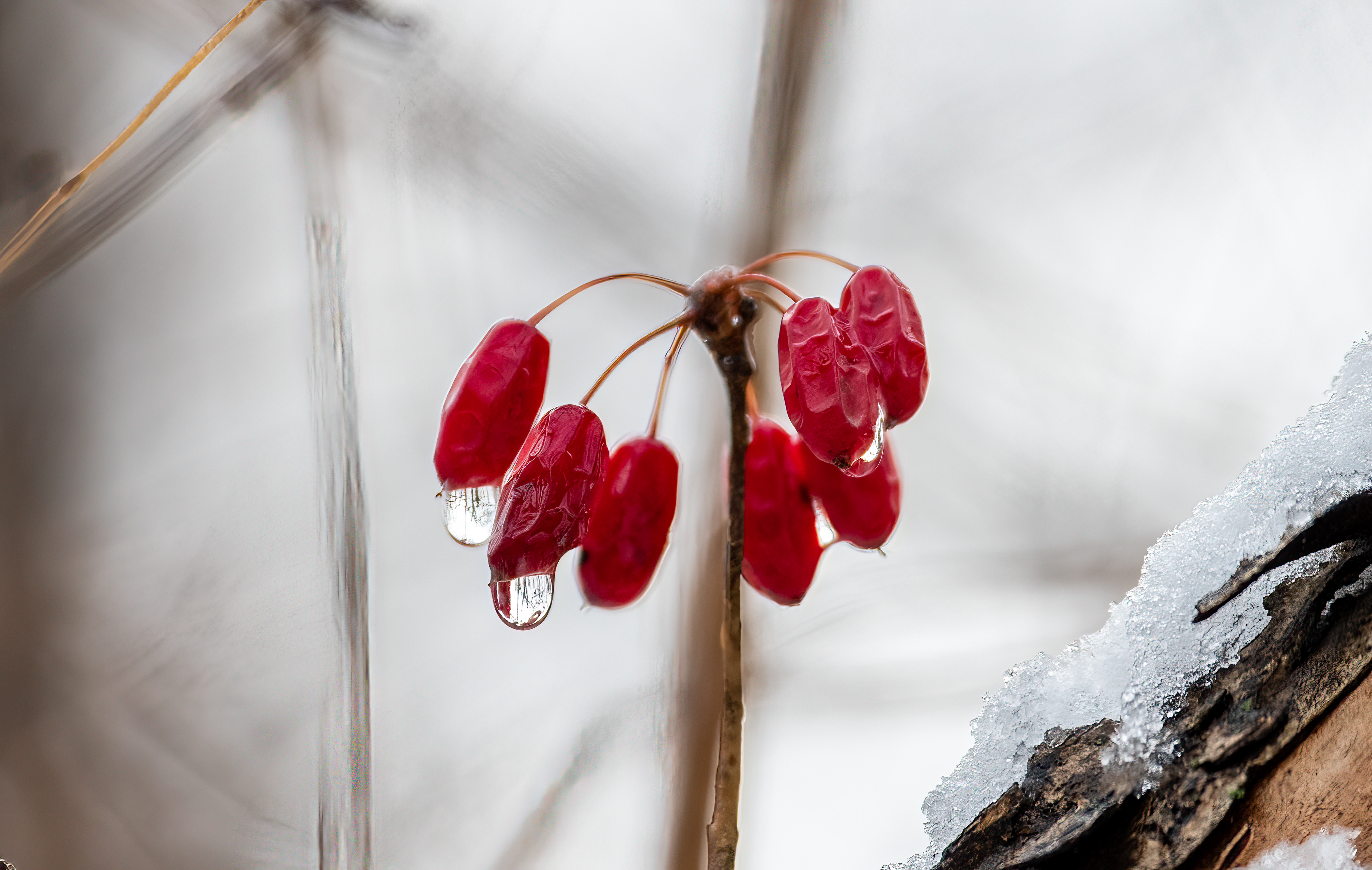 10시부터 입장이다 보니 벌써 눈은 녹아서 산수유 끝에 물방울들을 달고 있었다.